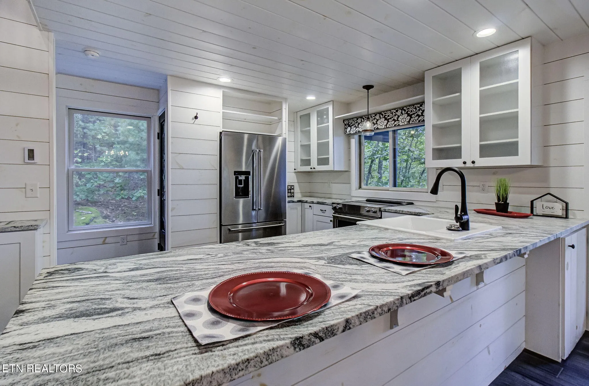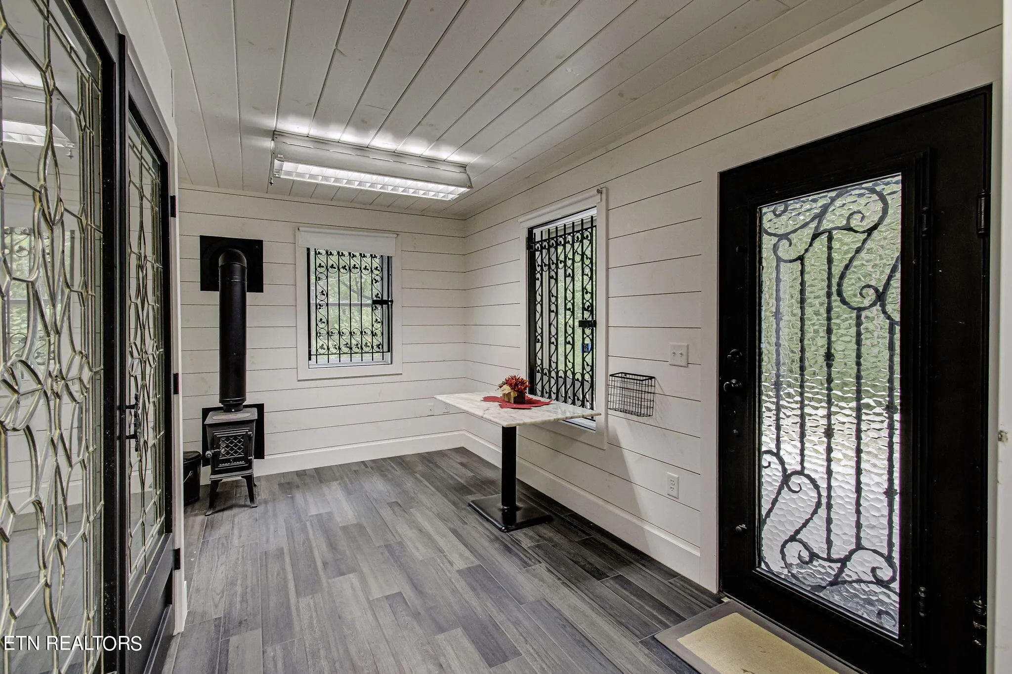 Thoughtfully designed with comfort and style in mind, this home features radiant heat flooring throughout, two cozy fireplaces, and spray foam insulation for maximum energy efficiency. The custom iron spindle accents, steel-framed art glass front door, and unique shiplap wall coverings create a rustic yet modern feel. Carefully curated light fixtures and bath finishes add to the charm and uniqueness of the home.