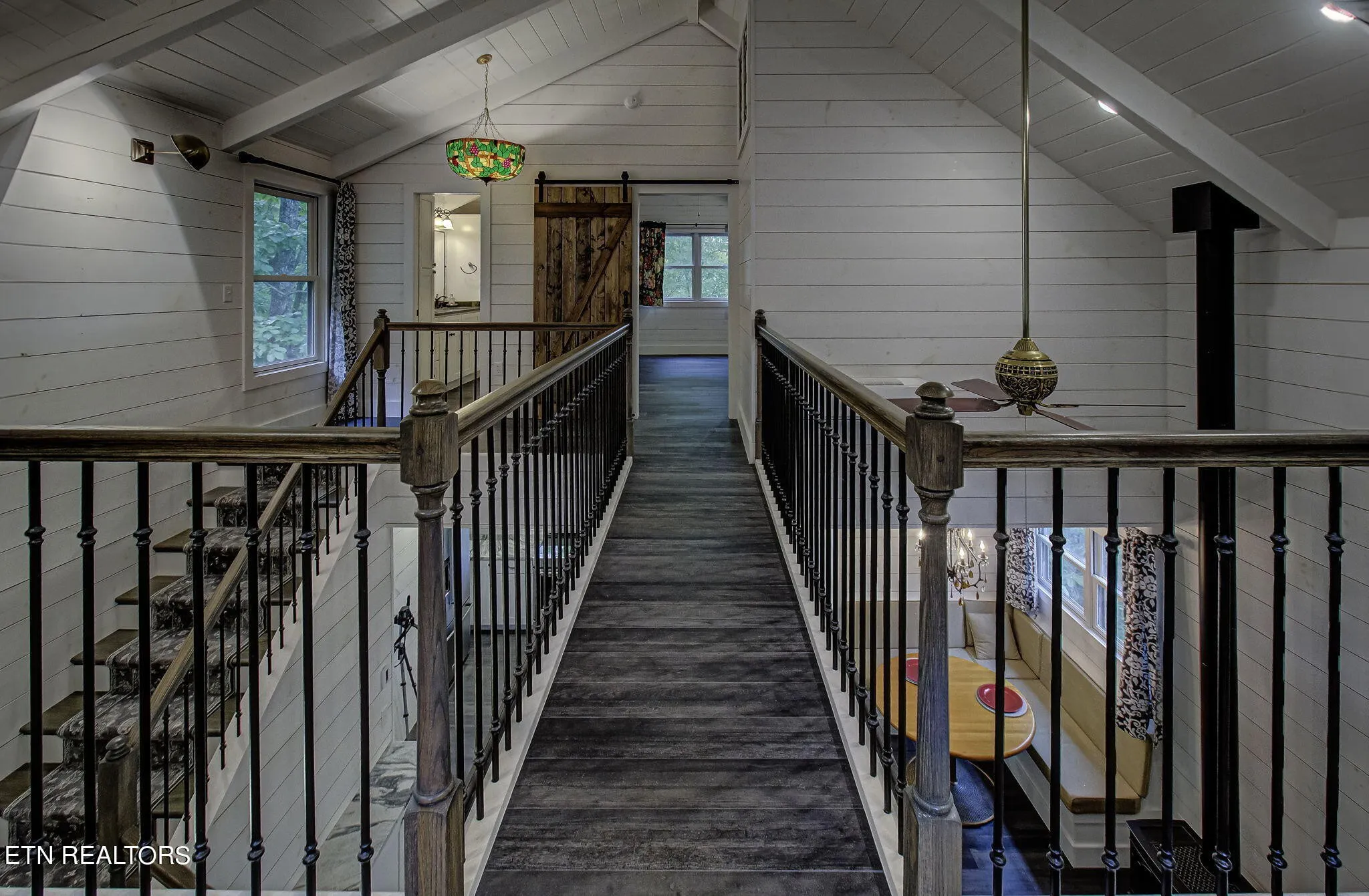 The loft area offers a perfect space for an office, library, or additional seating, providing an open and airy feel throughout. The catwalk elegantly connects the upstairs rooms, adding a touch of architectural charm while offering a bird’s-eye view of the main living area below. With abundant natural light and thoughtful design, this home combines comfort with style, making it the perfect retreat.