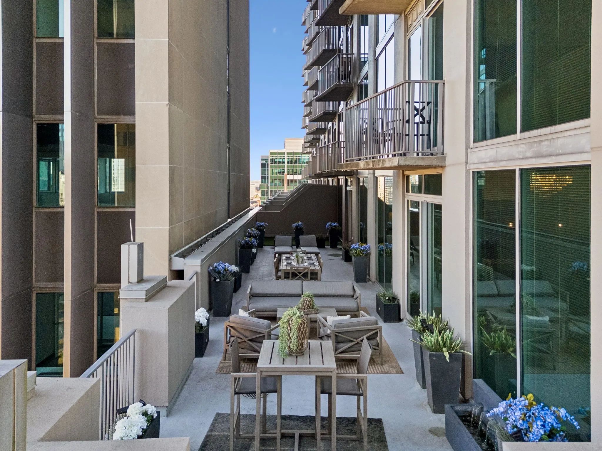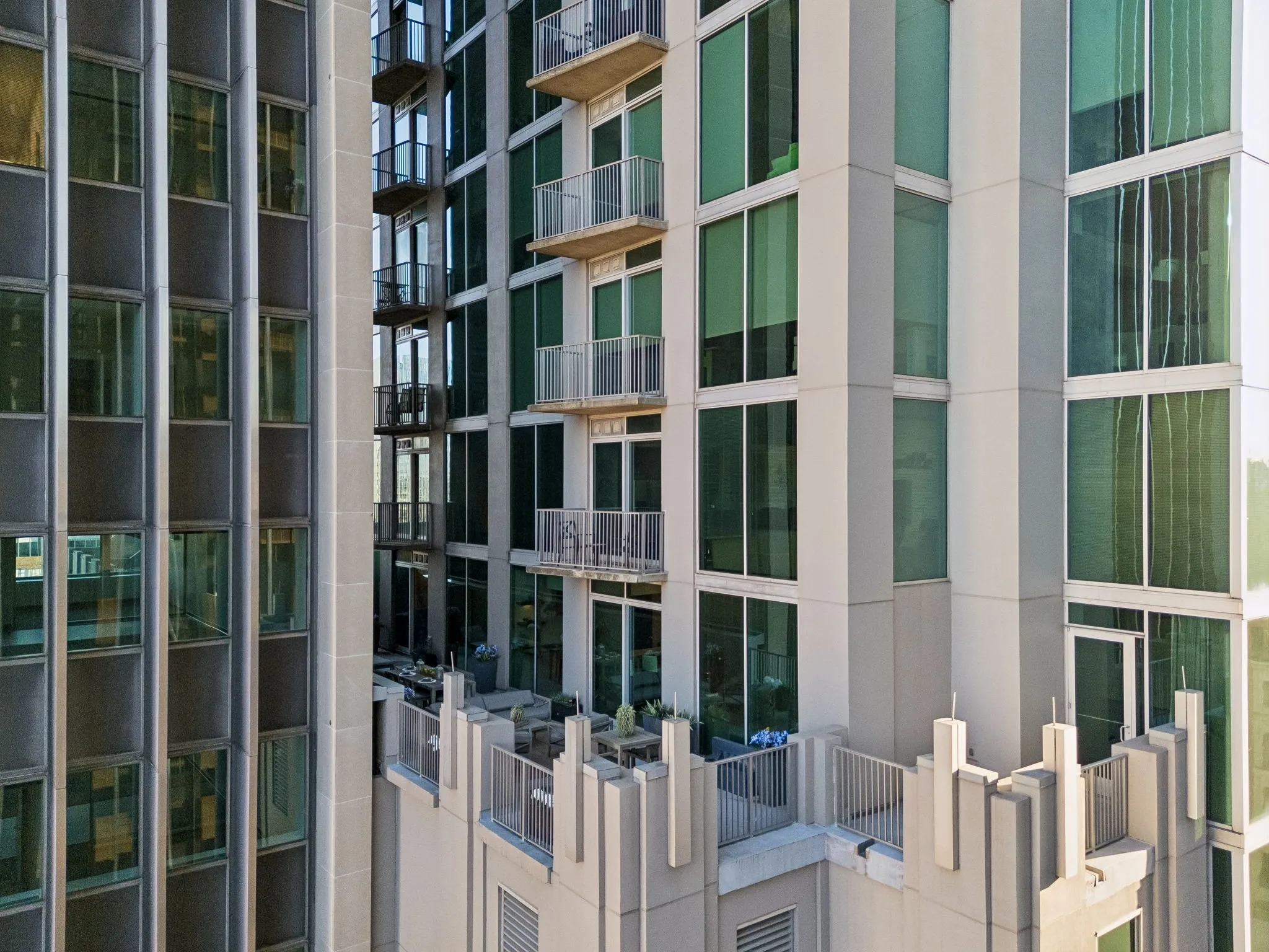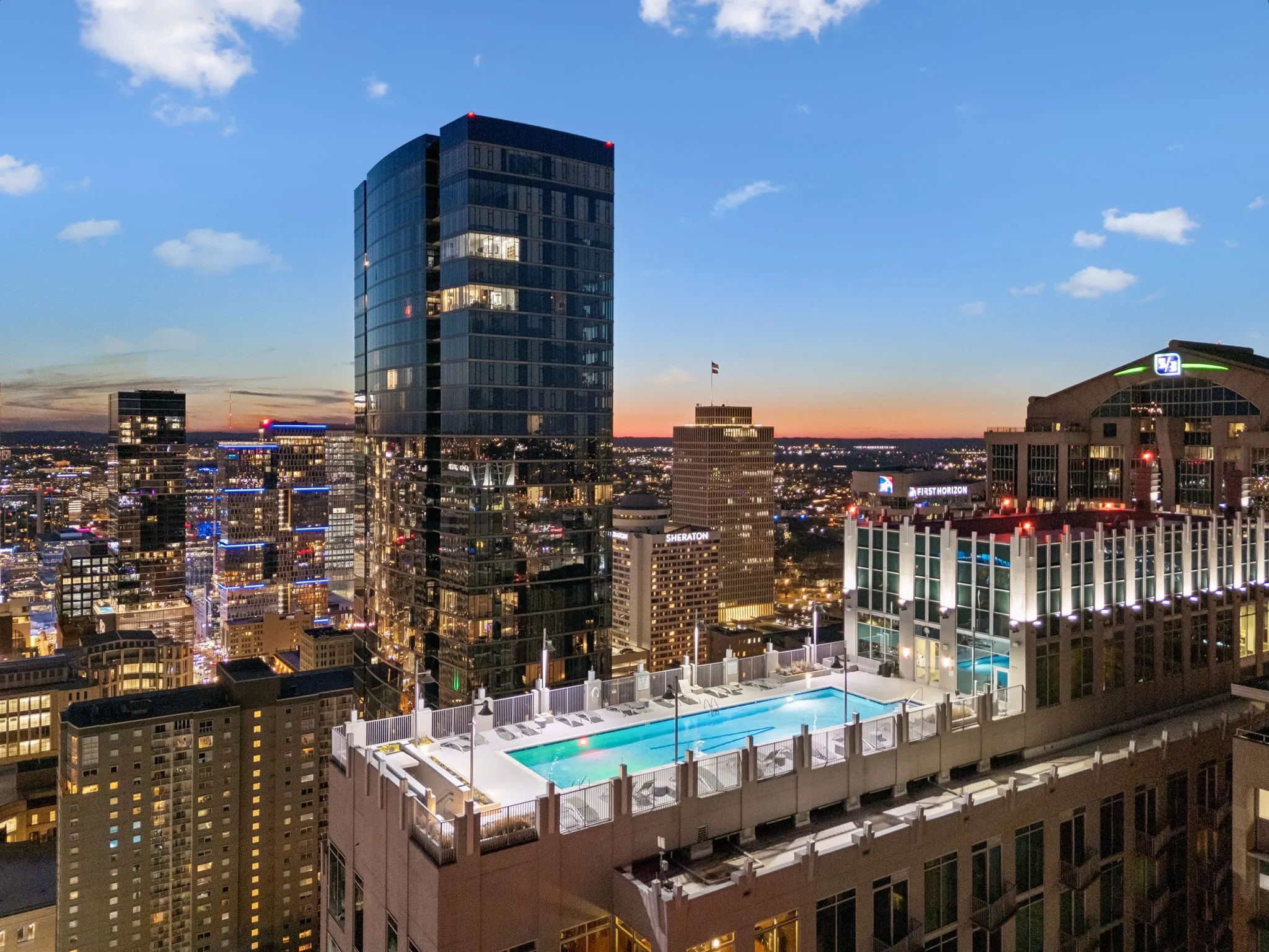 High-rise luxury living at its finest! This stunning 2-bedroom corner unit on the 10th floor of The Viridian features a MASSIVE 1,000+ sq ft private terrace overlooking the heart of downtown Nashville—an incredibly rare find.