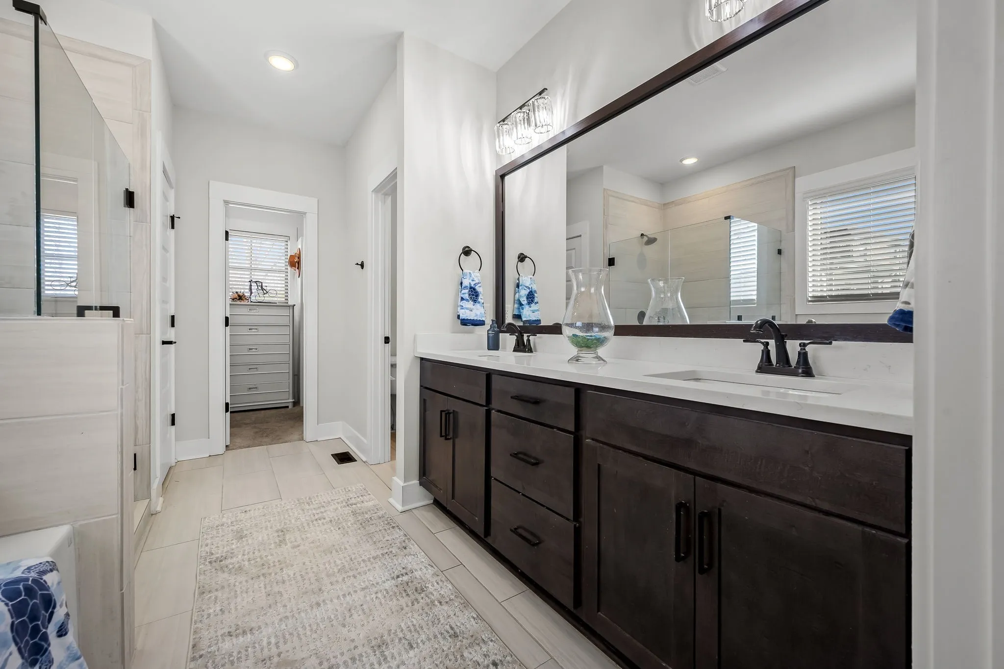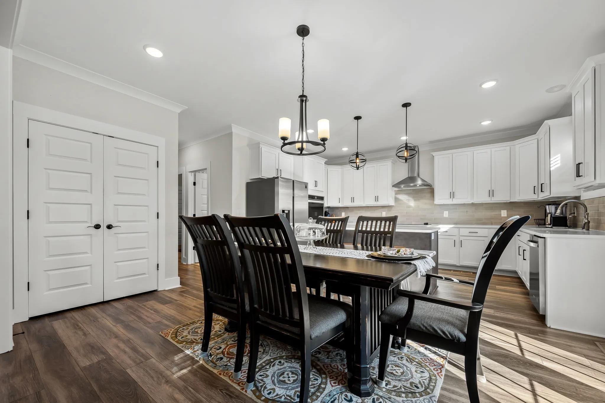 The chef’s kitchen includes quartz countertops, stainless steel appliances, double ovens, and a large island. The main-level owner’s suite provides a private retreat with a spa-like bath and custom walk-in closet, along with a dining room or office, additional bedroom, full bath, laundry room, and built-in mudroom off the 3-car garage. Upstairs offers two more bedrooms, a full bath, bonus room, and extensive attic storage. Enjoy outdoor living on the covered deck overlooking a private, tree-lined backyard, plus community amenities like a pool, splash pad, walking areas, and nearby water access. Schedule your showing today!