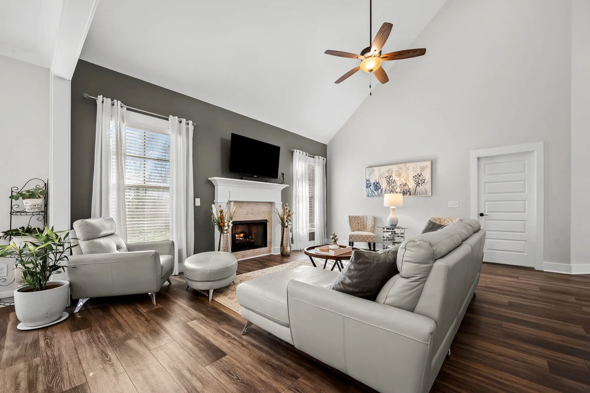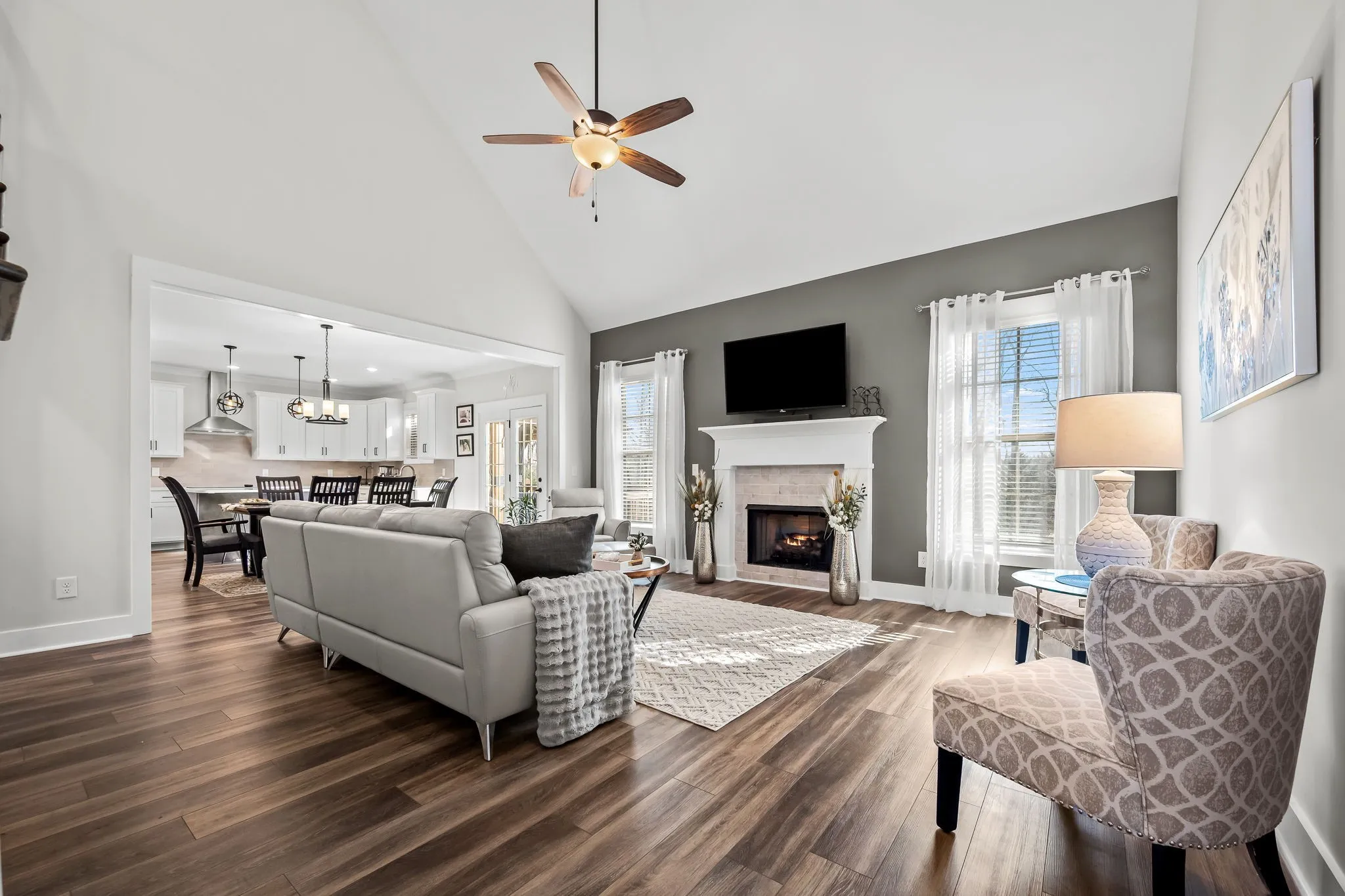 This beautiful all-brick home, tucked away in one of Lebanon’s most sought-after boutique waterfront communities sits on a third of an acre. Blending timeless elegance with modern comfort, this residence features four spacious bedrooms, three full baths, and an array of upscale finishes, including custom woodwork, paint, tile and wallpaper. This open concept home of rich hardwood floors, soaring ceilings and natural lighting creates an inviting living room, centered around a gas fireplace, and provides the perfect setting for both relaxed evenings and lively gatherings.