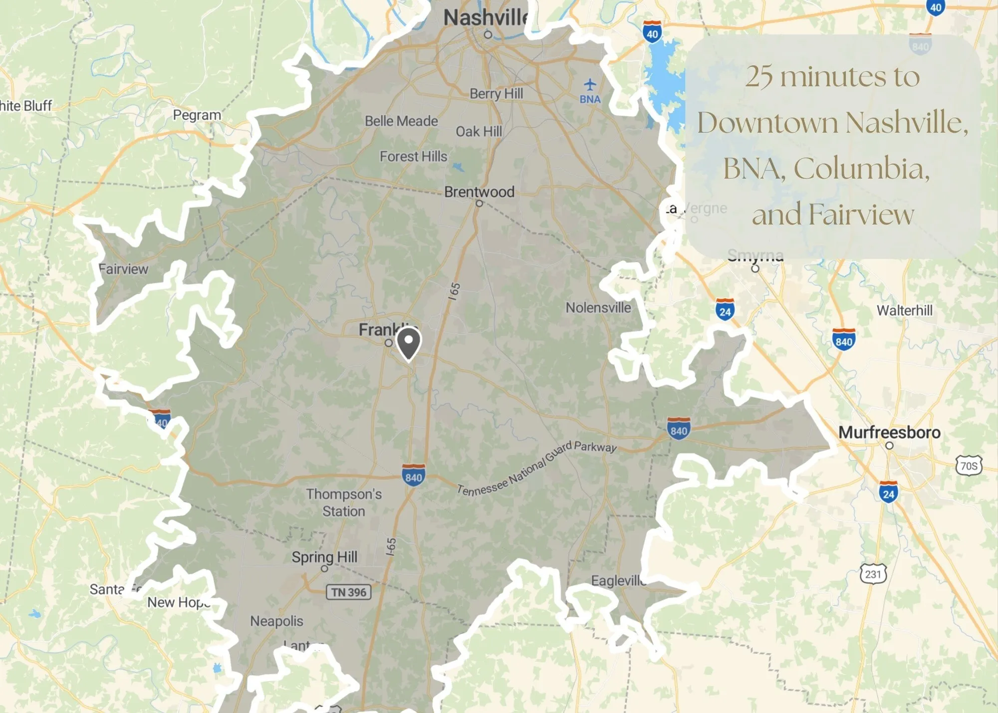 - Directions: From I-65 S take exit 65 FRANKLIN*R HWY 96 W, Turn Left on Mach Hatcher , then right on Royal Oaks Blvd (By Franklin YMCA). Then, Turn Left onto Burghley Place. The home will be on the right side.