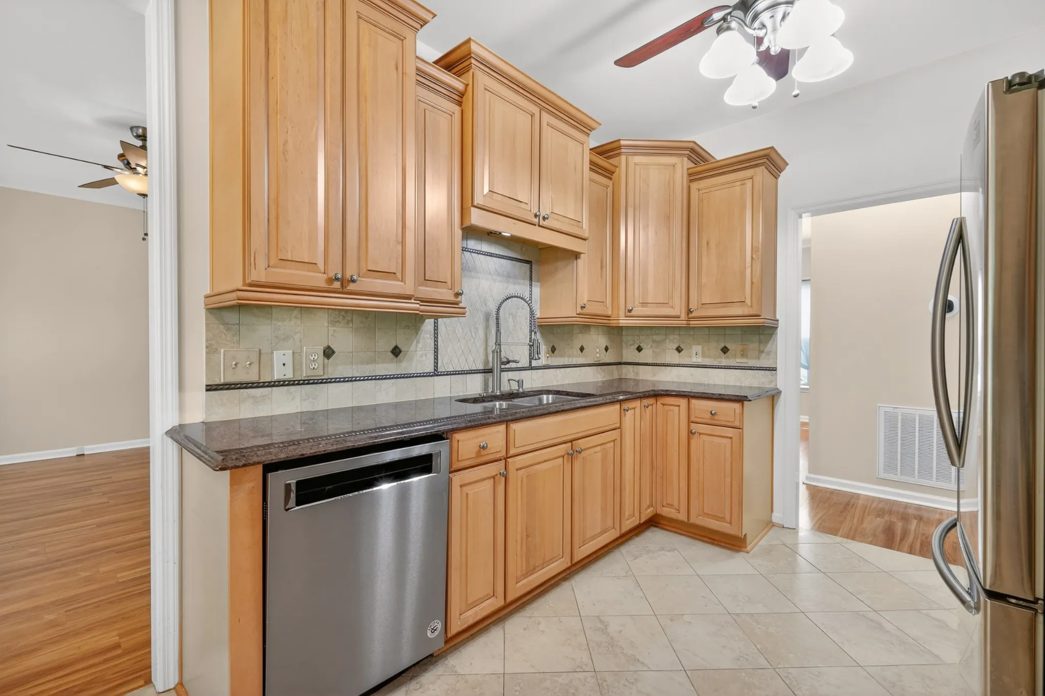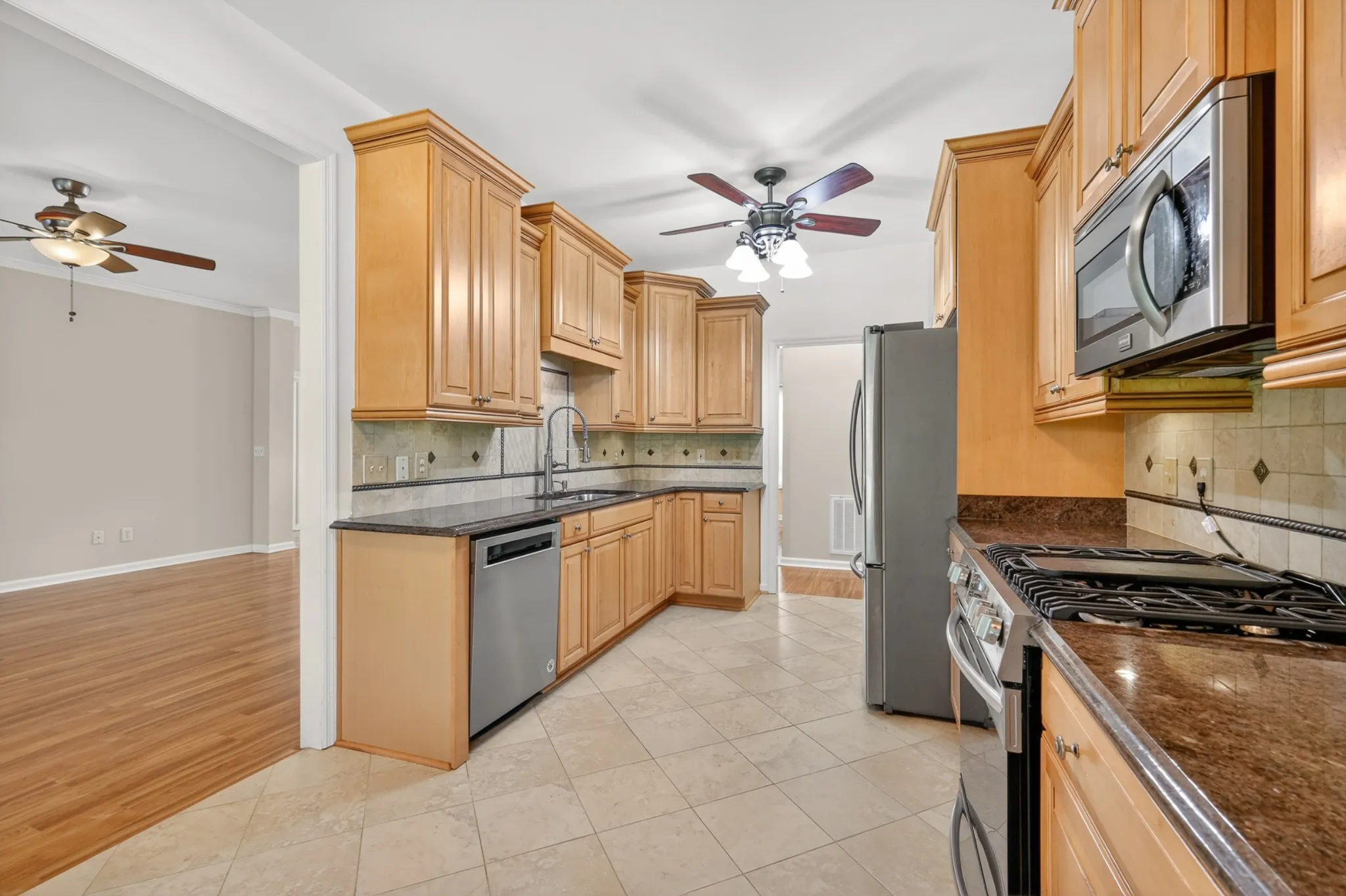 Move-in ready 3BR/2.5BA home with over 2,200 sq ft in an established neighborhood featuring mature trees and sidewalks. Spacious floor plan- all bedrooms on the main level and large bonus room and walk-in storage upstairs. Kitchen offers new stainless steel appliances; refrigerator, washer, and dryer remain. Major updates include new roof, HVAC, updated kitchen, and new paint throughout. Fenced backyard with covered patio, ideal for outdoor living. Community amenities include sidewalks, basketball, tennis, and pickleball courts, with optional pool membership. Convenient to Downtown Franklin, shopping, schools, and interstate access.