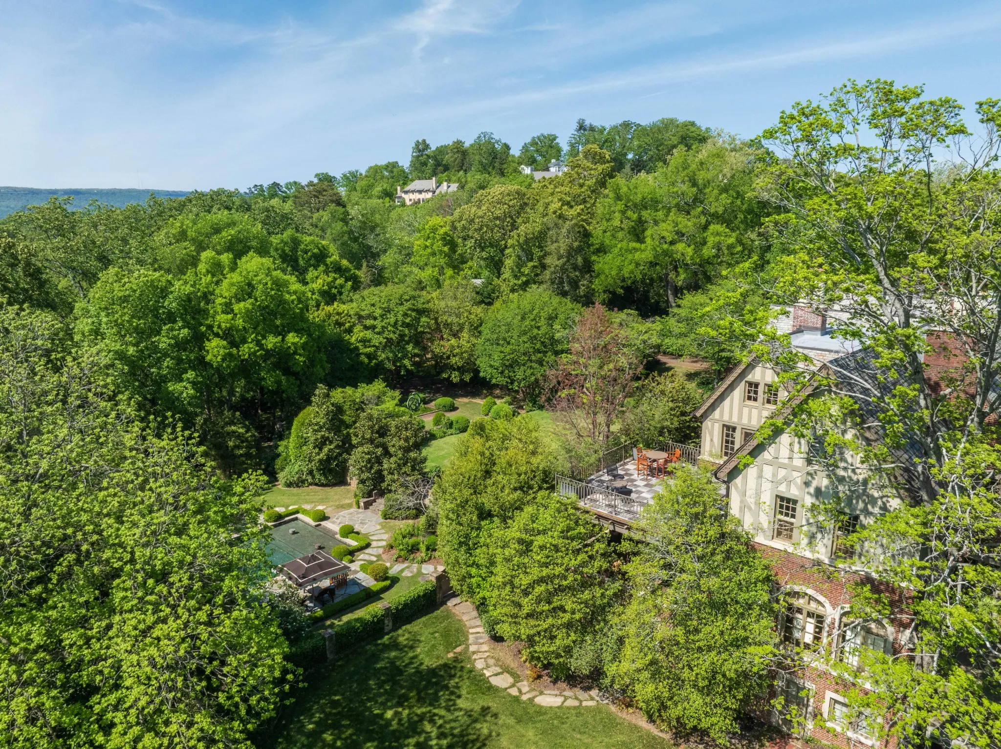 Designed by renowned architectural firm, Smith and Pringle out of Atlanta, known for their arched windows and doors, classical detail, raised first stories, and symmetry, this custom home on 6.5 +/- acres presents a once-in-a-lifetime opportunity to own one of Tennessee’s finest residences in the premier Riverview neighborhood. Built in 1927, this luxury estate with its southern classic design offers a 6 bedroom, 7 full and 2 half bath main house, a 1 bedroom, 1 bath guest house, a carriage house with a 4-bay garage and upper-level apartment, a heated Gunite pool with fountain, and high-end architecturally designed landscaping. Enjoy coveted privacy with views of Lookout Mountain, as well as stunning sunrises in the front and sunsets in back. Perfectly suited for gathering and entertaining, the home boasts expansive outdoor living spaces, and both formal and informal living spaces overlooking the lush grounds. With attention to detail and amazing craftsmanship rarely seen today, this truly impressive home offers a glimpse into the remarkable design and finishes of a bygone era, seamlessly blended with modern amenities desired by today’s buyers. This premier property offers the discerning purchaser the chance to become a part of Chattanooga’s remarkable architectural history. Located just minutes from the Chattanooga Golf and Country Club, and close to schools, parks, hospitals, and downtown Chattanooga, please call form more information about this remarkable property and to schedule a private showing. Information is deemed reliable but not guaranteed. Buyer to verify any and all information they deem important.