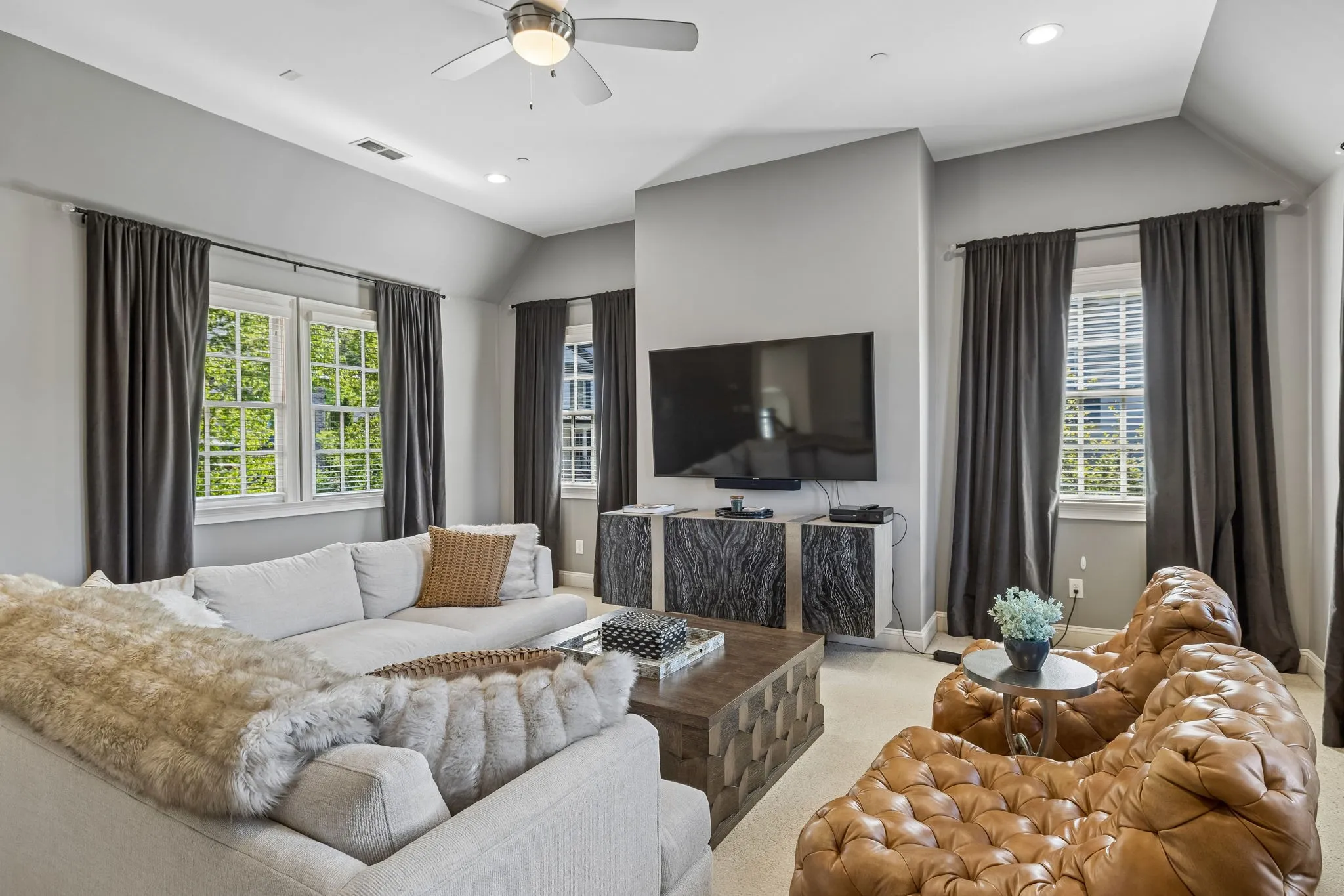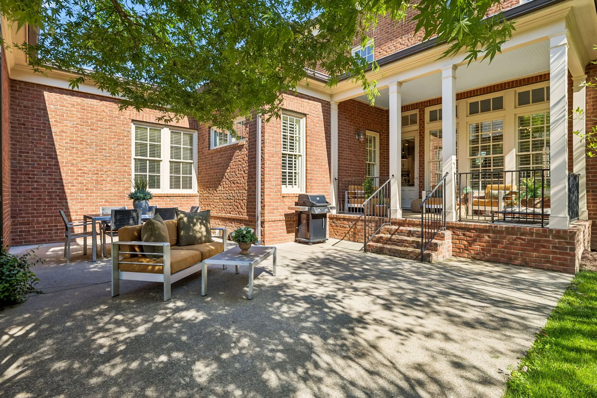 Discover refined elegance in this beautifully updated, almost 3,500 SF end-unit townhome nestled within the exclusive gates of Windstone—one of Brentwood, TN’s most coveted communities. Zoned for top-rated Williamson County schools, this home is a rare blend of luxury, convenience, and low-maintenance living. Step inside to a light-filled, open-concept layout where timeless design meets modern comfort. The gourmet kitchen is a true focal point, boasting designer finishes and ample space for entertaining. The main-level primary suite features a spa-like bath complete with heated floors and a seamless flow to the spacious walk-in closet and laundry room—creating a private, retreat-like experience. Upstairs, two well-appointed guest suites are accompanied by a generous bonus/media room, perfect for movie nights or casual gatherings. Throughout the home, abundant storage solutions and closets offer effortless organization. Enjoy outdoor living year-round with two covered patios and a fenced-in yard—an exceptional find for an end-unit townhome. One of the greatest advantages? The HOA covers all exterior maintenance, allowing you to truly relax and enjoy your surroundings. Windstone offers an elevated lifestyle with access to premium amenities including a clubhouse, fitness center, and pool—all within the security of a gated neighborhood. This is a rare opportunity to own a stylish, turnkey home in one of Brentwood’s most desirable addresses.