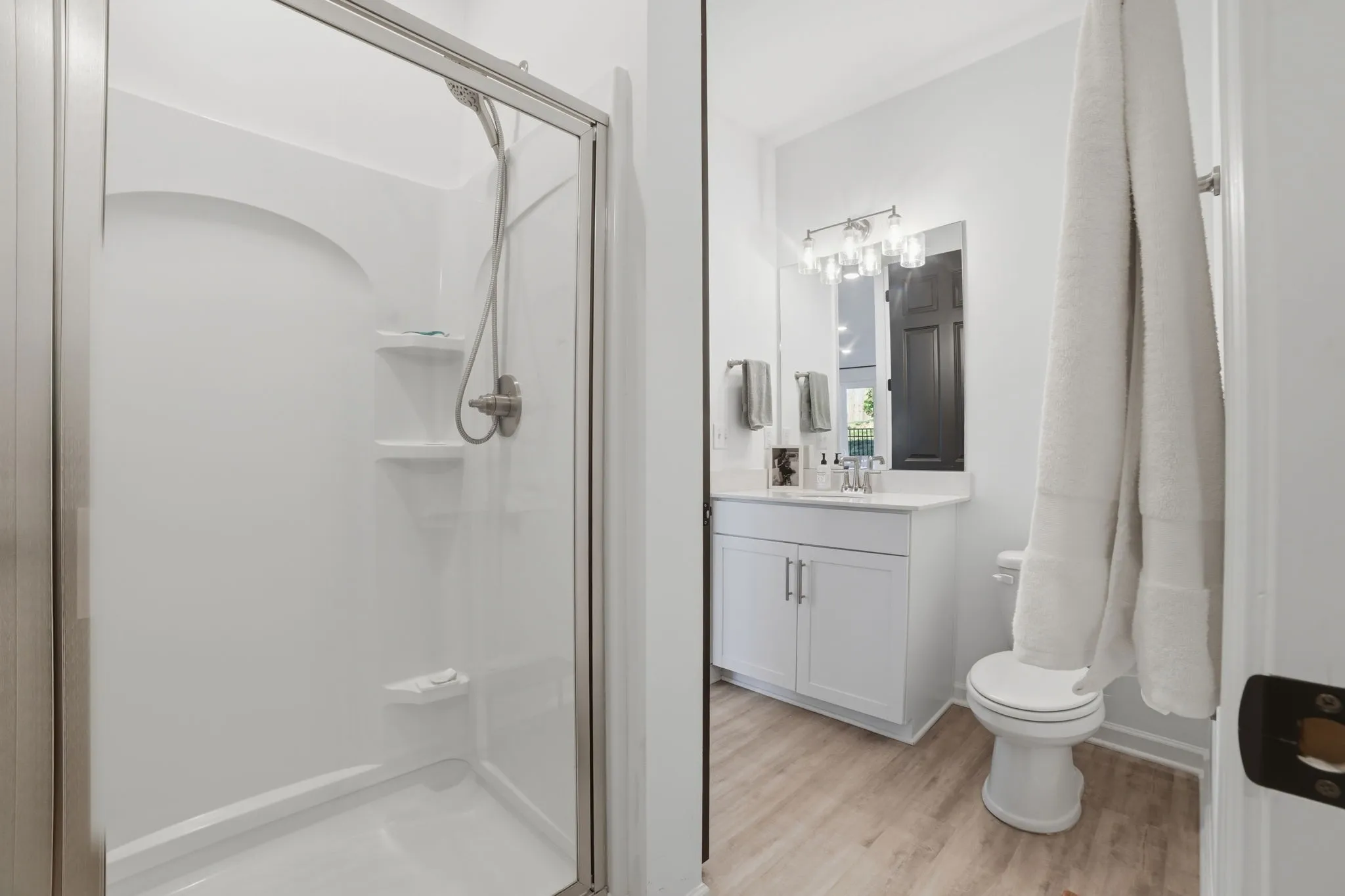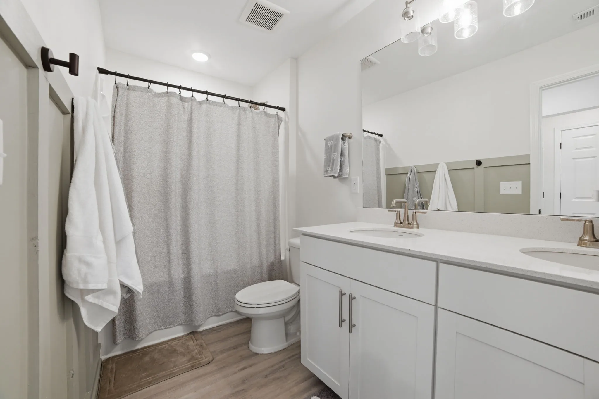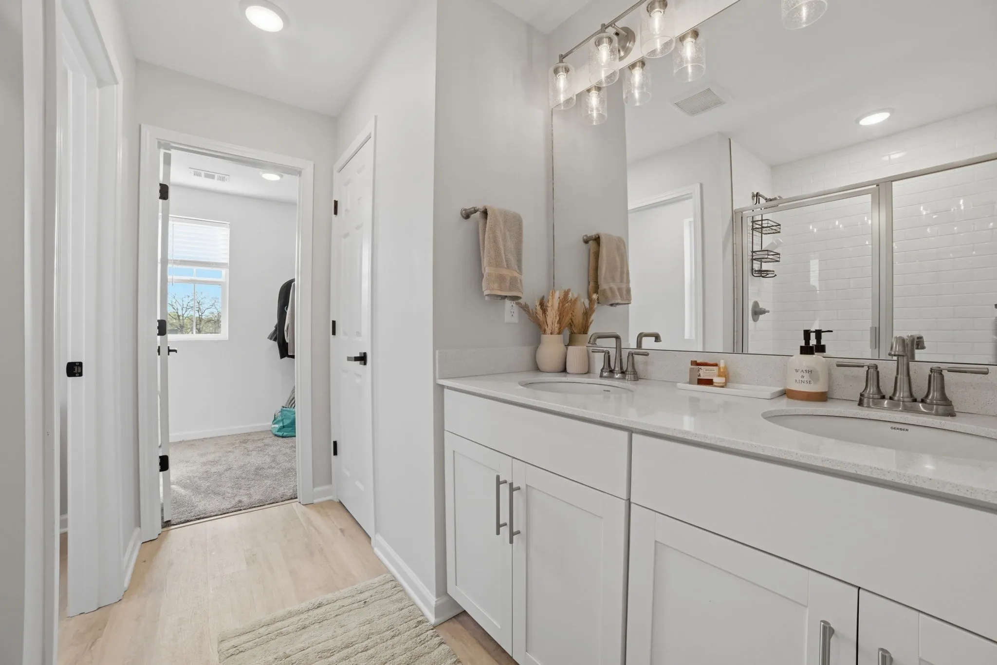 Welcome home to 121 Timber Crest Trail in White Bluff, a 4BR/3BA home in a great location with approximately 2,000 square feet of thoughtfully designed living space. The floor plan is flexible, featuring a main-level bedroom and full bath for easy living, plus a primary suite and two additional bedrooms and two more full baths upstairs, and an upstairs laundry room. An open foyer with a drop zone leads into a bright, open living/dining/kitchen area centered around a large island with seating, while a walk-in pantry provides extra storage and convenience. A two-car garage with shelving rounds out the practical side of this home. The low-maintenance yard includes a small rear patio ideal for grilling or relaxing outdoors.
