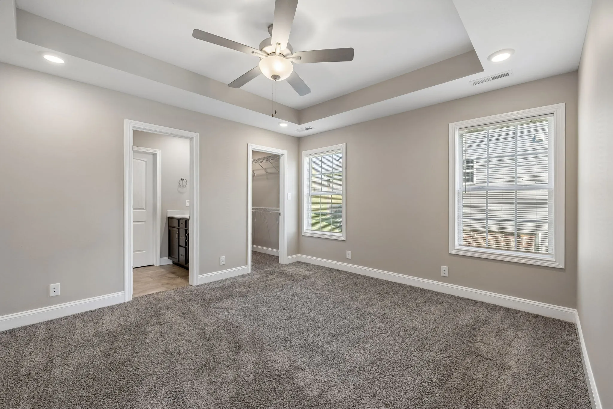 The spacious primary suite includes tray ceilings, double vanities, and a private bath. A large bonus room upstairs offers flexible space for a media room, office, or additional living area.