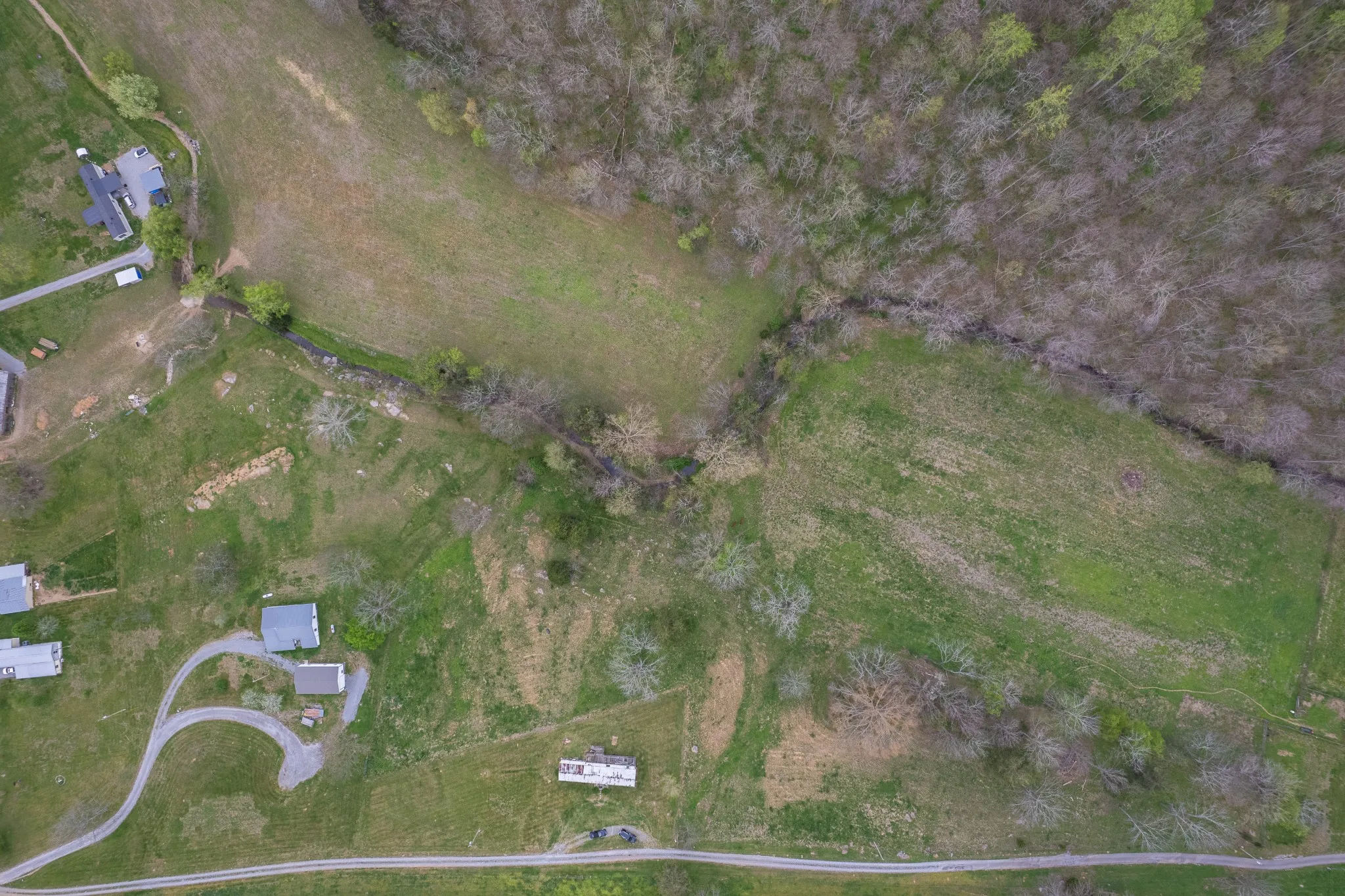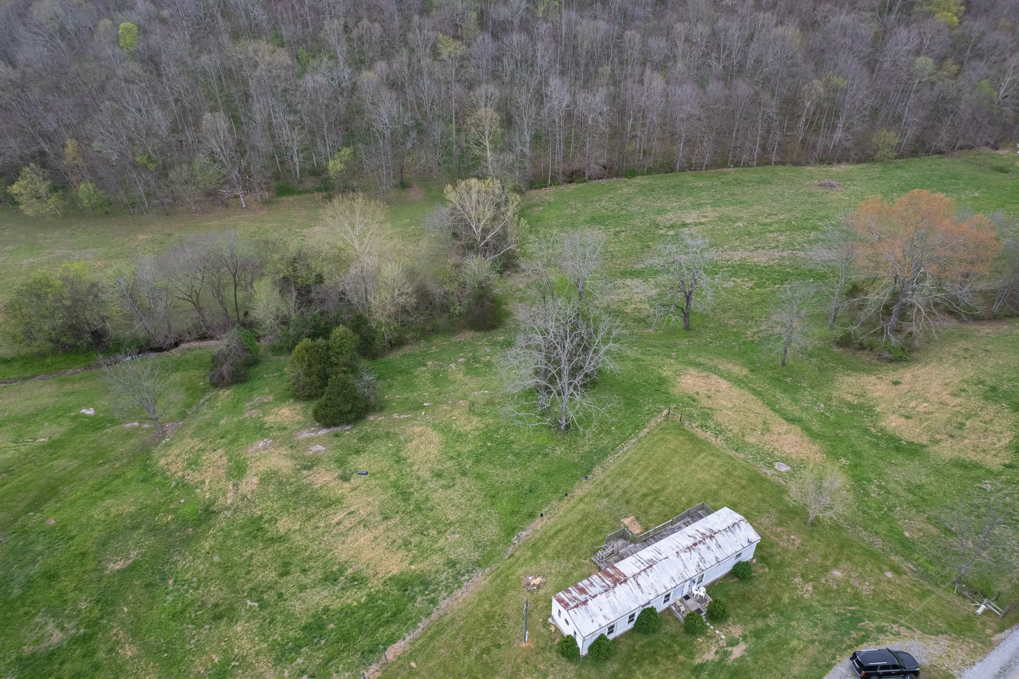 Picturesque views, Tranquility, and Peace awaits you within this beautiful country valley. Located on a scenic rolling hill this is the perfect spot to build your dream home or choose to give some TLC to a renovation project. This property offers the rare combination of pasture land and Woods. Doddy creek is an all season creek that winds through the backyard and property to feed into Bedford Lake. Mature woods lead up to the top of the ridge. Adventurers can hike to the top of the ridge for a view of Bedford Lake. Normandy lake is only a 5 min drive. This spot currently has a permanent foundation mobile home in place that was successfully rented and lived in as recently as March 2026. No value has been giving to the structure by Tax records. It could be renovated to personal preference or removed. Already in place is electric, well water with new well lines and pump overhaul in 2025, septic tank in place, and Fiber Optic high speed internet. The land is being surveyed to make it a 5.01 acre tract. Parts of the pasture already fenced. Please note that this track can not be subdivided or multiple homes. The main clearing on about one plus acre is the best building site on or around the current mobile home site.