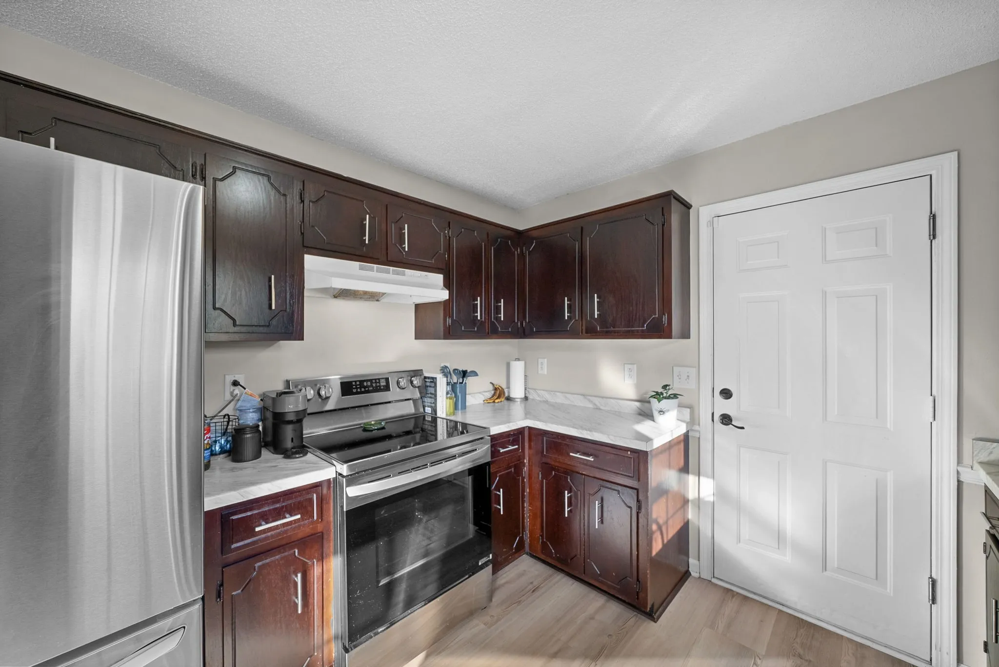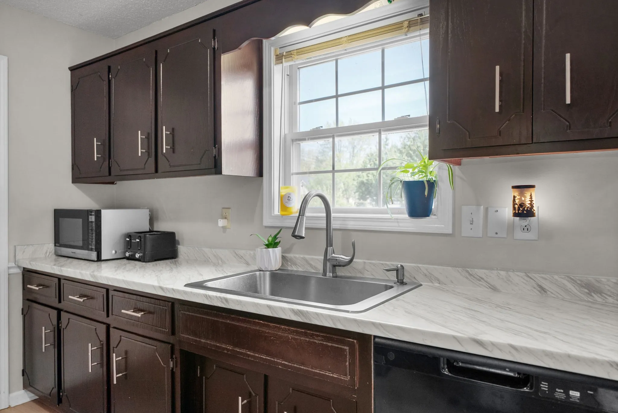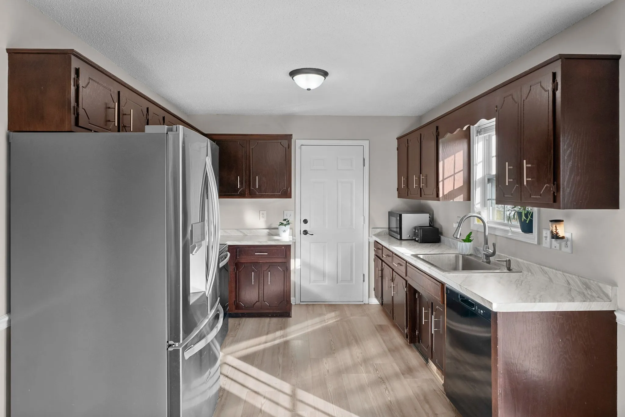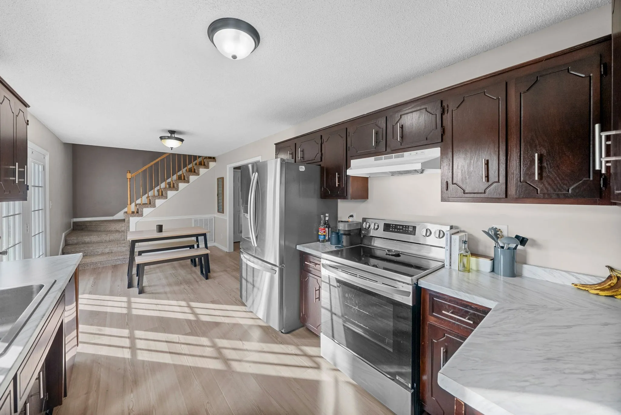 Recent improvements provide peace of mind and stylish finishes throughout. A new roof and front door were installed in 2023, along with a new stove and refrigerator. The main level has been refreshed with all new flooring in 2025, complemented by updated kitchen countertops that enhance both function and appeal.