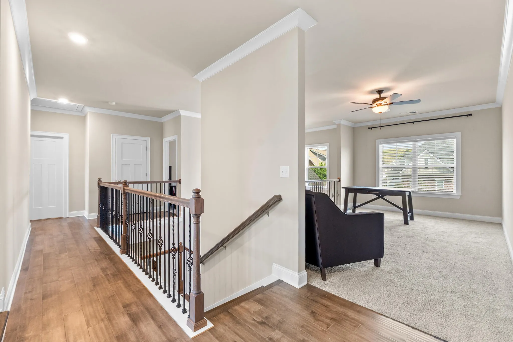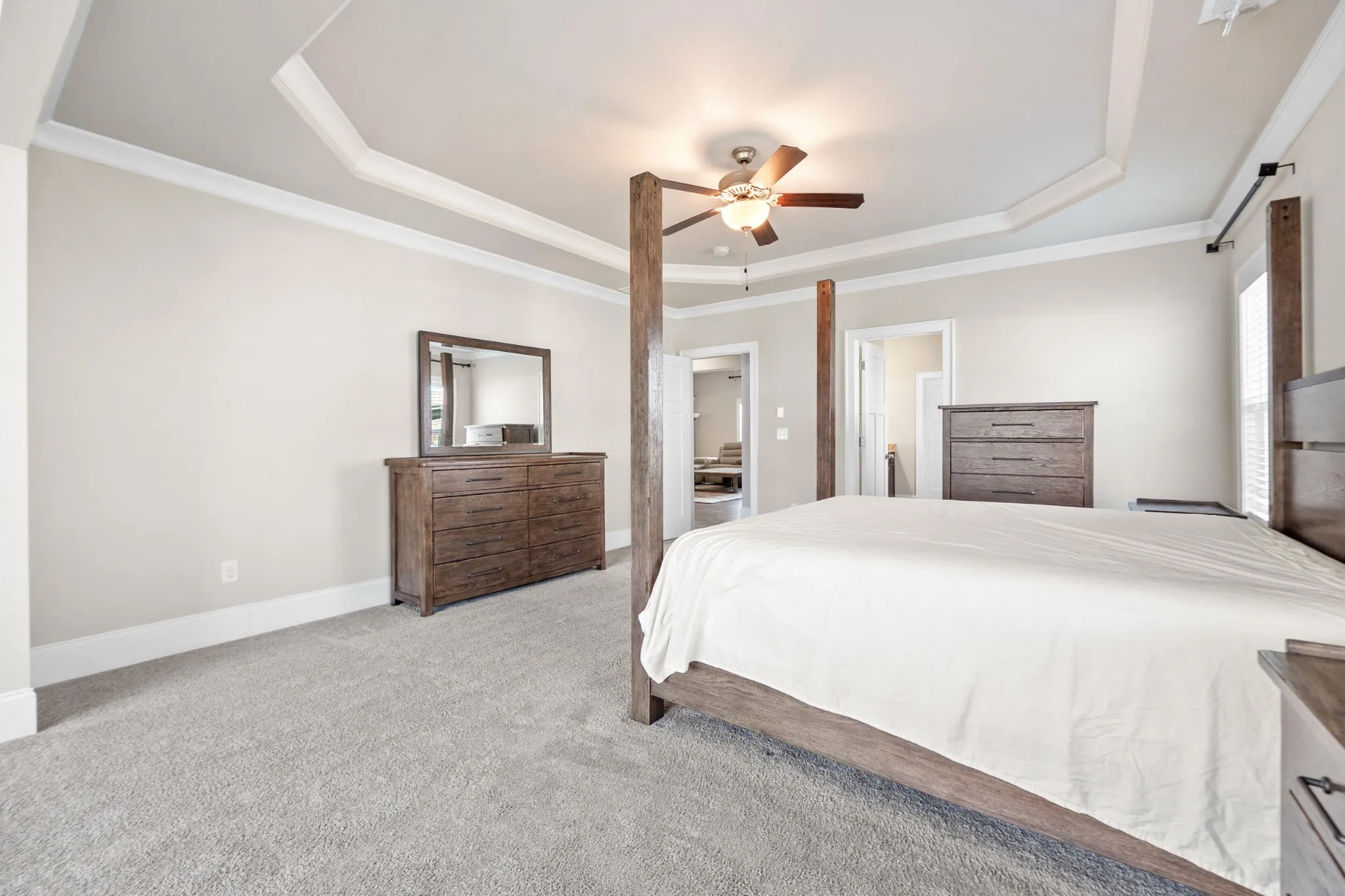 The primary suite on the main level offers a private retreat with a comfortable sitting area, large walk-in closet, and well-designed bath space. Upstairs, you’ll find additional bedrooms, a flexible loft area, and a large media/bonus room ideal for entertainment, work, or relaxation.