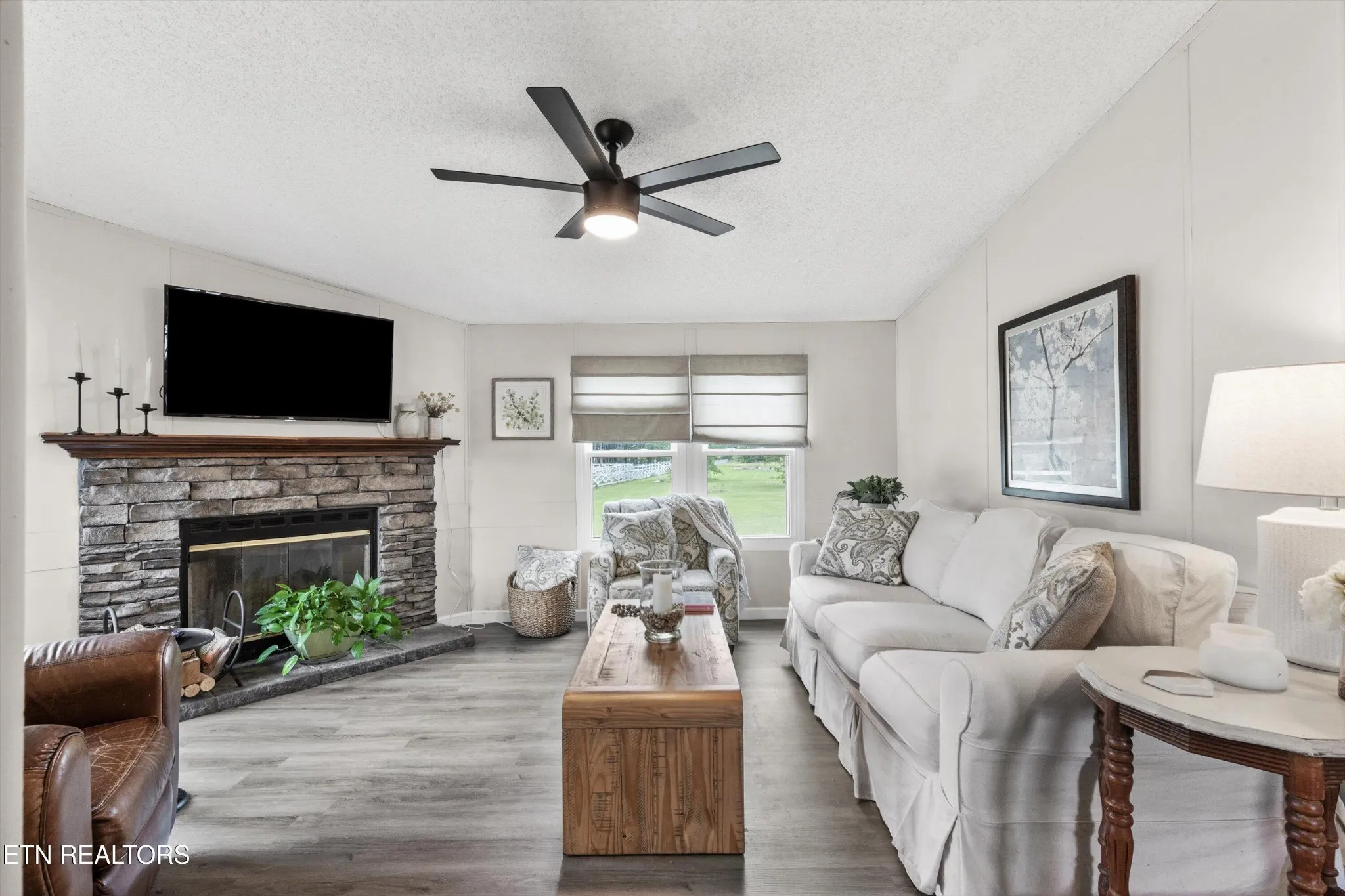 At the heart of the home is a gorgeous stone wood-burning fireplace, perfect for cozy nights in. The HVAC system was updated in 2022, giving peace of mind along with energy efficiency. Every detail has been refreshed, making this home truly move-in ready.