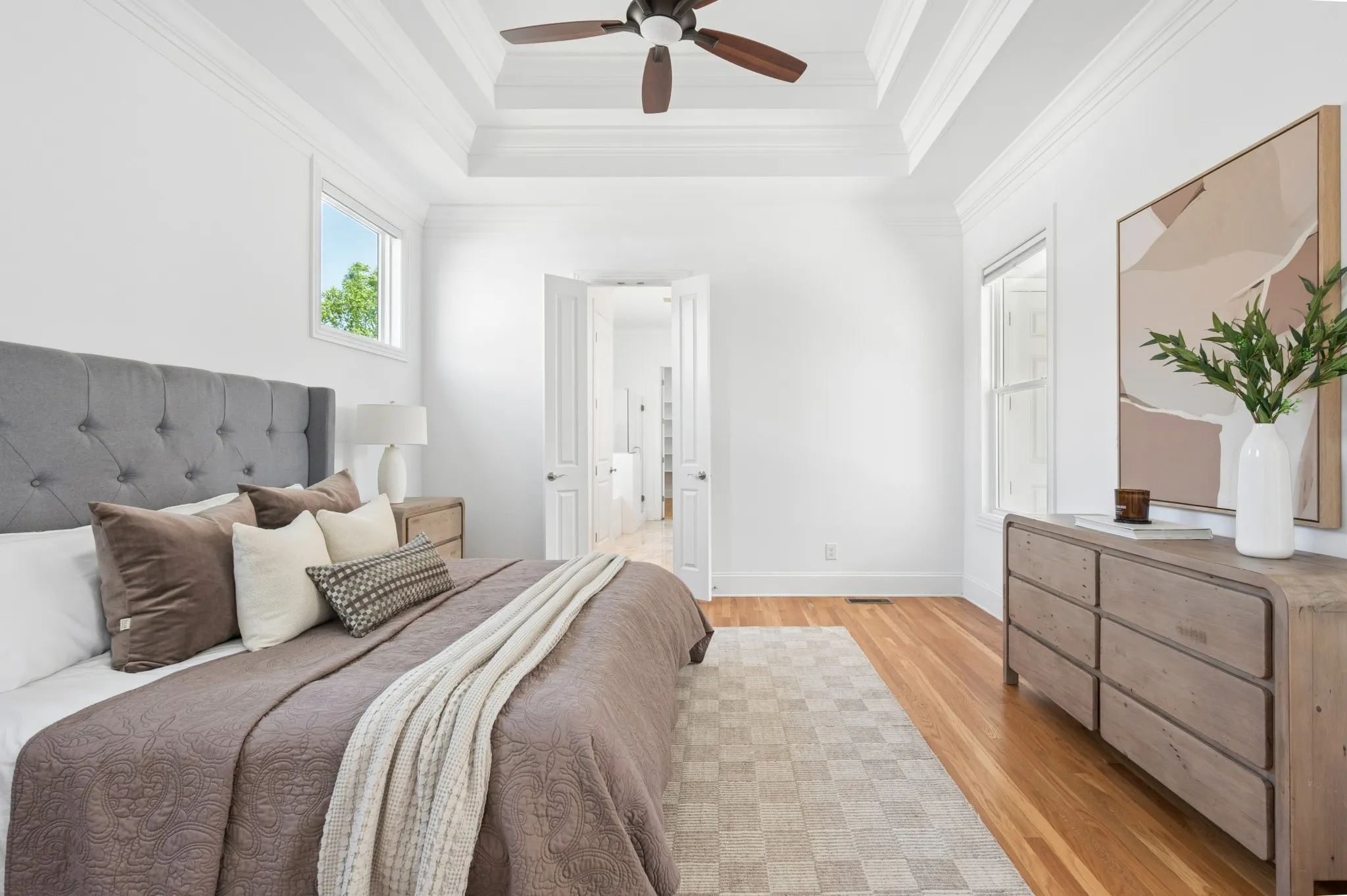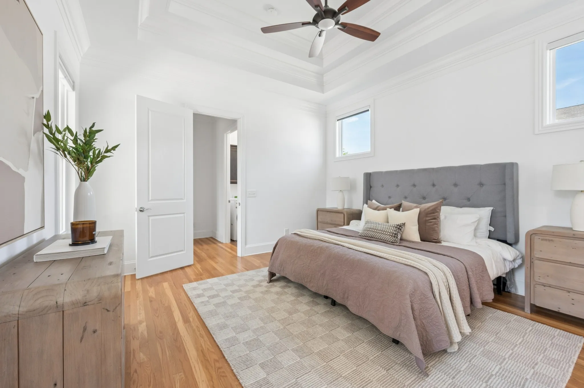 Inside, you’ll find gleaming hardwood floors that flow throughout the Living Spaces and Primary Bedroom, adding warmth and sophistication. The flexible floor plan includes a formal dining room that easily doubles as a home office; perfect for hosting dinner parties or working from home in style.