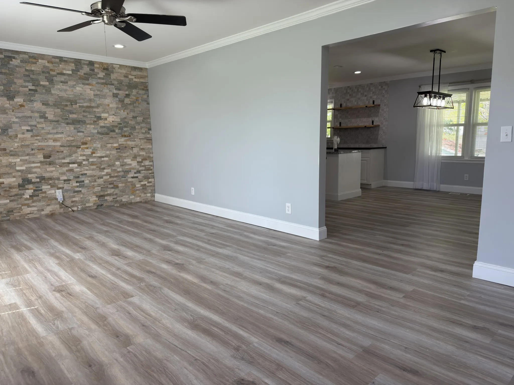 Beautiful move-in ready home located in a great neighborhood featuring numerous updates throughout! The interior offers luxury vinyl plank flooring throughout, granite countertops, new kitchen cabinets with plenty of counter and cabinet space, stainless steel kitchen appliances including a new refrigerator, and a spacious walk-in pantry. Bathrooms feature stylish tile showers, while new lighting and ceiling fans add a fresh, modern touch. The home also includes Sherwin-Williams paint throughout, new double pane windows, a new garage door opener, and a newer roof, giving buyers peace of mind. Step outside to enjoy the large covered patio, perfect for relaxing or entertaining. The fenced-in backyard provides privacy and space for pets or outdoor activities, along with a 16×12 outbuilding with electricity for storage, hobbies, or a workshop. A paved driveway completes this well-maintained property.