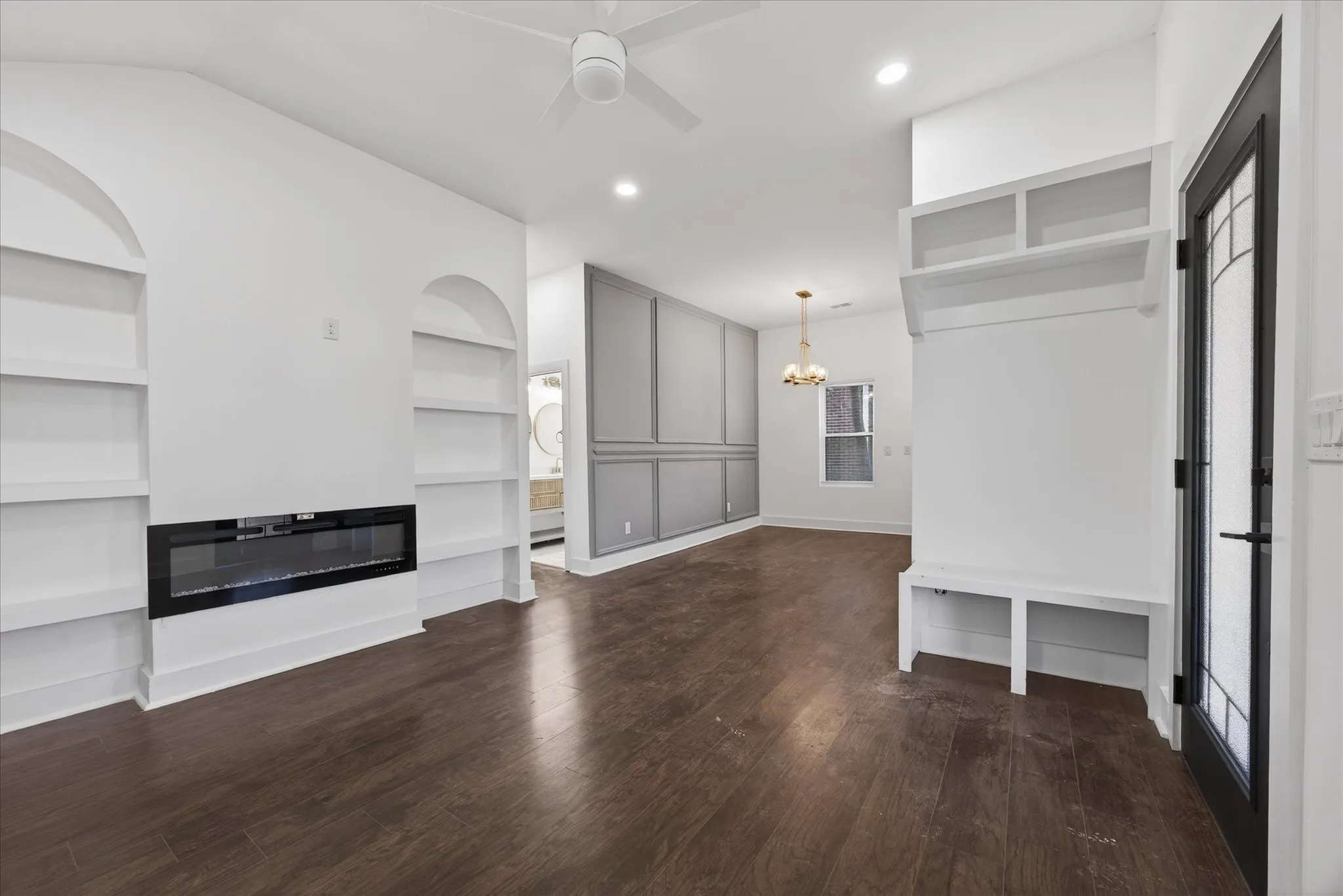 Interior Features Open Floorplan, High Ceilings, Built-in Features, Ceiling Fan(s)