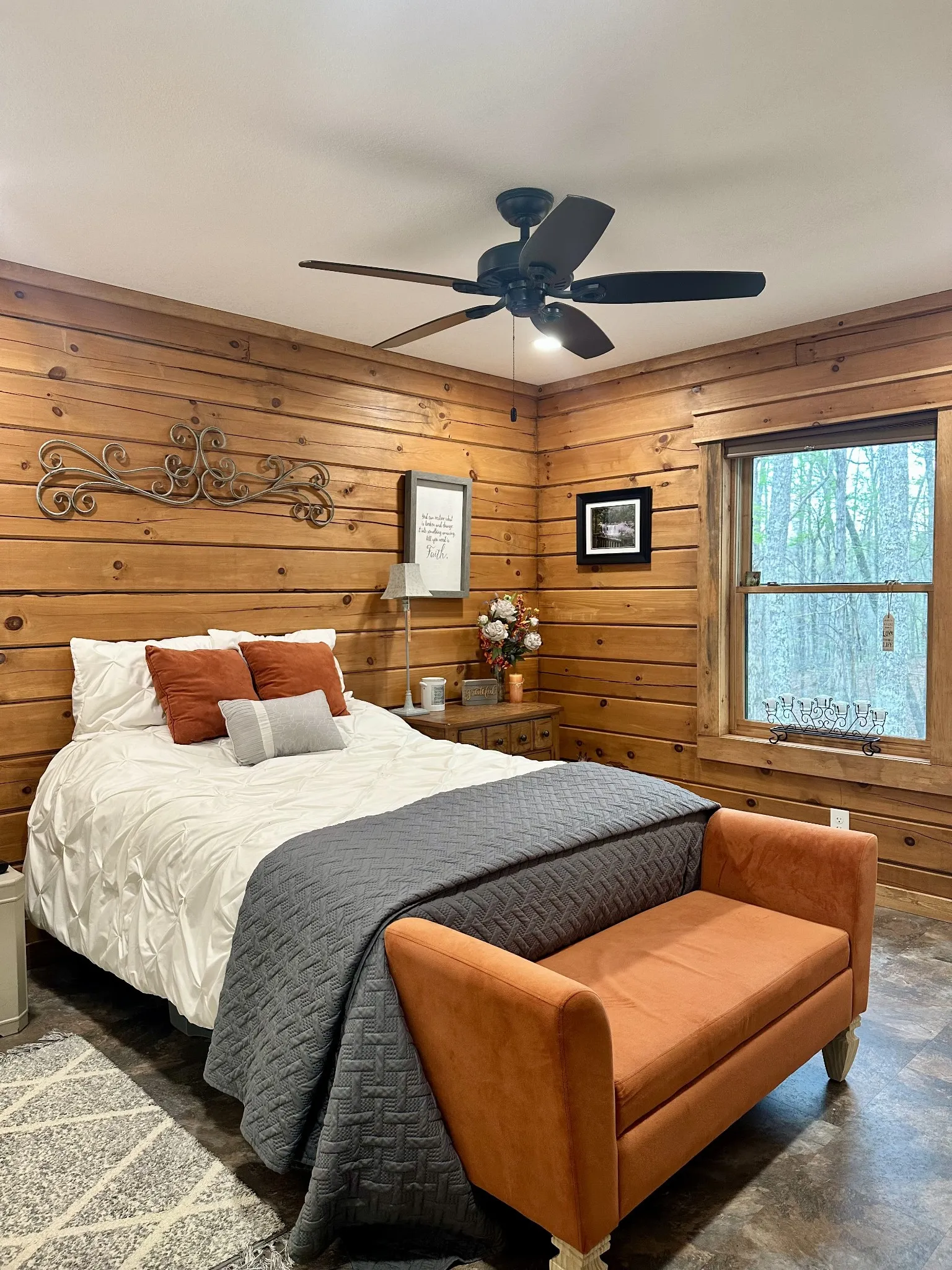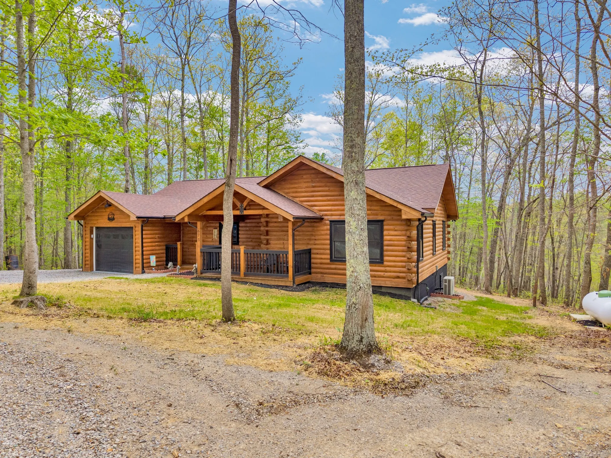 Welcome to your peaceful retreat in Moss, TN! This beautiful one-owner log cabin, built in 2024, sits on 5 private acres and offers the perfect blend of modern comfort and country charm. Featuring 2 bedrooms and 2 bathrooms, this home boasts luxury vinyl flooring throughout with cozy carpet in the bedrooms. The home is fully insulated, including the ceiling, ensuring year-round comfort and efficiency. Enjoy recessed lighting with dimmers throughout and USB outlets in the master bedroom for added convenience. Equipped with efficient split units for heating and cooling, each with a 10-year transferable warranty. Stay cozy with ventless gas fireplaces in the master and living room, plus an electric fireplace in the guest bedroom. Outside features include a covered back deck, 1-car garage with epoxy flooring, workshop, and peaceful views!