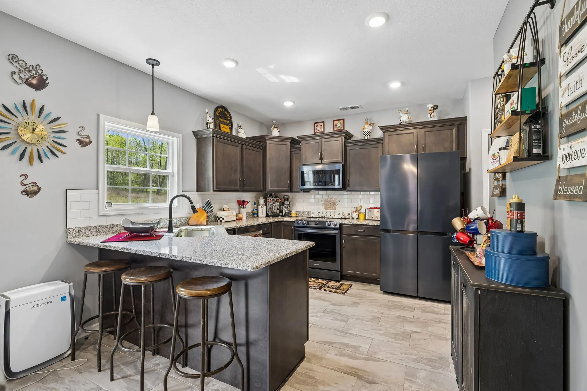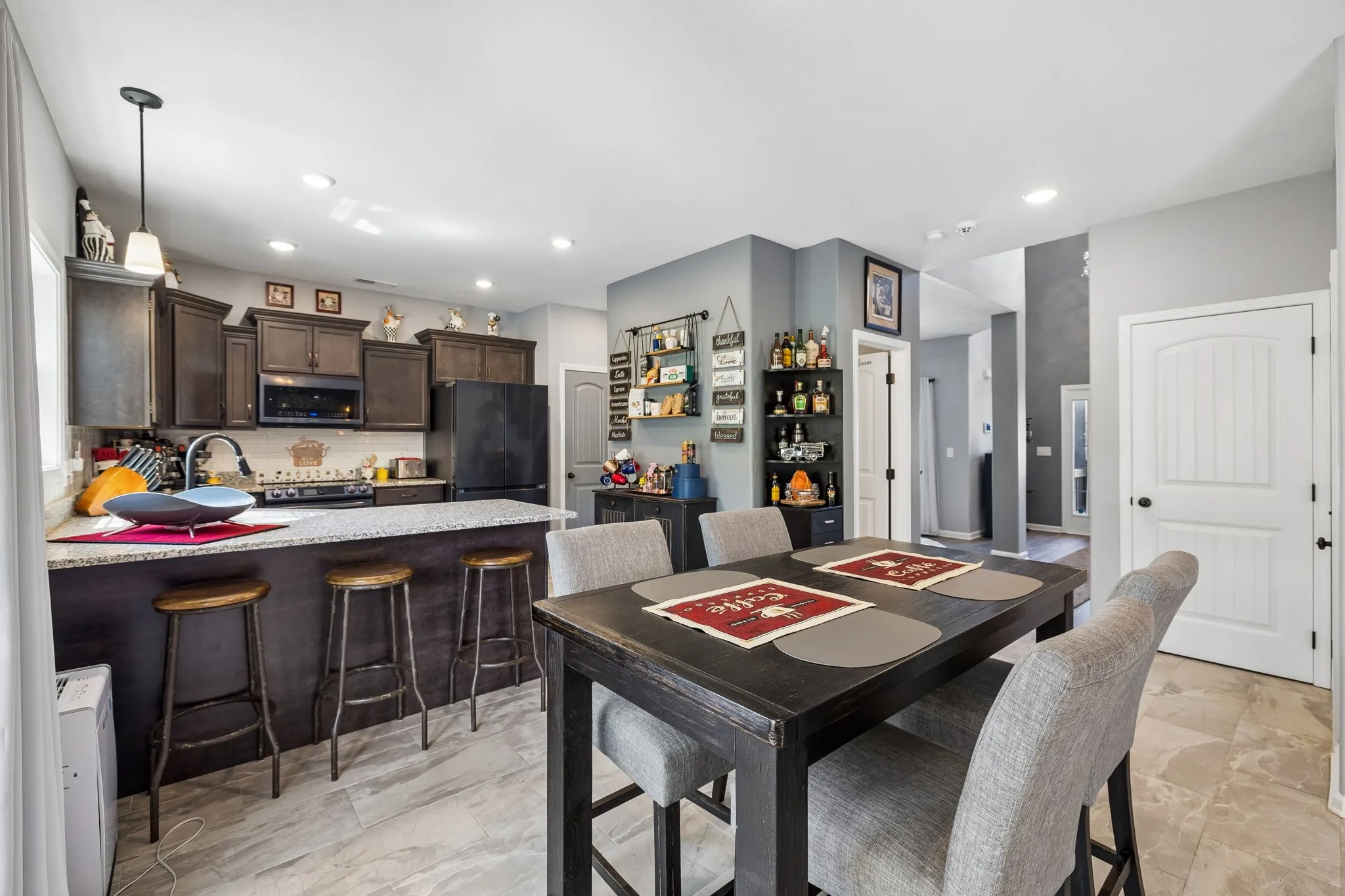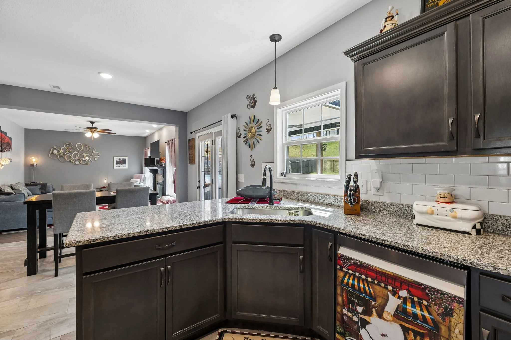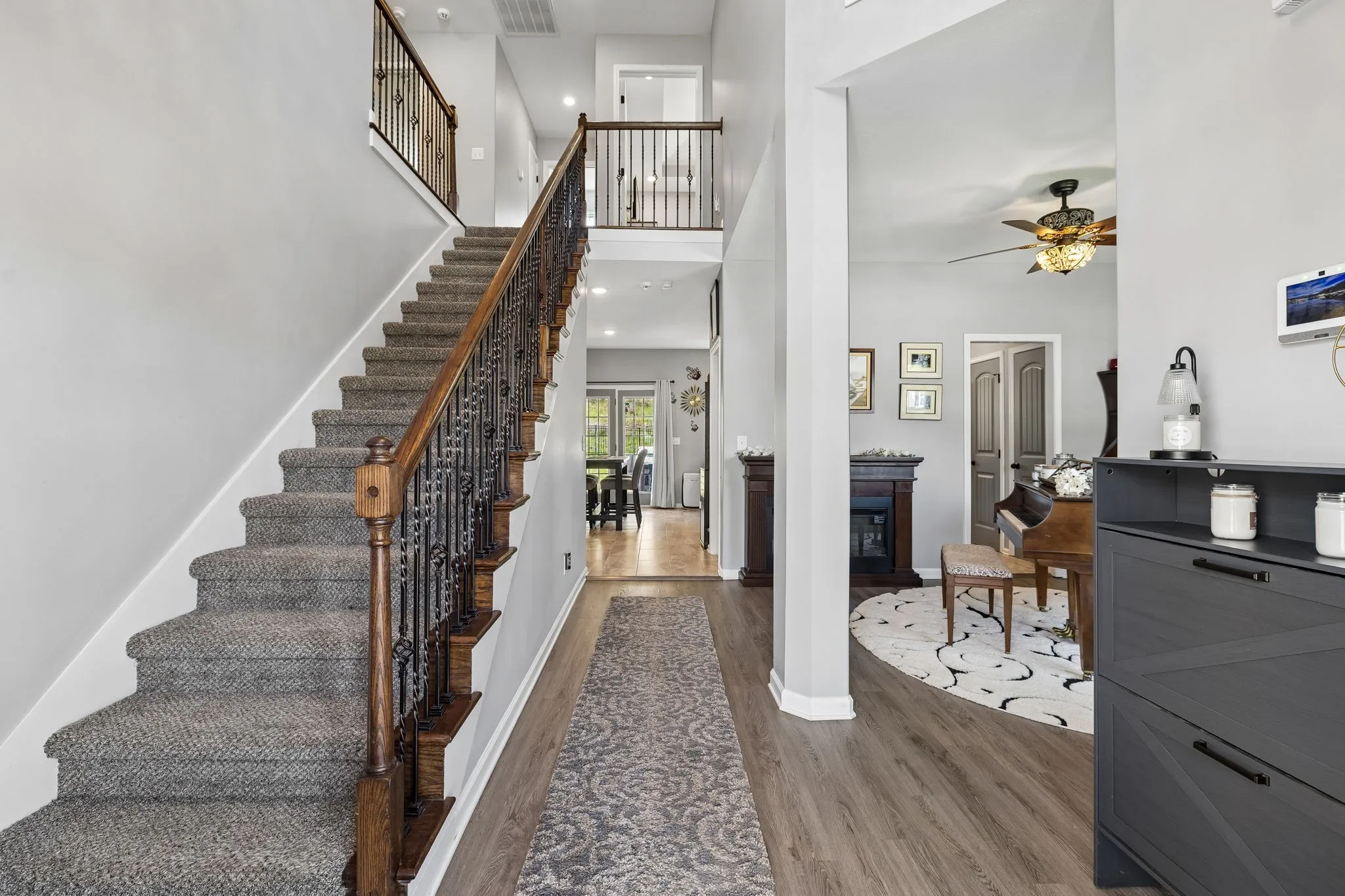 Step inside to an open floorplan designed for both everyday living and entertaining. The living room features a cozy fireplace, flowing seamlessly into the kitchen where a peninsula provides seating for three—perfect for casual meals or gathering with guests. Just off the main living space, you’ll find a versatile piano room that can easily serve as a formal dining room, home office, or flex space to fit your needs.