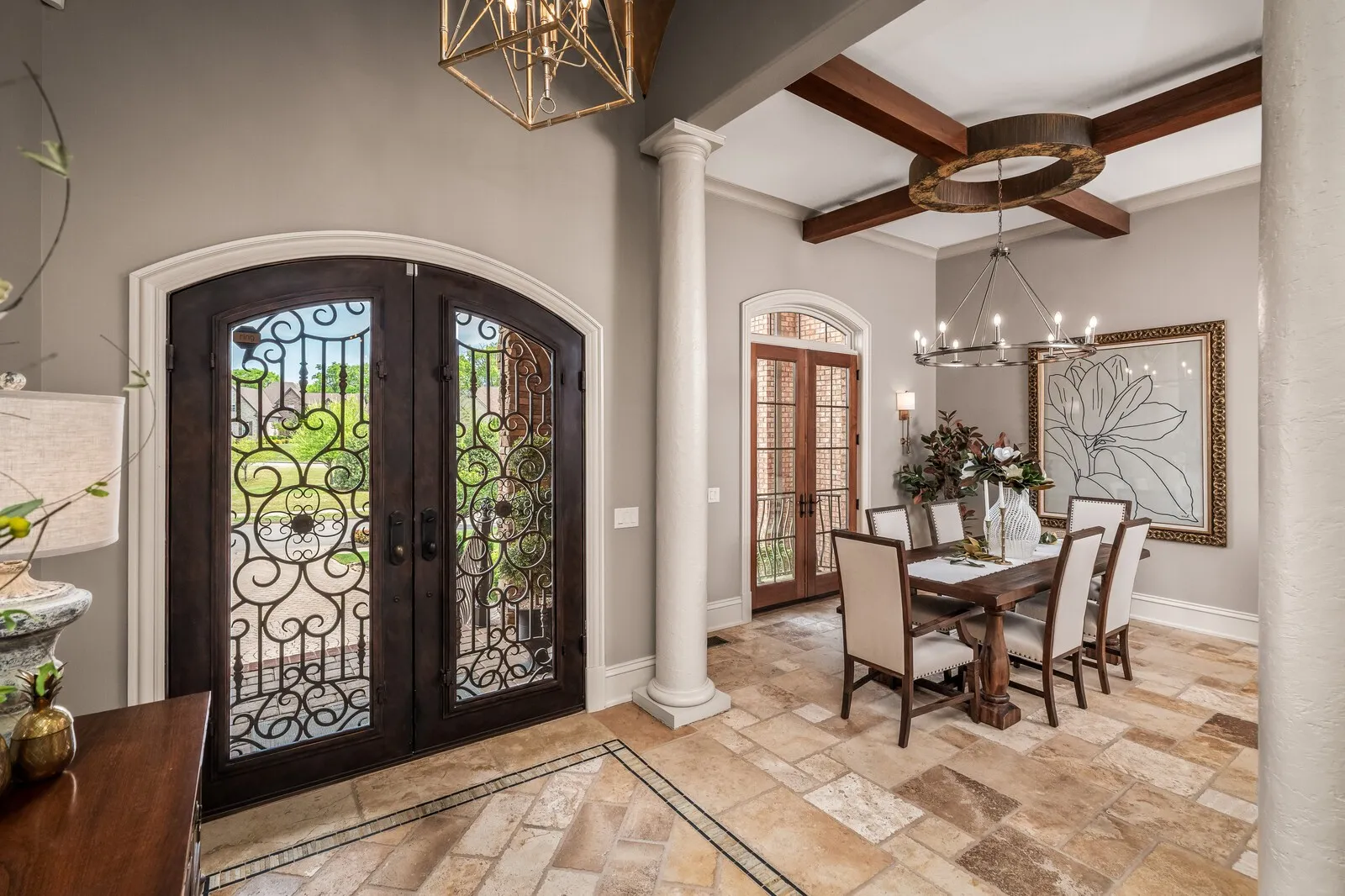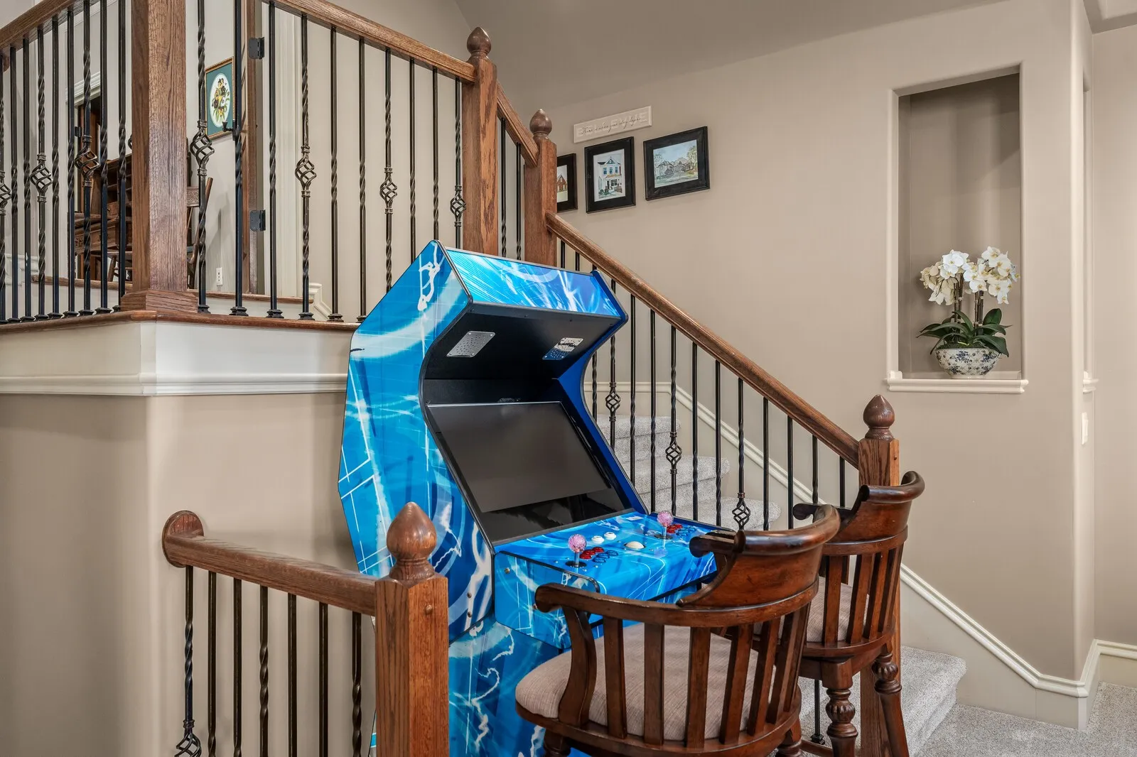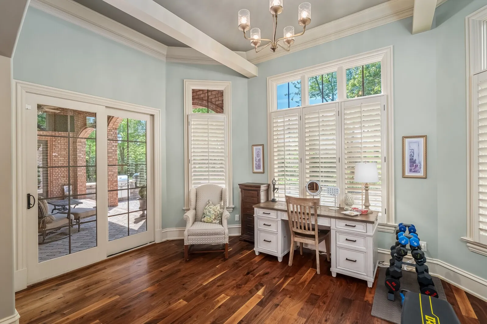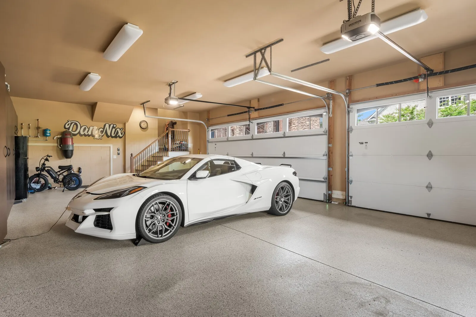 The home is further elevated by updated designer lighting on the main level, plantation shutters, and a cohesive, refined color palette throughout. Function meets luxury with a tankless water heater, new garage doors and system, epoxy-coated garage floors, and hardwood steps leading into the garage—every element thoughtfully curated.