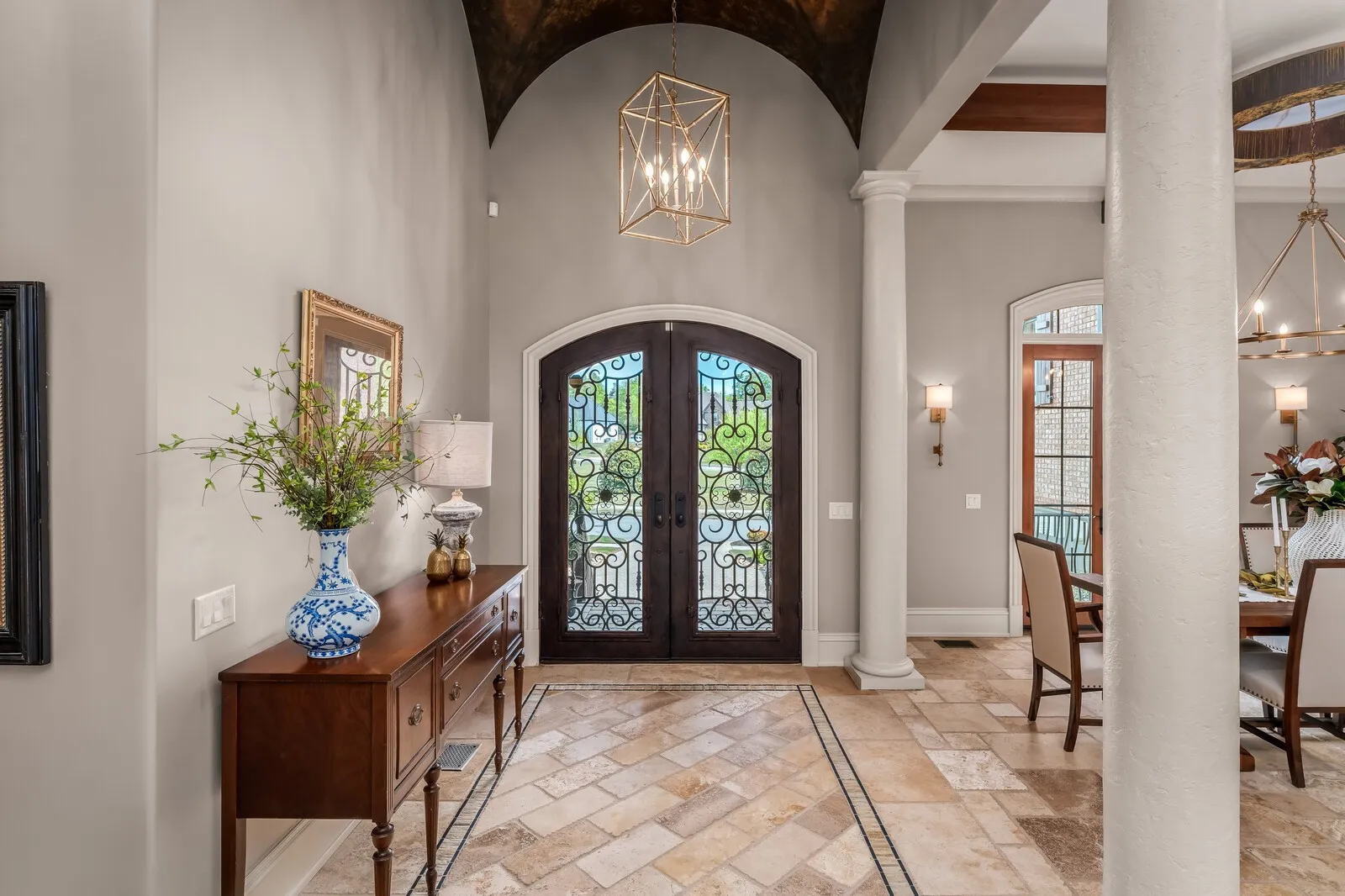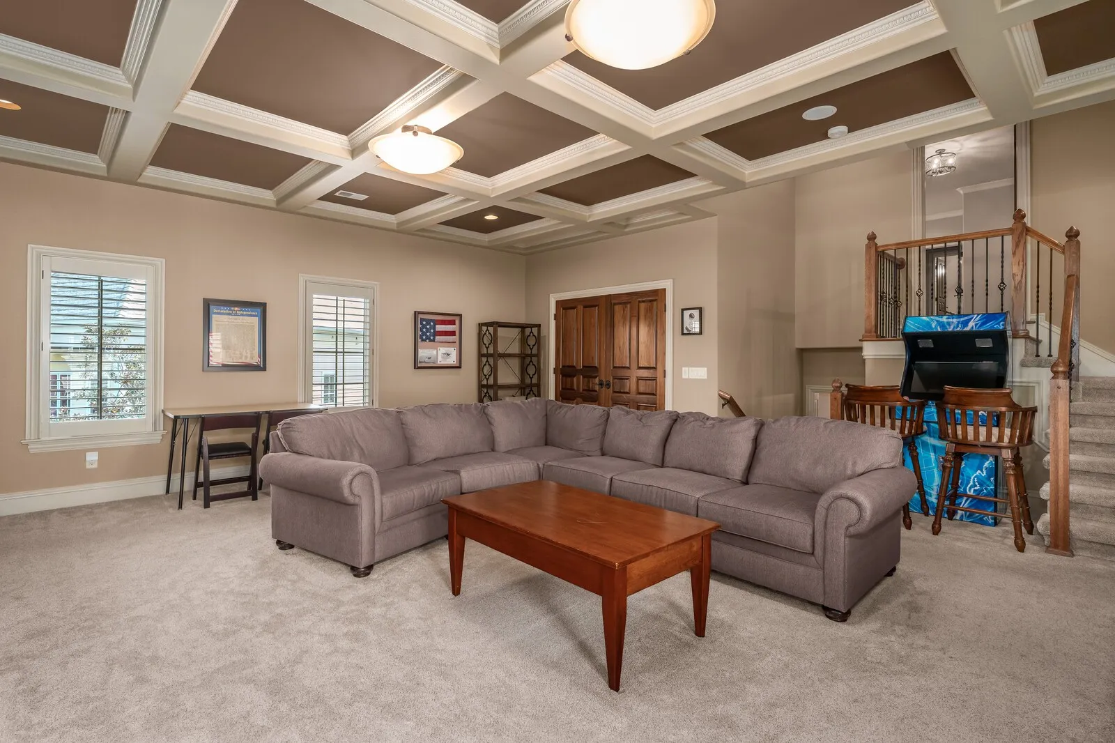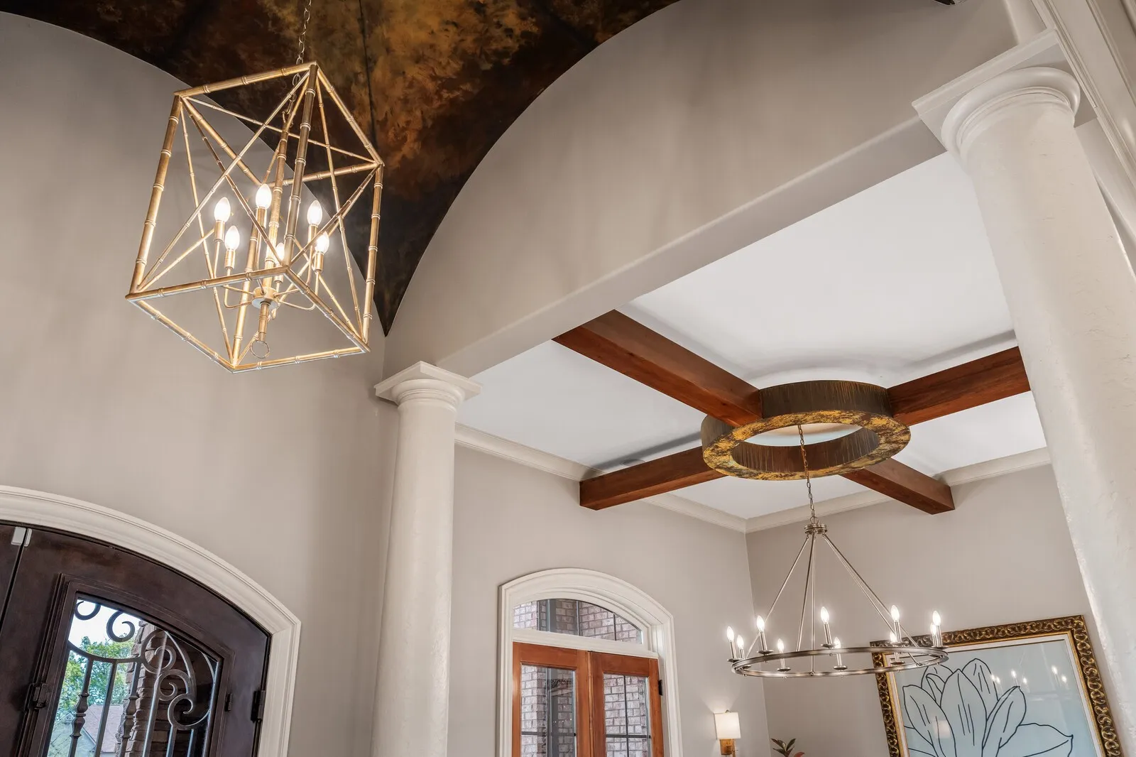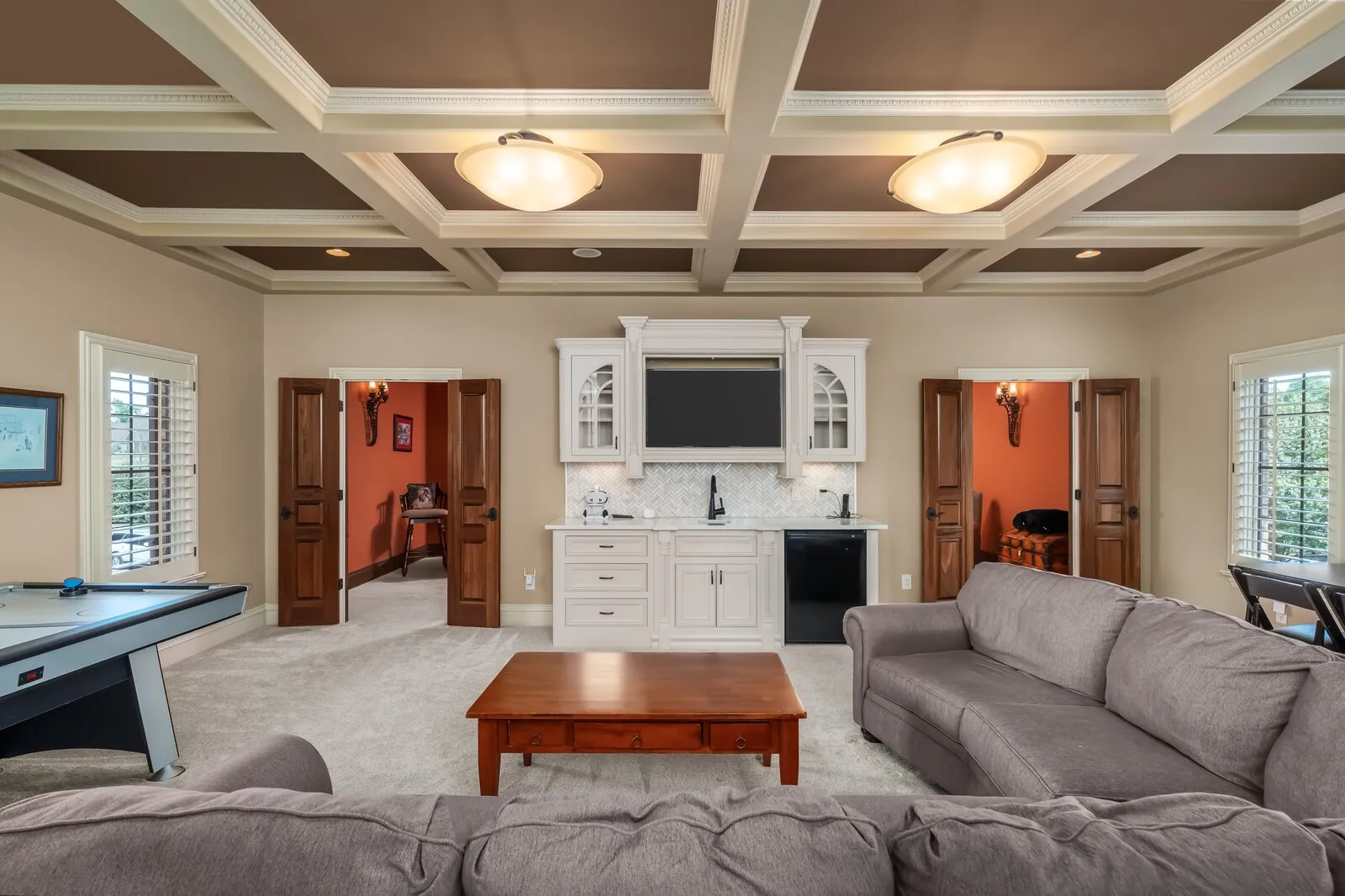 The home is further elevated by updated designer lighting on the main level, plantation shutters, and a cohesive, refined color palette throughout. Function meets luxury with a tankless water heater, new garage doors and system, epoxy-coated garage floors, and hardwood steps leading into the garage—every element thoughtfully curated.