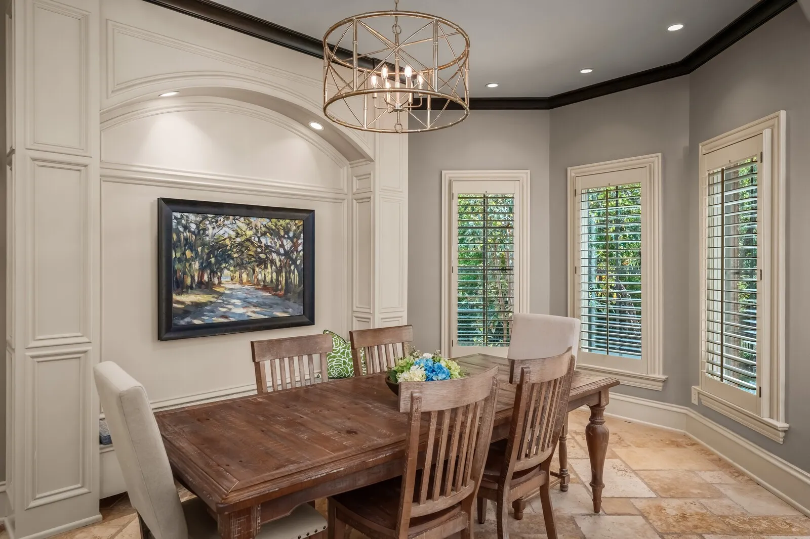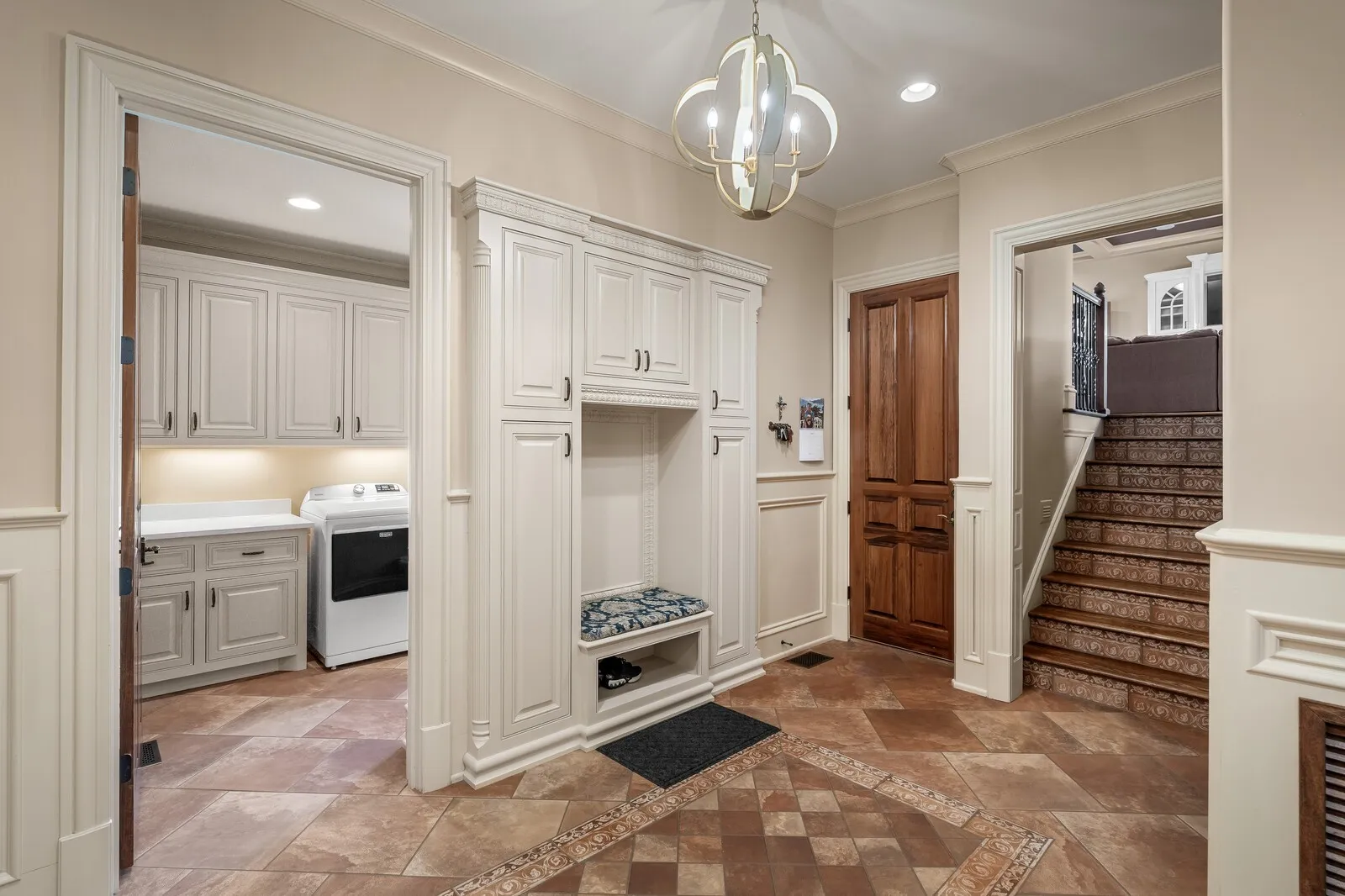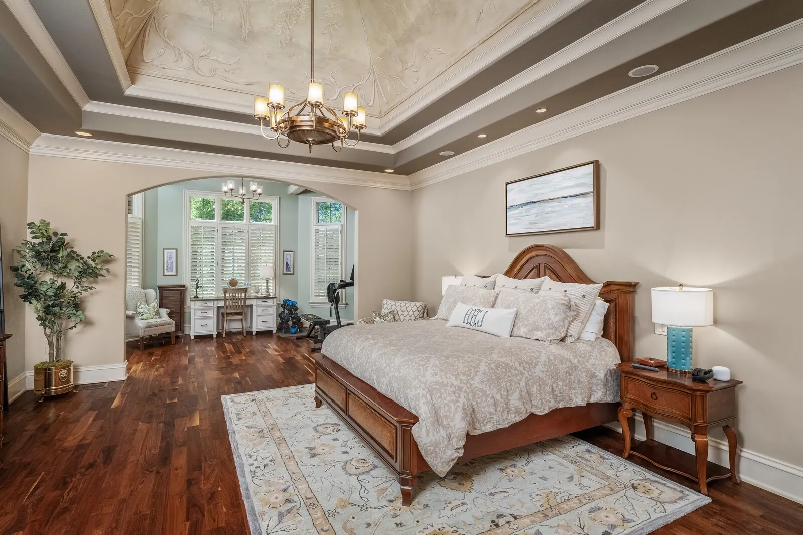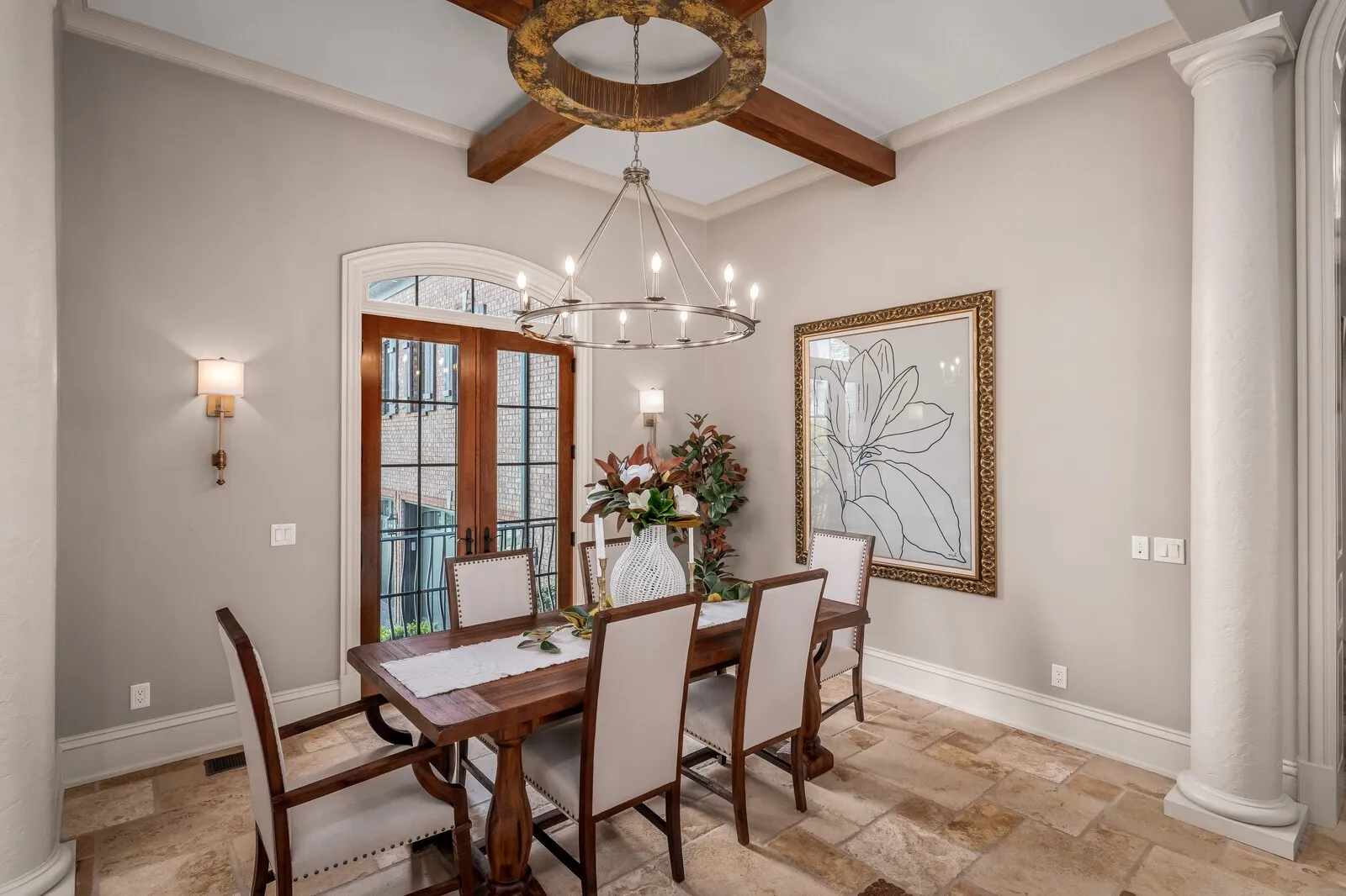 The home is further elevated by updated designer lighting on the main level, plantation shutters, and a cohesive, refined color palette throughout. Function meets luxury with a tankless water heater, new garage doors and system, epoxy-coated garage floors, and hardwood steps leading into the garage—every element thoughtfully curated.