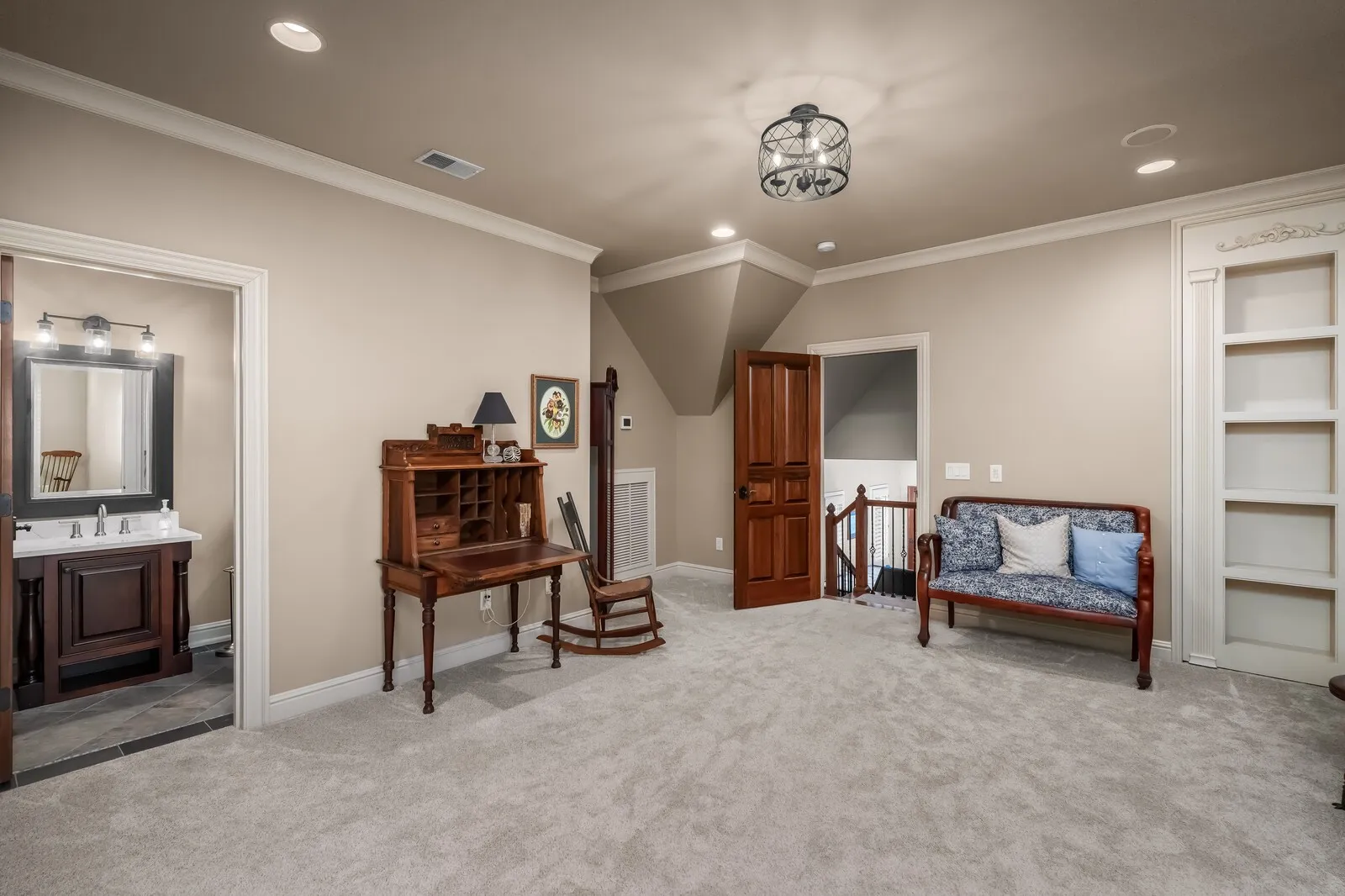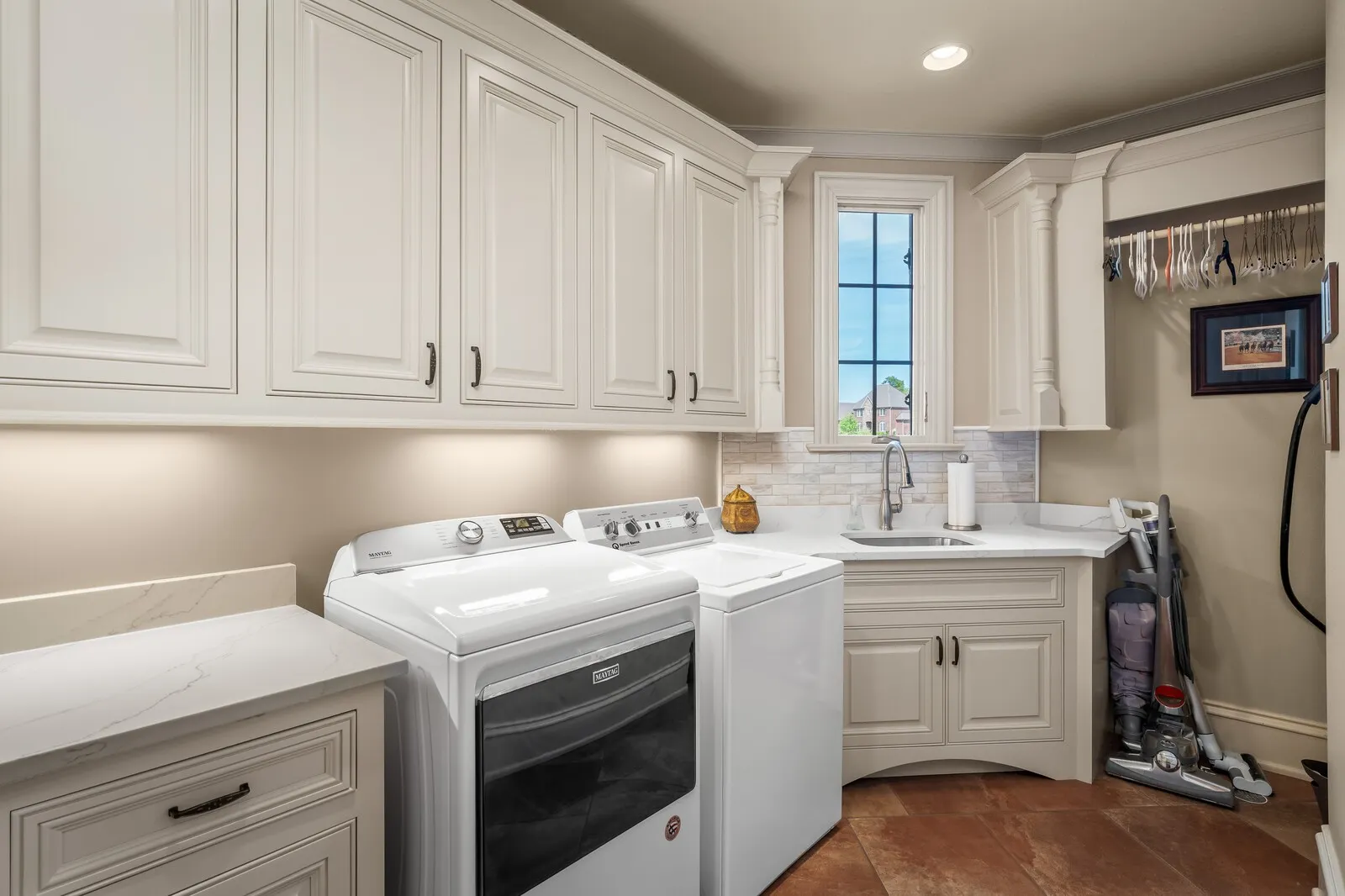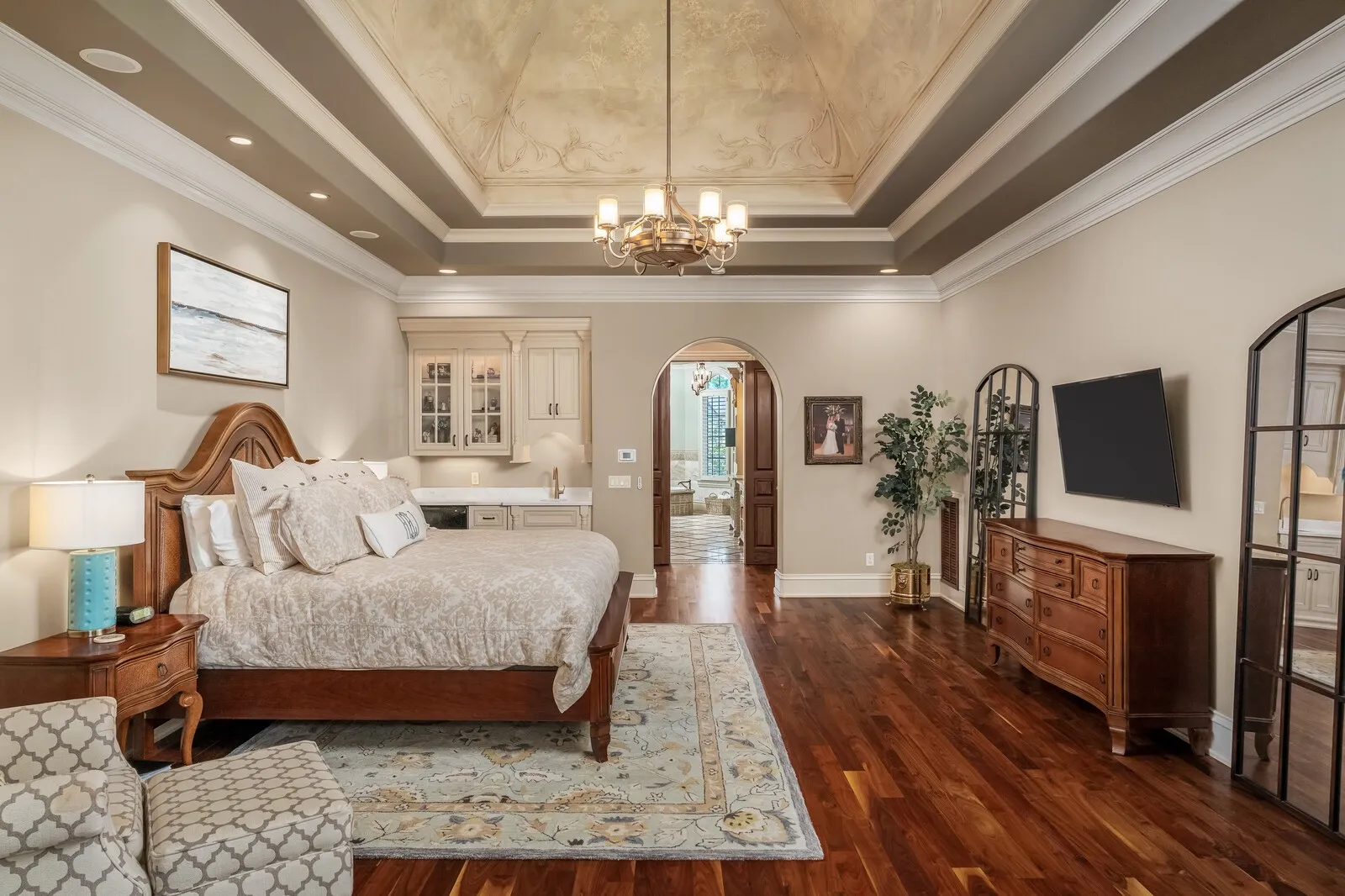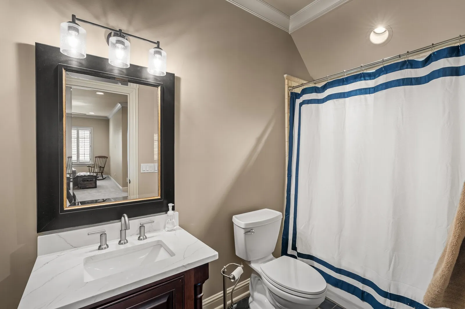 The home is further elevated by updated designer lighting on the main level, plantation shutters, and a cohesive, refined color palette throughout. Function meets luxury with a tankless water heater, new garage doors and system, epoxy-coated garage floors, and hardwood steps leading into the garage—every element thoughtfully curated.