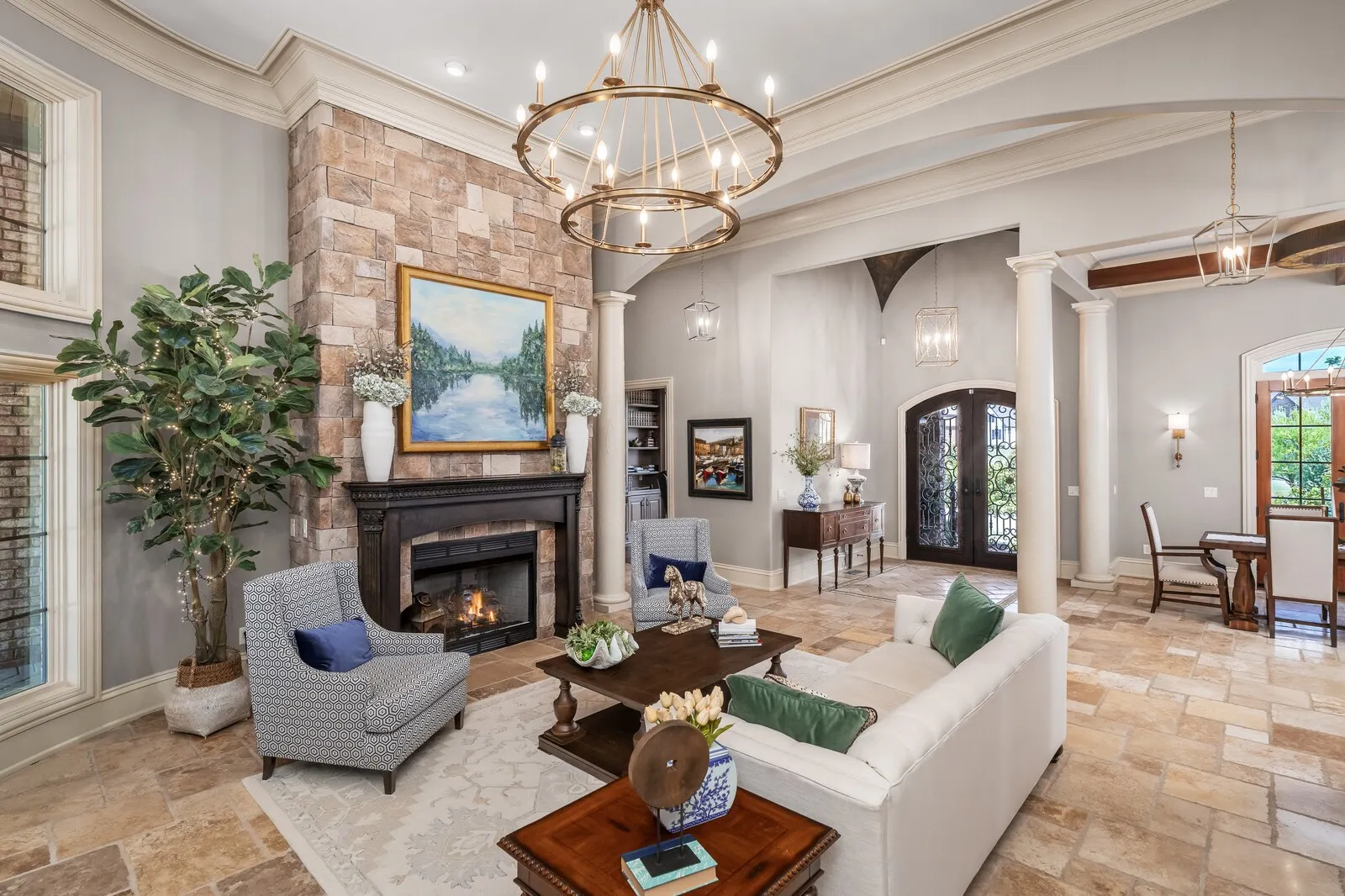 Designed for both grand entertaining and everyday living, the expansive layout flows effortlessly to an outdoor living oasis complete with a fully equipped outdoor kitchen, surrounded by lush new landscaping and sod—creating a private, resort-style retreat. This exceptional property offers the perfect combination of scale, sophistication, and modern convenience in one of Gallatin’s most sought-after gated communities.