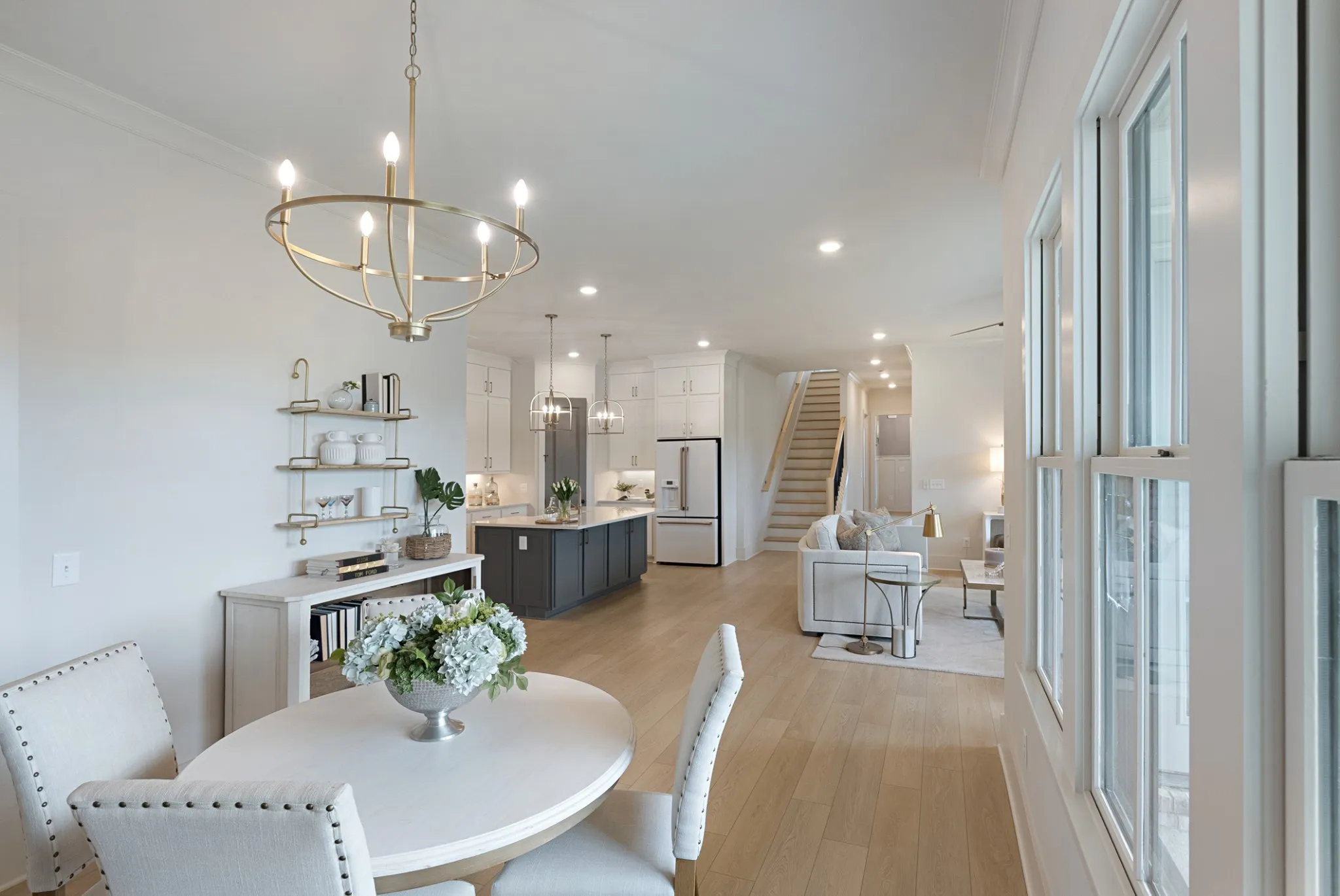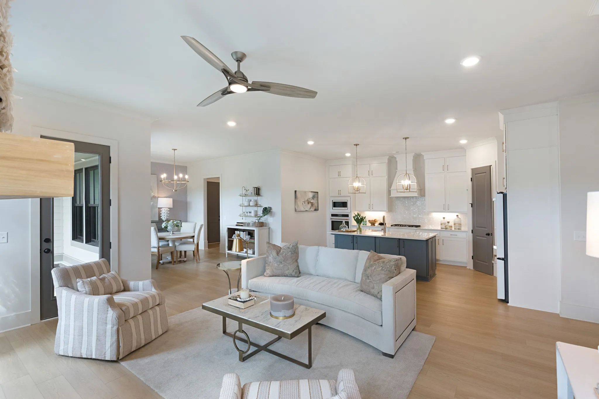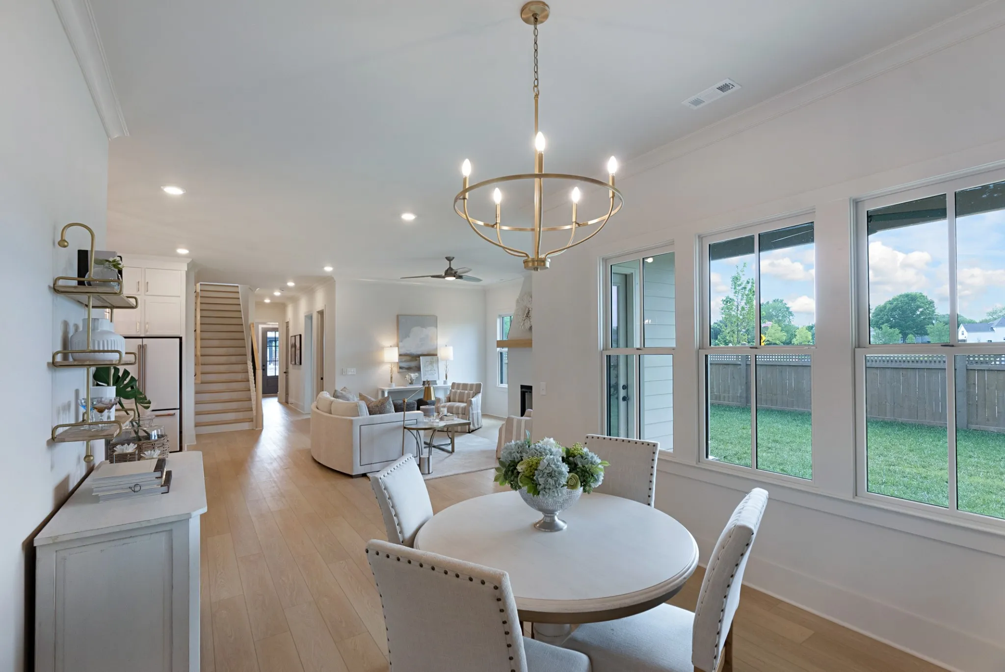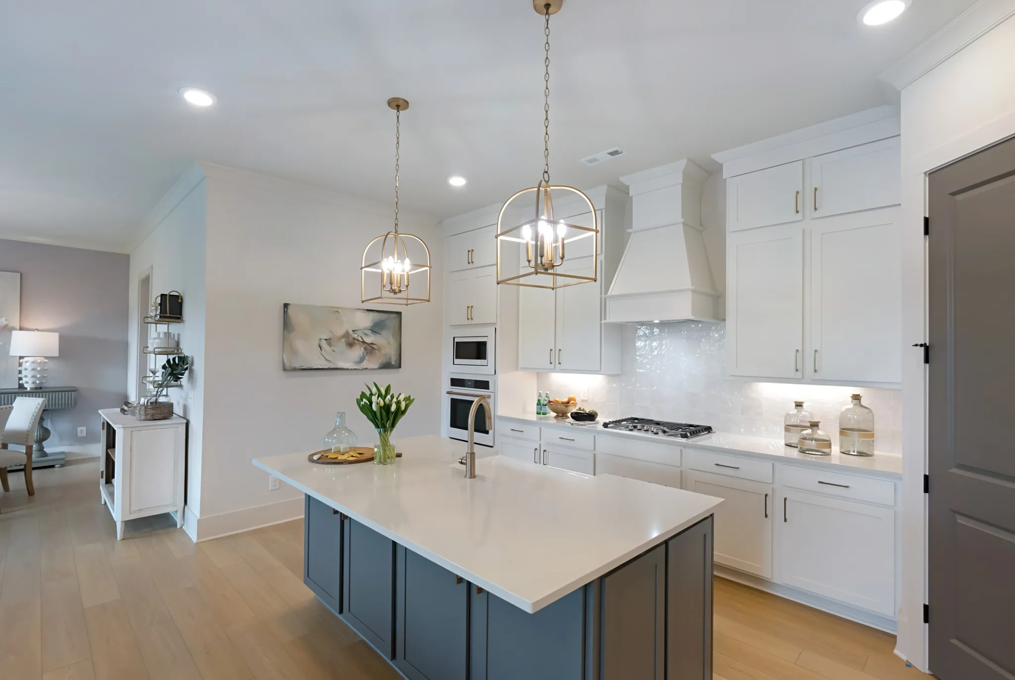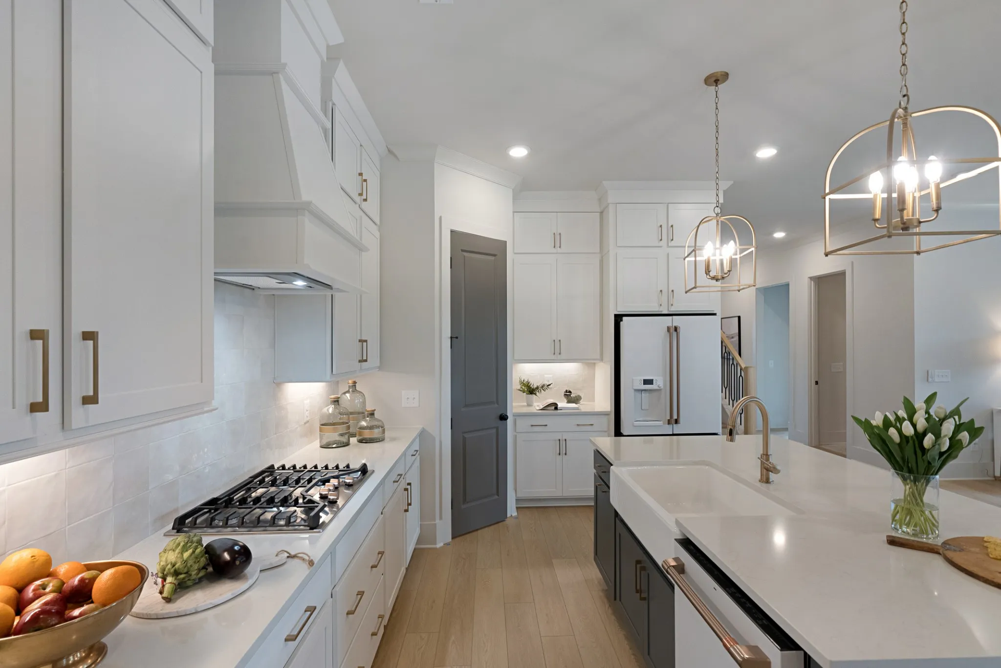 Discover luxury living in Williamson County’s most sought-after community, Saddlewalk at June Lake, with a MOVE-IN READY home! Step off your covered patio into your yard for a level, fenced-in oasis. The main level welcomes you with an elegant primary suite featuring a lavish free-standing tub and designer vanity, alongside a versatile secondary bedroom. Culinary dreams come true in the gourmet kitchen equipped with sleek quartz countertops, a high-end gas cooktop, wall oven, and an expansive island for gathering. Venture upstairs to find a spacious den perfect for relaxation or entertainment, accompanied by three additional bedrooms and two full baths, offering ample space for family and guests.