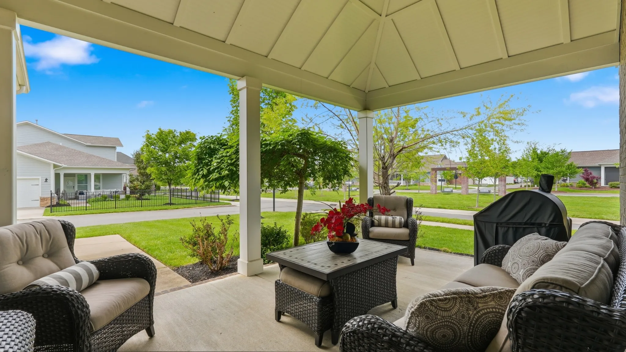 Step outside to enjoy an extended, fully flat front porch with no steps and a huge covered back patio with vaulted ceilings ideal for relaxing or entertaining. The yard is beautifully maintained with full irrigation on all four sides and offers the opportunity to fence for added privacy.