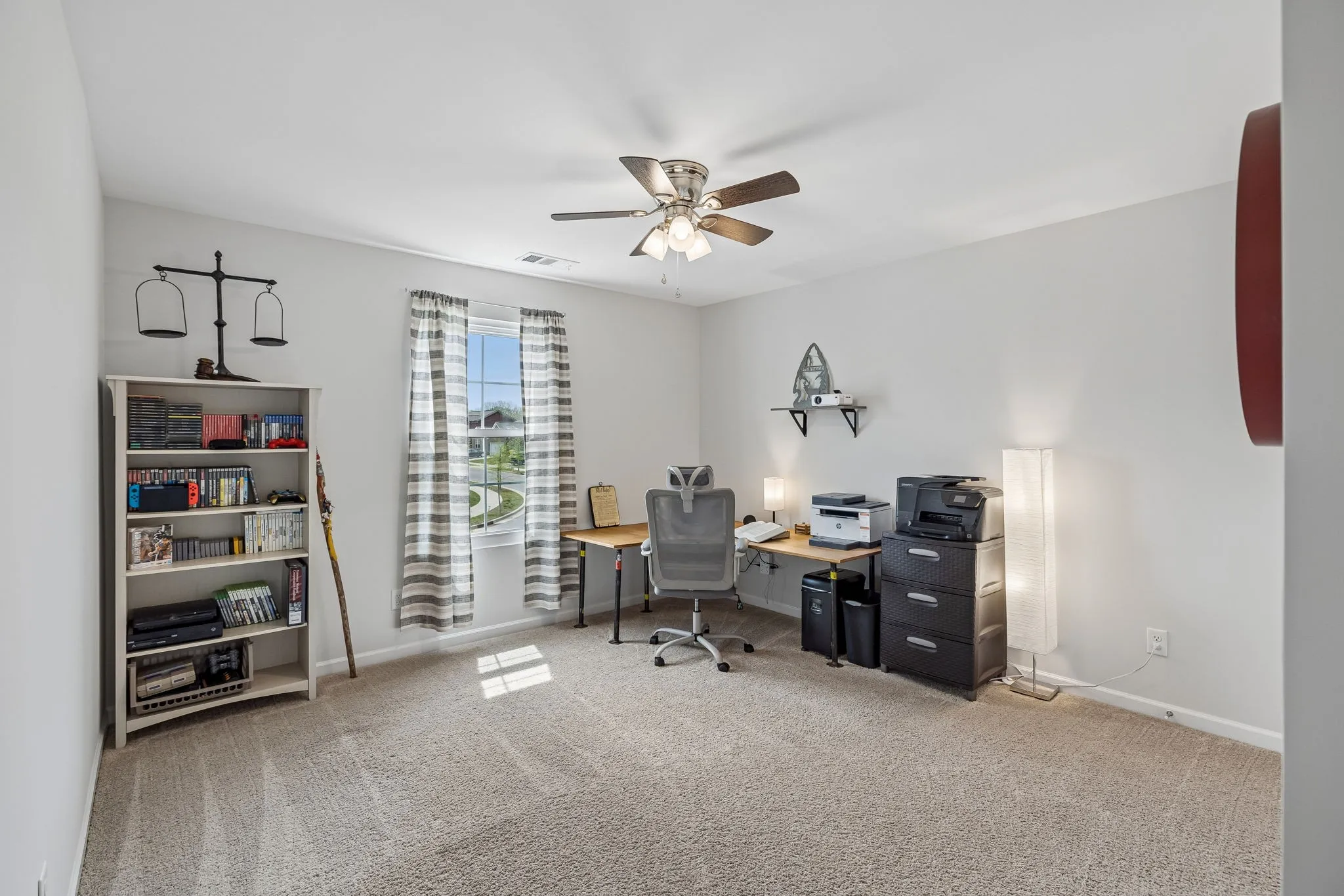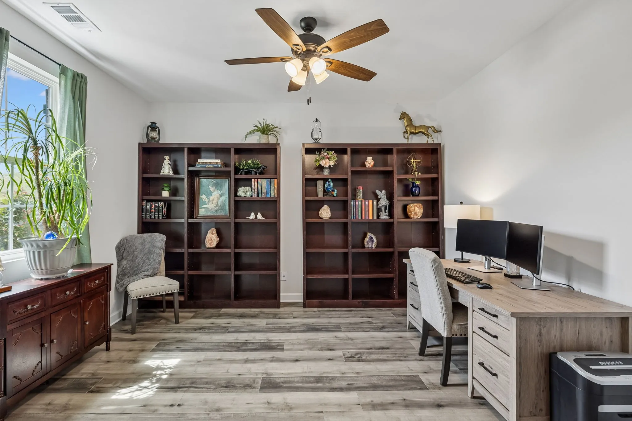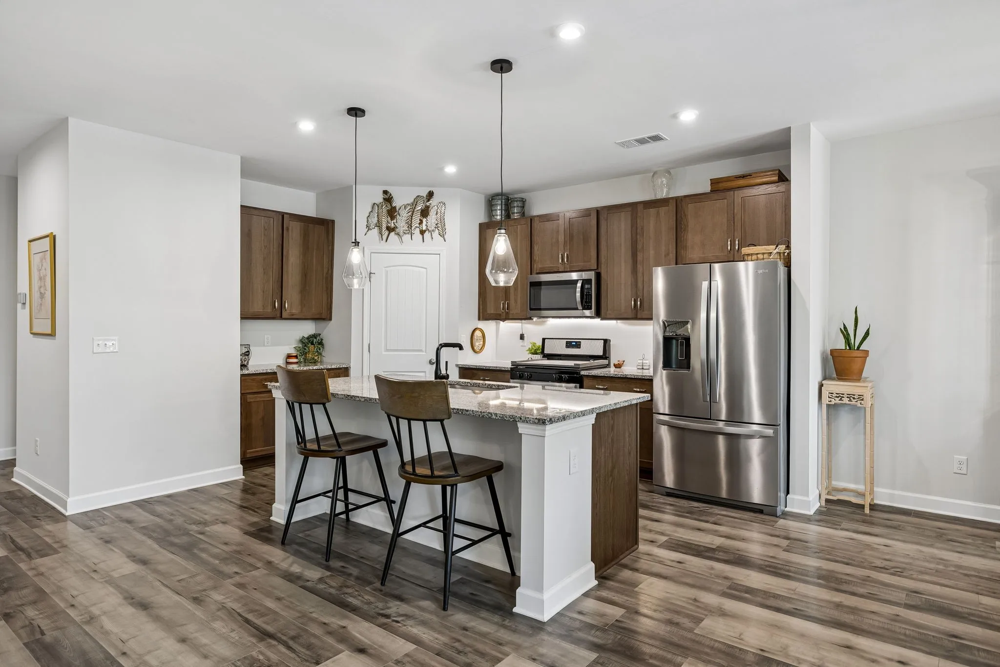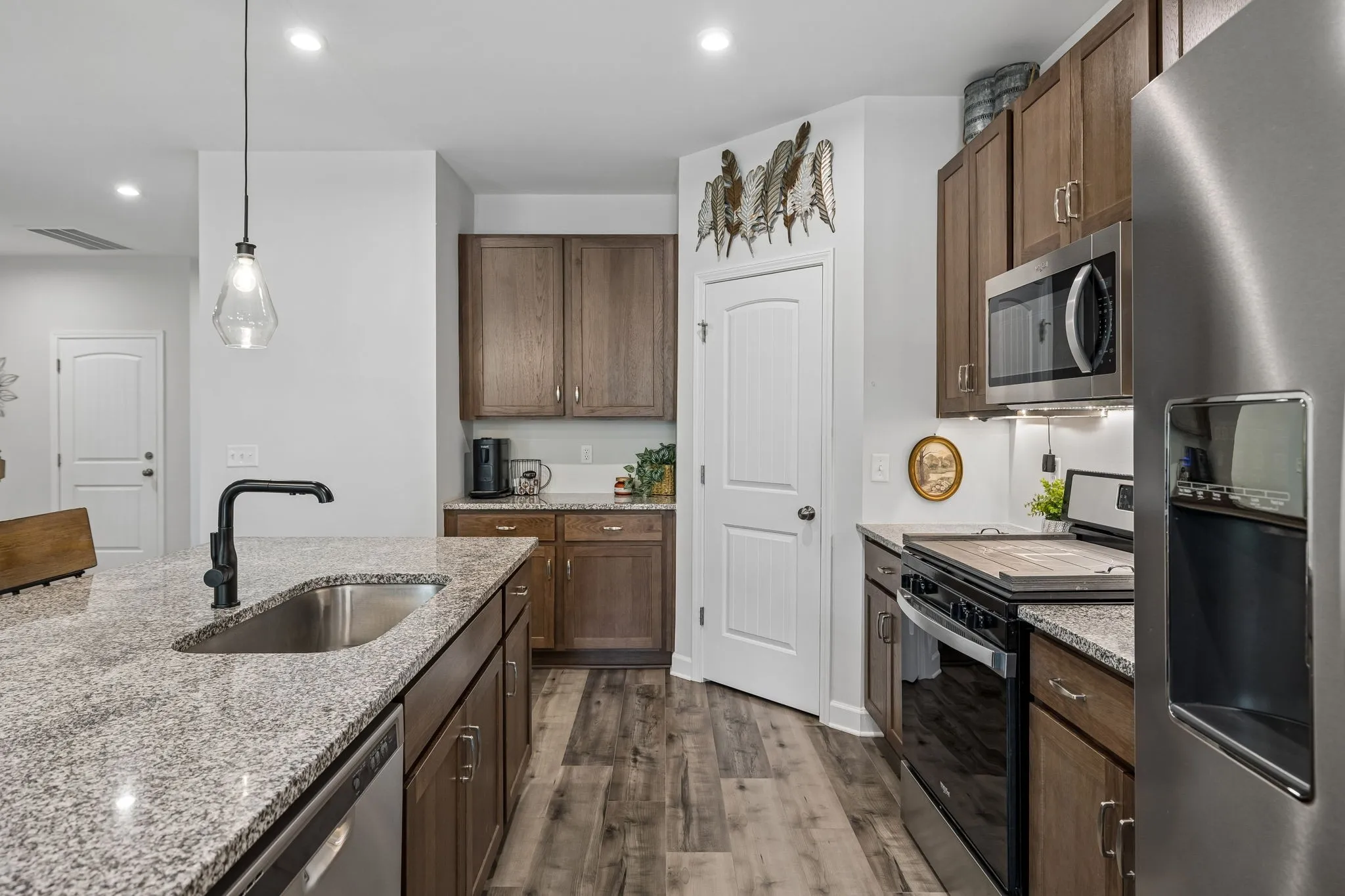 This spacious home features 4 bedrooms, 2.5 baths, complete with dedicated office space on the main level and a bonus room upstairs. The primary bedroom suite is located on the main level. Open concept floor plan is perfect for entertaining. The kitchen features granite countertops, stainless appliances, a huge island with seating, pantry, gas stove, and all appliances remain. Tons of closet space. Covered back patio with a fenced back yard. Tankless water heater, high speed internet, 2 car garage, this house has it all! This beautiful home is located in the sidewalk-lined Pennock Place subdivision. Washer & Dryer to remain.