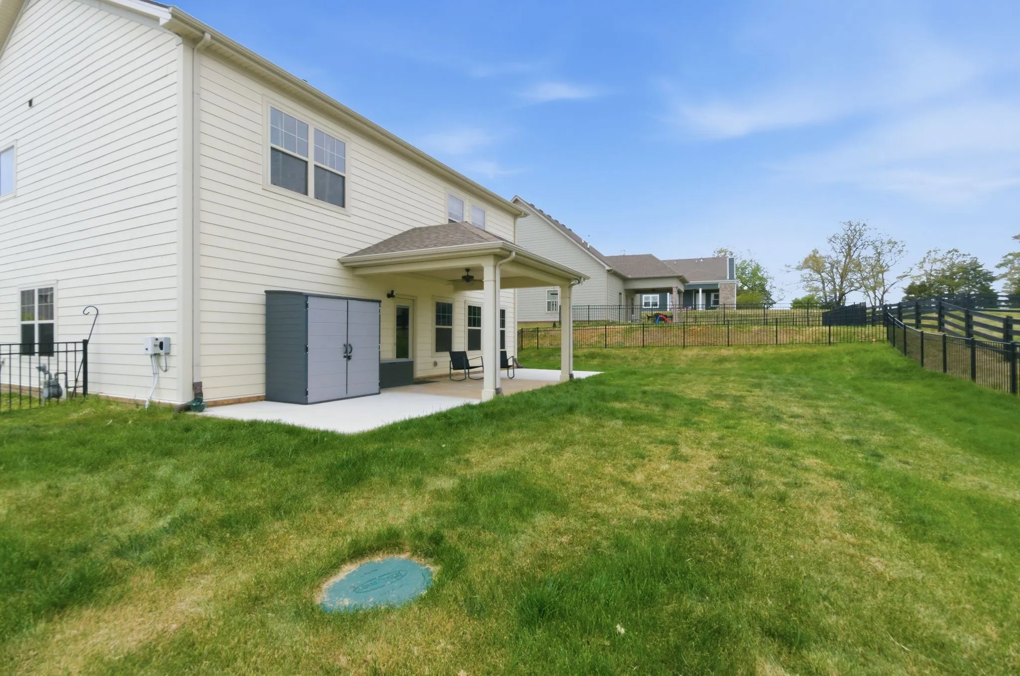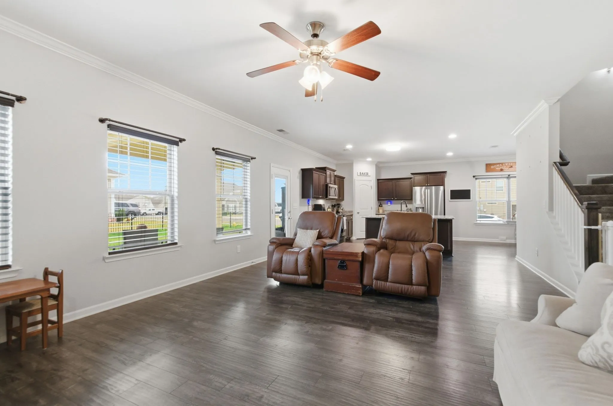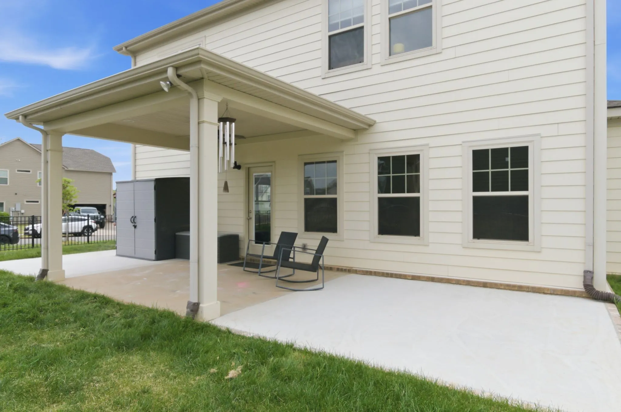 The home offers stylish and functional living with all window treatments remaining, plus a recently expanded driveway, (completed just 6 months ago)—perfect for extra parking or guests. Expansion on patio pad, backyard Frescue Sod, and new fence perfect for summer nights or barbecues. Smart living is made easy with an Apple Home security system that conveys with the home.