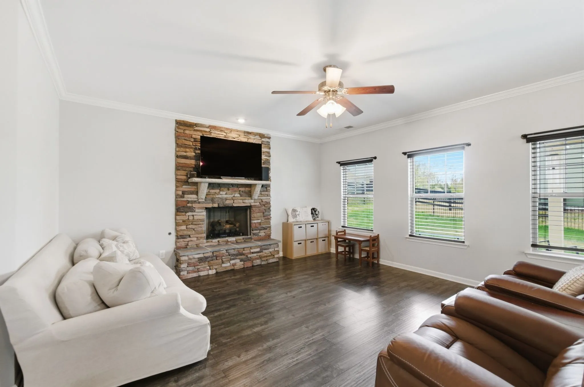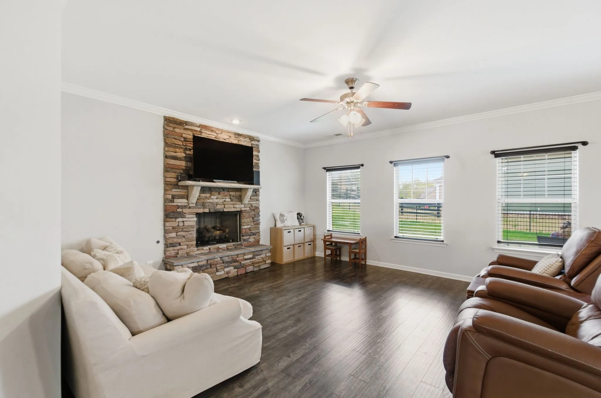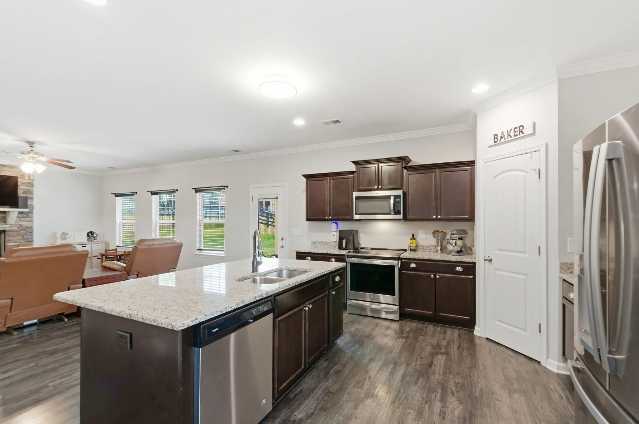 The home offers stylish and functional living with all window treatments remaining, plus a recently expanded driveway, (completed just 6 months ago)—perfect for extra parking or guests. Expansion on patio pad, backyard Frescue Sod, and new fence perfect for summer nights or barbecues. Smart living is made easy with an Apple Home security system that conveys with the home.