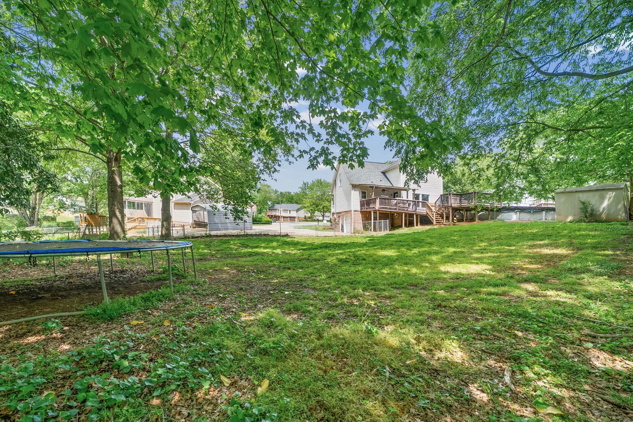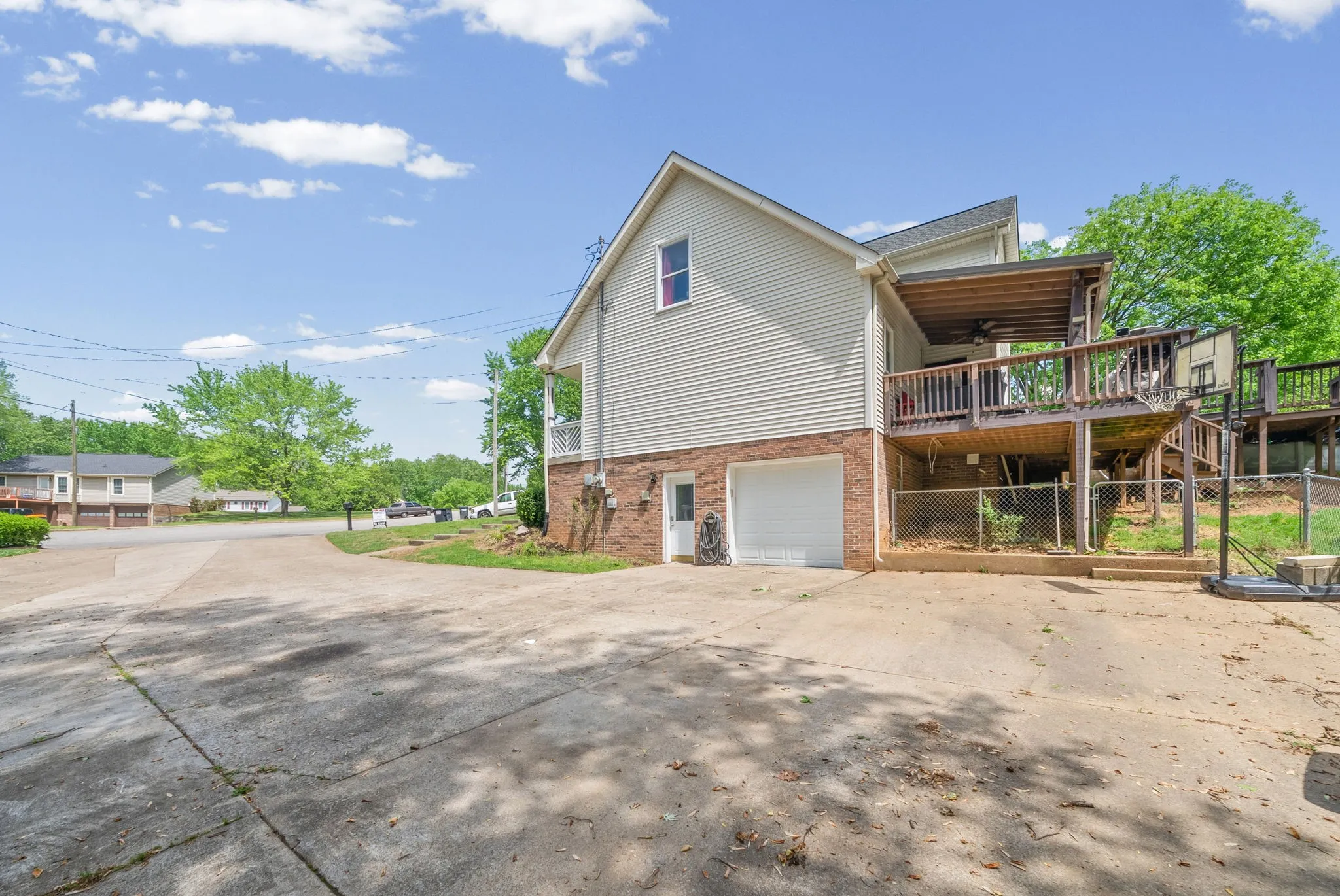 Located in a cul de sac, this home has a lot to offer! This home has a huge driveway. The fence line is where the shared driveway separates. Covered front porch freshly repainted. The living room has lots of space and a large bay window for natural sunlight. The huge eat in kitchen has updated appliances, tile flooring, island area perfect for stool chairs. Eat in kitchen has plenty of space for a dining room table. Downstairs bedroom is spacious with a huge walk in closet. Full bathroom downstairs with double vanities. The large top right bedroom has a huge closet that extends from wall to wall. The spacious 3rd bedroom also has a huge walk in closet. Upstairs bathroom has a tub/shower combo and a huge single vanity. Situated closest to the bathroom, this 4th bedroom is also spacious with a large closet. Another linen closet in the hallway. Going to the basement, there’s more room! Freshly painted stairs leads down to other rooms that could be used as bedrooms. The room to the left has an exterior door and is connected to the garage. Across the way is another room that could serve as a 5th bedroom. Opening this door leads to the area where the water heater is and can be used as a storage room. There is a one car garage that is used now for storage. The covered deck is huge with a huge fenced in backyard and an above ground pool plus 2 sheds! Must see for yourself! Close to post, the mall, downtown, and not too far from the interstate, this home is situated in a convenient location!
