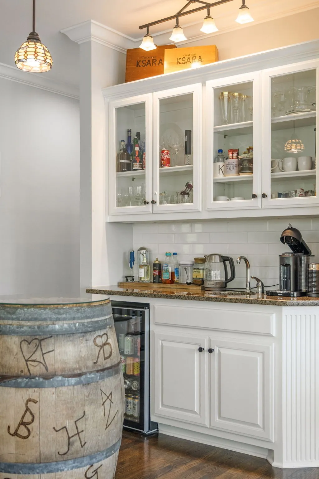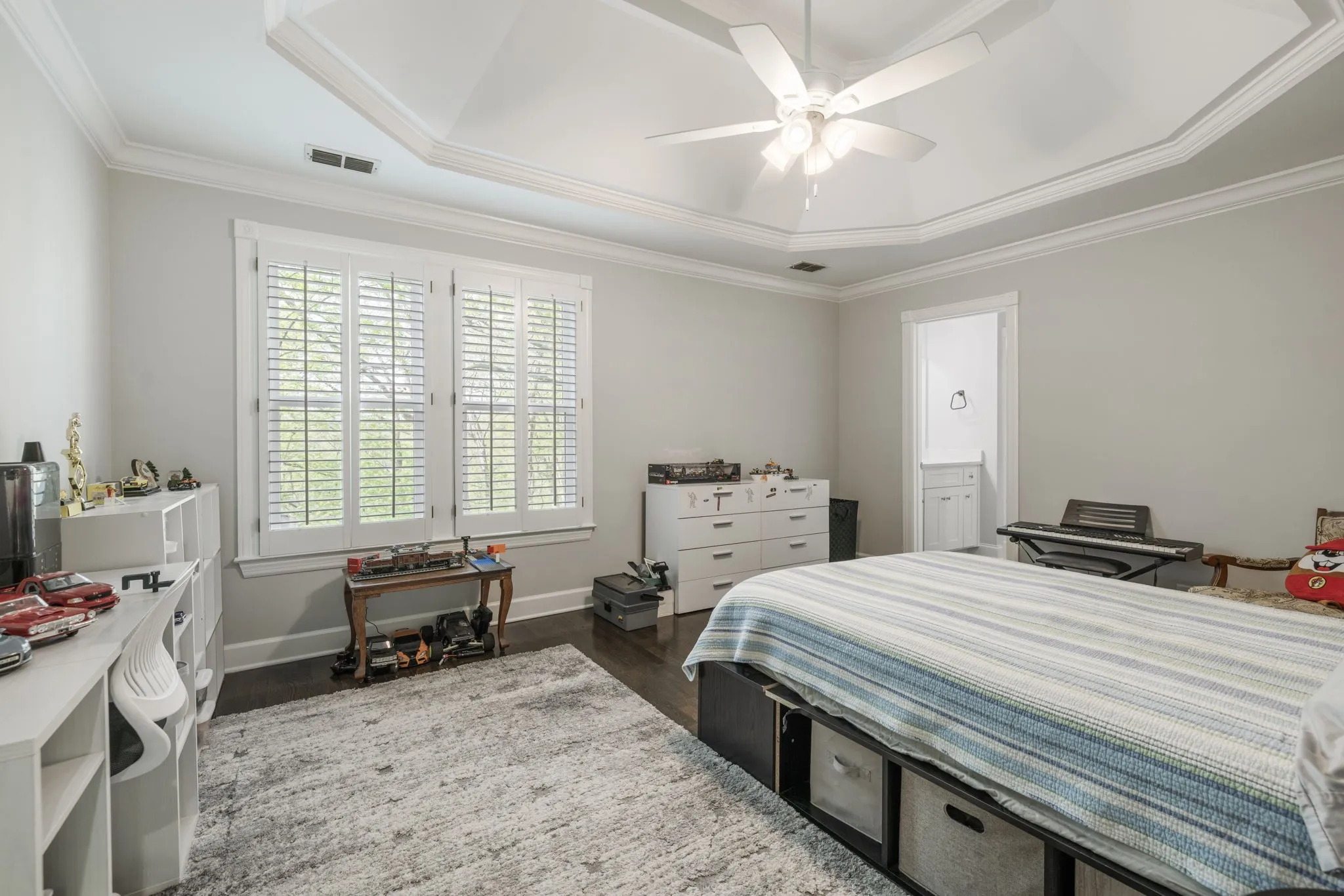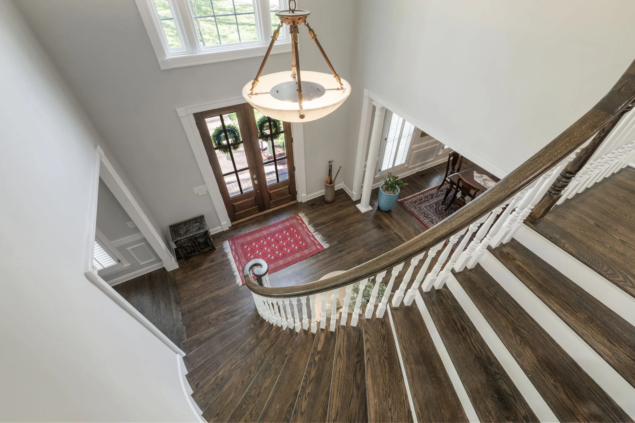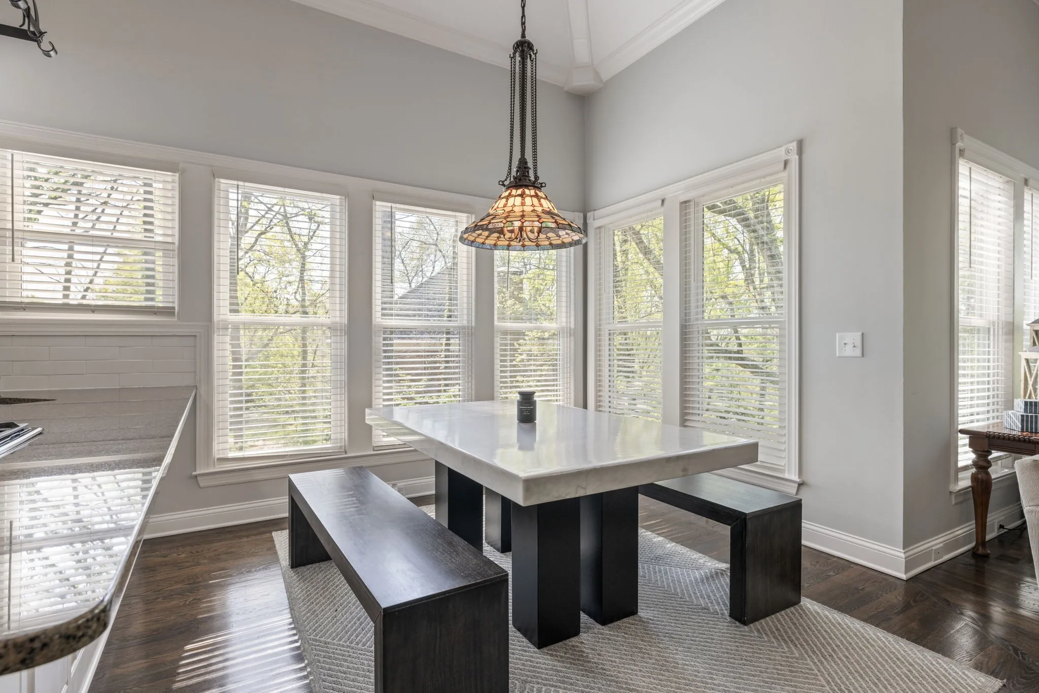 Step inside to a grand two-story foyer flanked by a formal dining room and elegant living room, all accented by rich hardwood floors and classic plantation shutters throughout the main living spaces. Designed with both everyday living and entertaining in mind, this home offers an abundance of flexible living areas, including a spacious den with custom bookcases and a cozy fireplace, plus an inviting eat-in kitchen with a breakfast nook, wet bar, and premium JennAir and GE appliances.