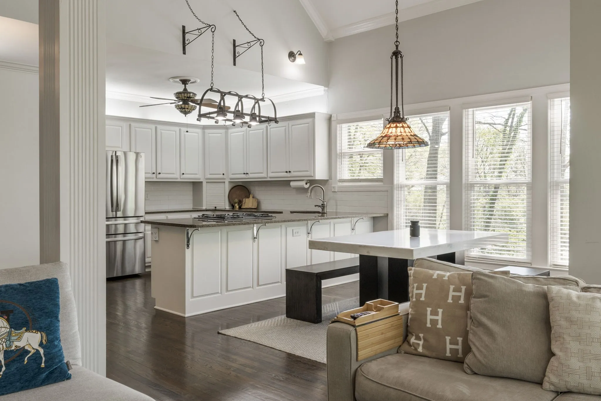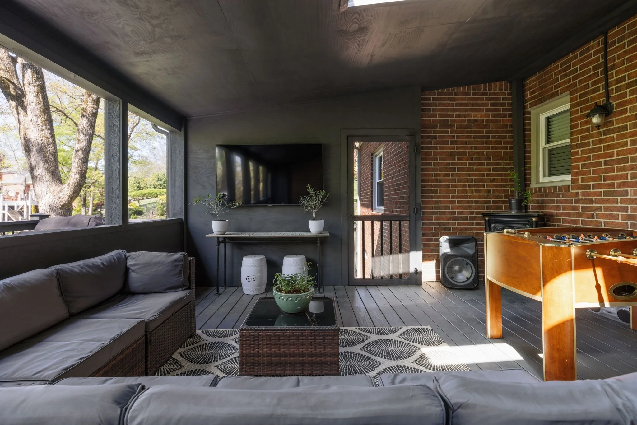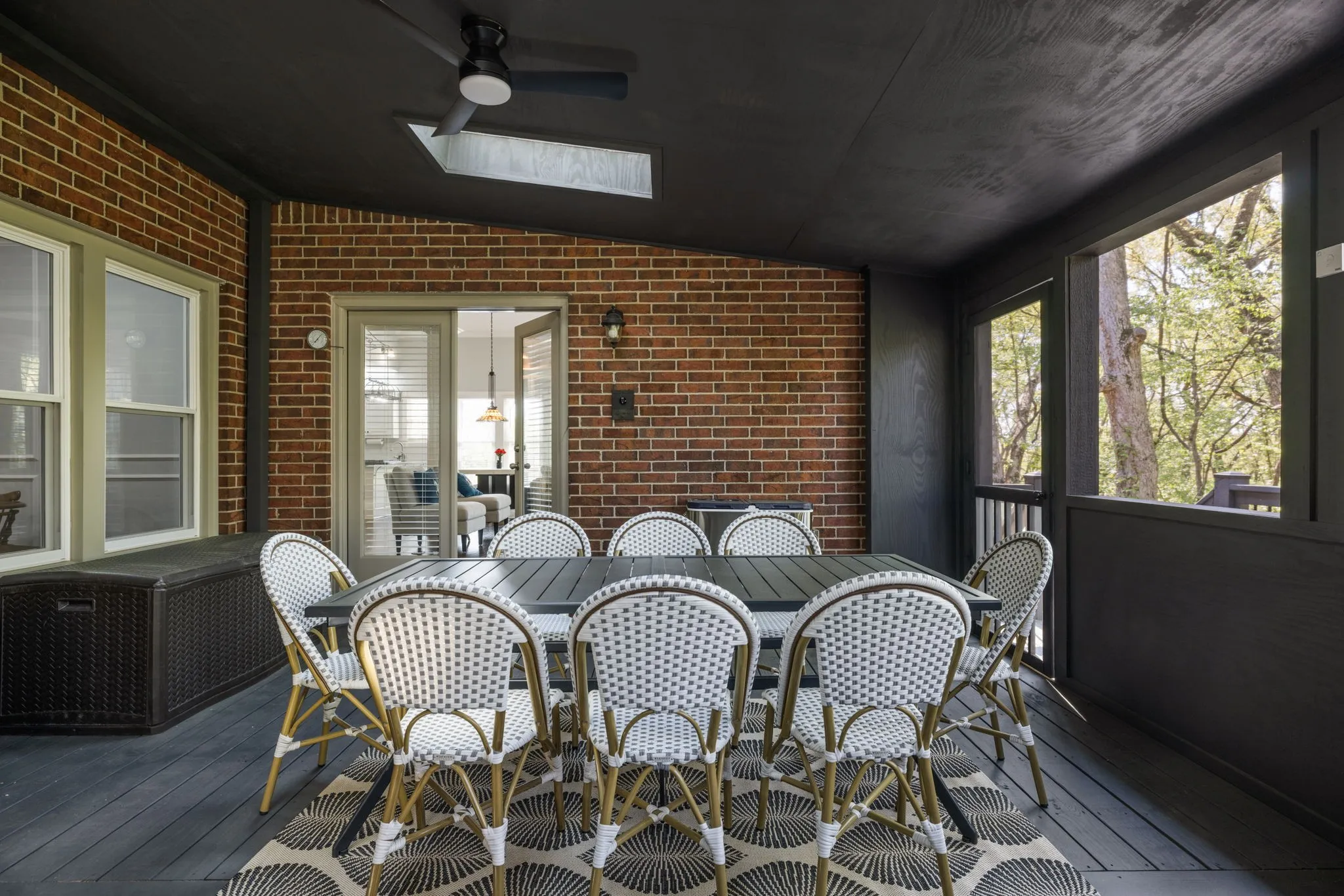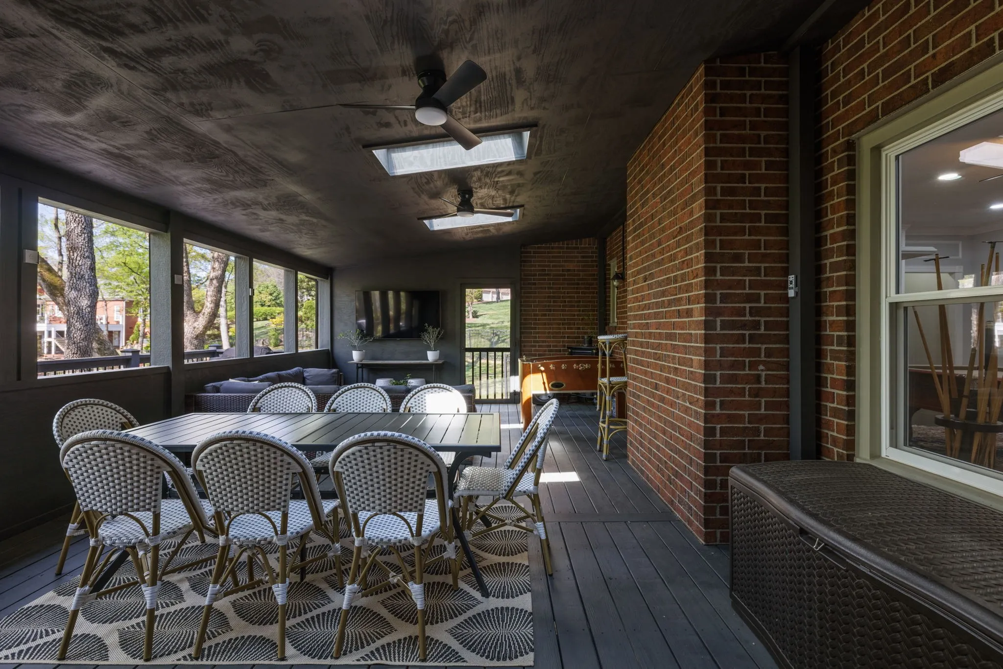 Outdoor living is just as impressive, with a screened-in deck featuring skylights, an additional uncovered deck, and a serene backyard surrounded by mature trees—ideal for relaxing or entertaining year-round.