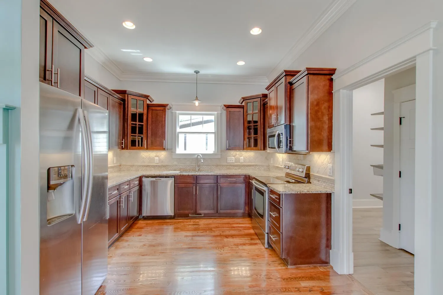 STUNNING 4 bedroom home with 2.5 Bathrooms, vaulted ceilings, lots of natural light, hardwoods, granite counters, ample cabinets, covered front porch, spacious pantry, nicely sized primary bedroom w/ huge walk-in closet and soaking tub, covered front porch, fenced in yard.