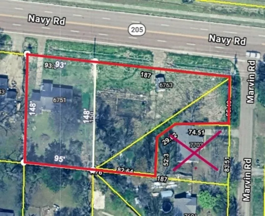 - Directions: Traveling W on Navy Rd, the house & lots are on the right.