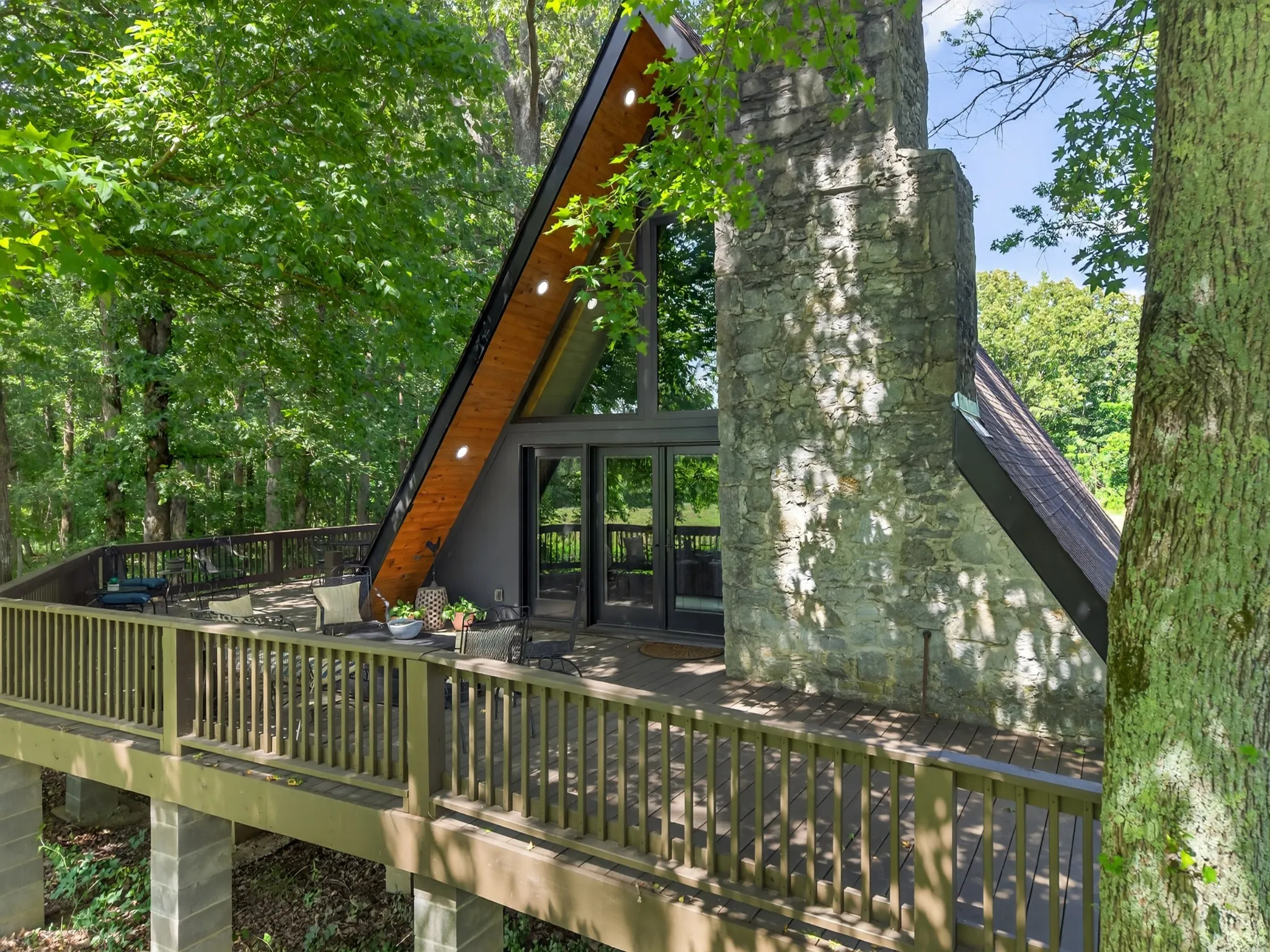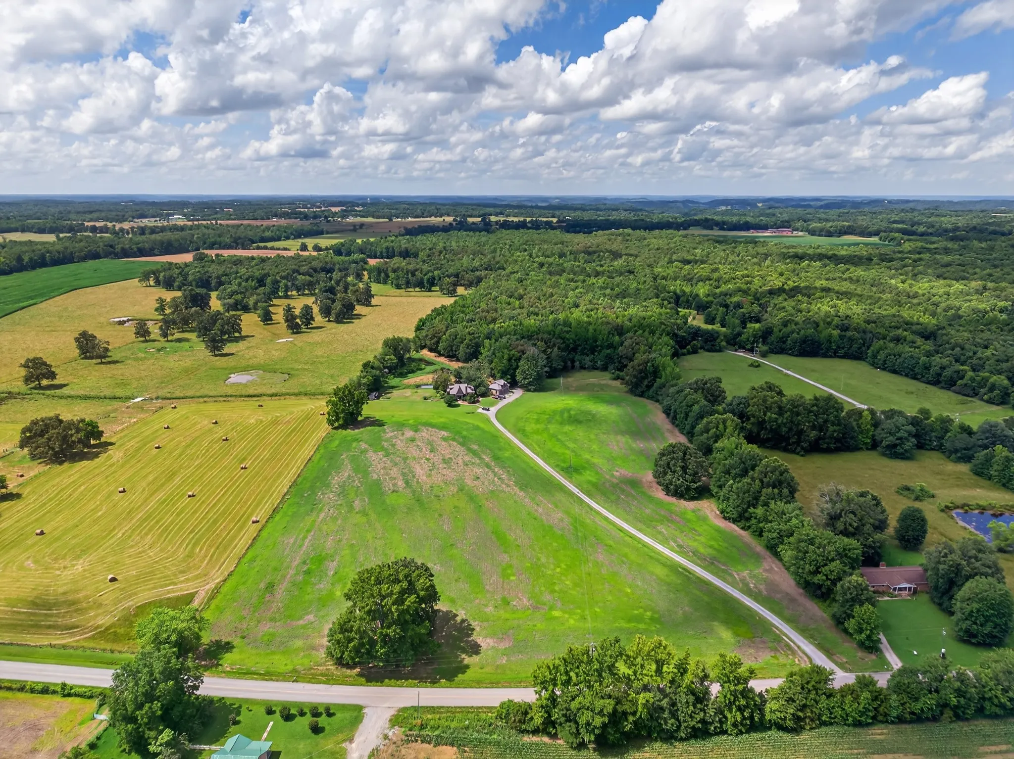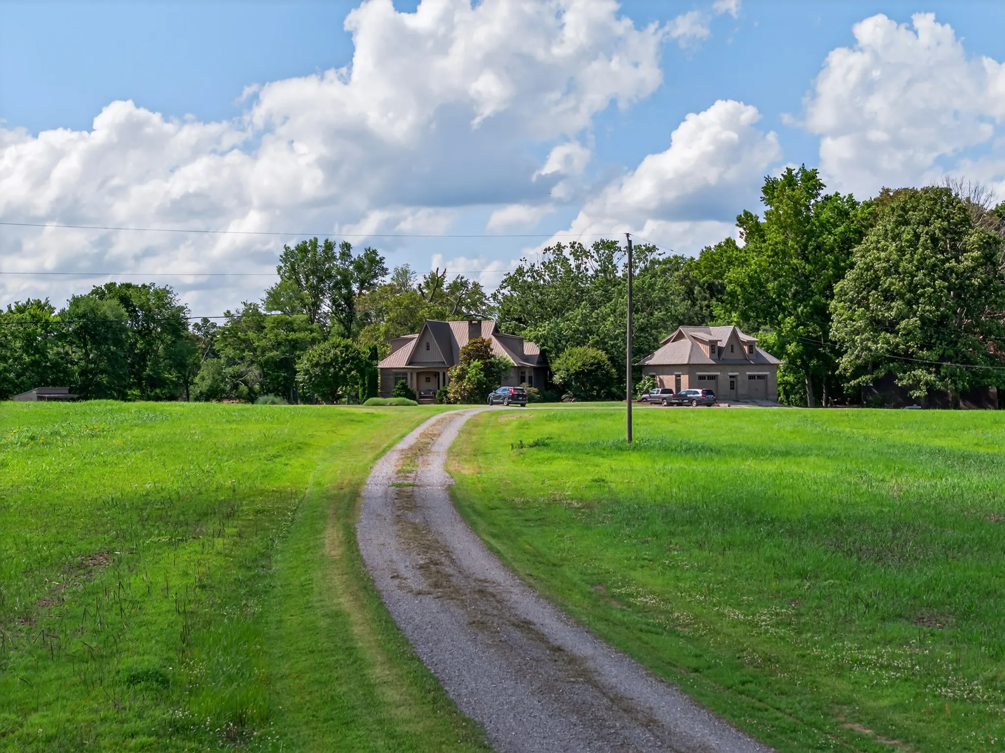 Unbelievably beautiful and private 38-acre property located in scenic Southern Middle Tennessee, offering an ideal setting for multi-family living, homesteading, or simply enjoying country serenity with convenience to Fayetteville, Huntsville, and Redstone Arsenal. The custom-built primary home features over 2,200 sq ft of well-designed living space with high-end finishes throughout. Enjoy an open-concept kitchen with granite countertops, gas cooktop, and spacious dining area that flows seamlessly to a massive screened-in back porch overlooking a tranquil pond—perfect for relaxing or entertaining. A detached two-car garage has been thoughtfully built with studio apartment complete with a full-size bedroom, full bath, office area, and kitchen—ideal for guests, or extended family. Also on the property is a charming A-frame stone cottage that has been lovingly restored and features exposed wood beams, hardwood floors, a cozy fireplace, three bedrooms, two full baths, a loft, and a wraparound deck that invites outdoor living. This one-of-a-kind property offers endless potential with 3 separate living quarters! Truly a magical setting. The stone cottage is straight out of a Fairytale!