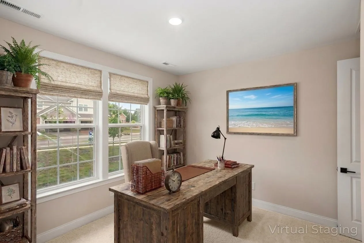 Upstairs, a flexible loft offers space for work, play, or relaxation. The primary suite includes a spa‑inspired bath and expansive walk‑in closet, while secondary bedrooms offer generous storage. Additional conveniences include a second‑floor laundry, tankless water system, Energy Star appliances, and a two‑car garage.