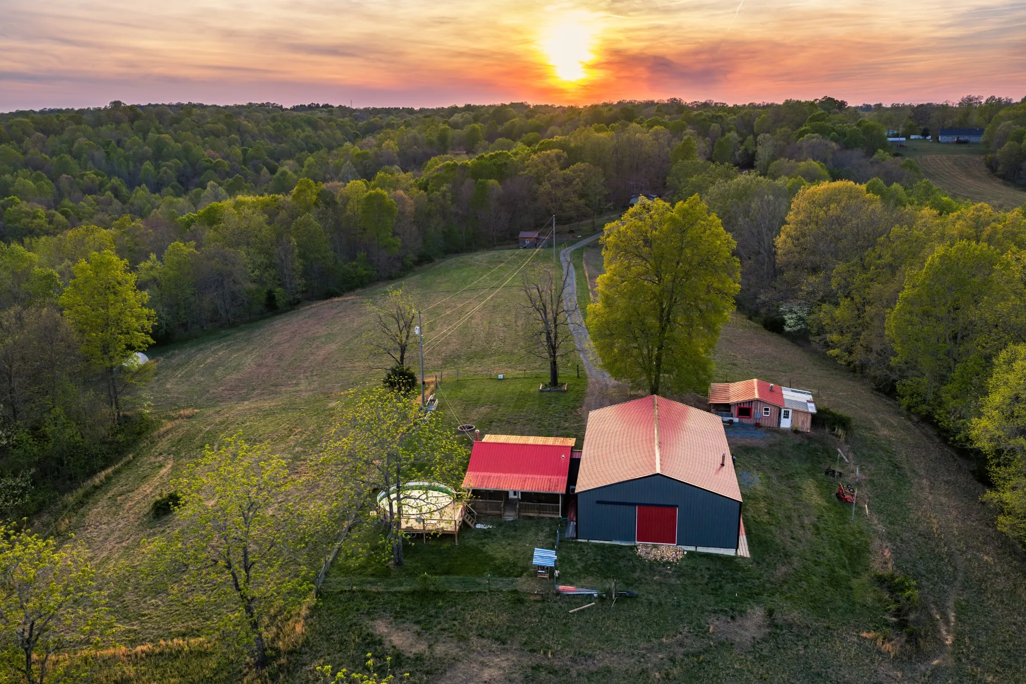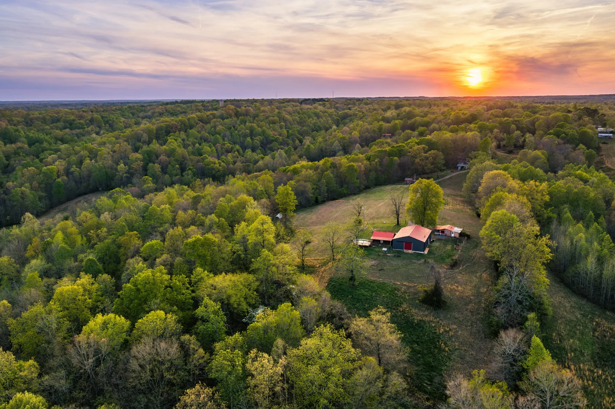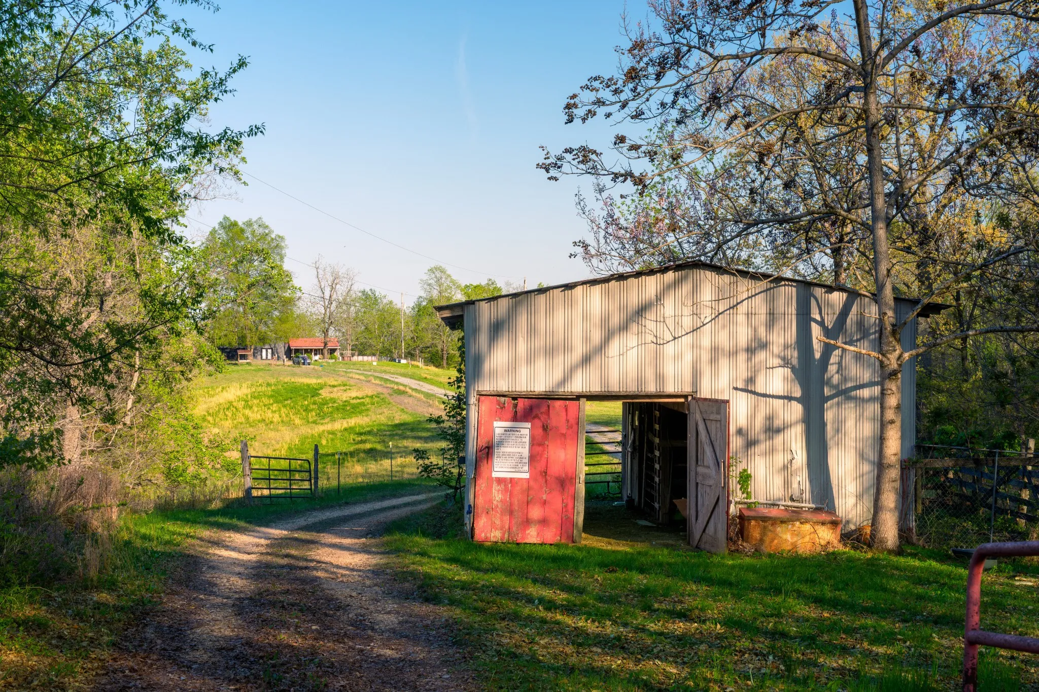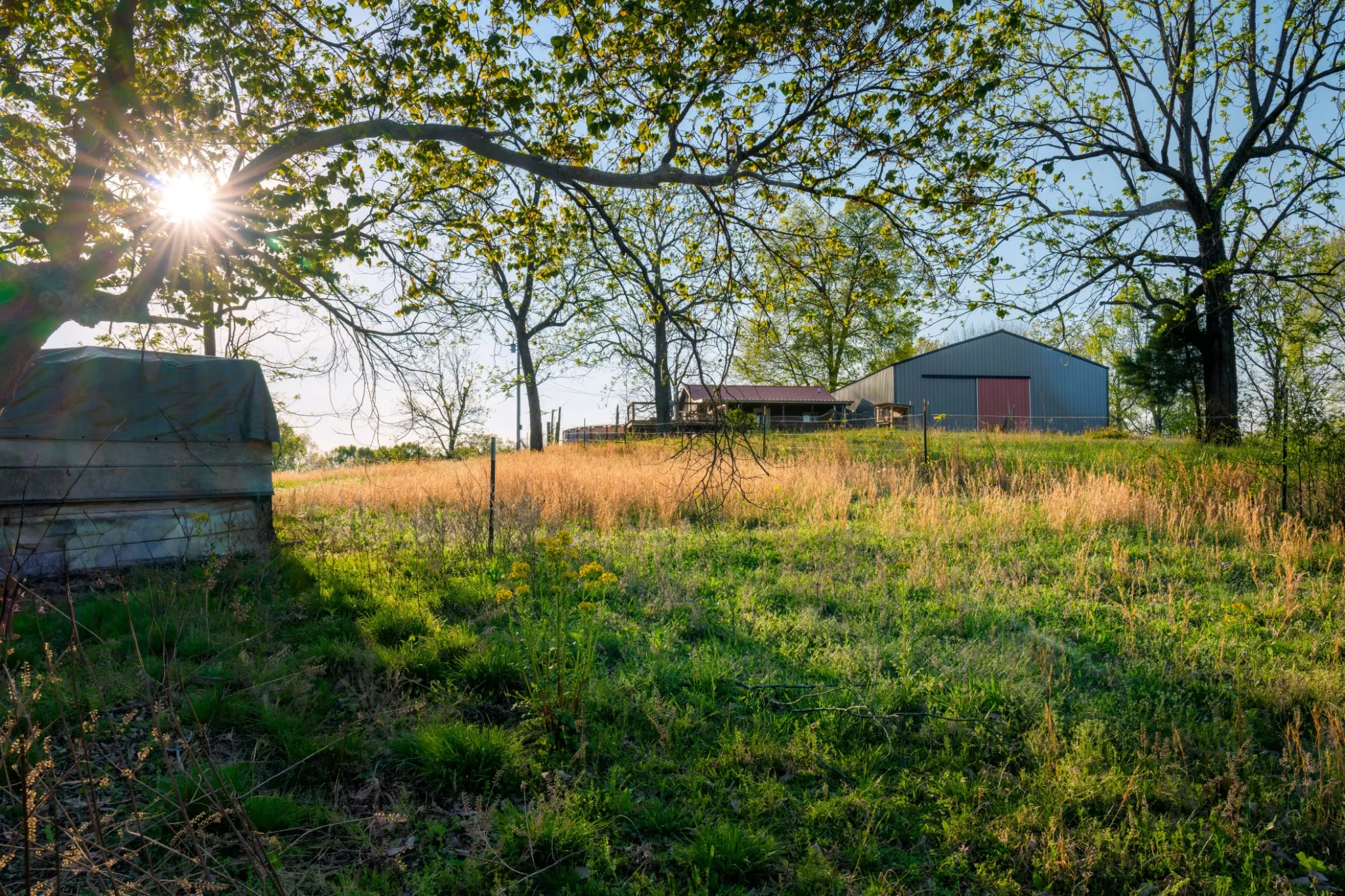 Discover the perfect blend of rustic charm and functionality on this beautiful 91-acre countryside property. Sugar Creek Farm features a cozy main home accompanied by a 60’ x 40’ shop with living quarters, plus a separate party barn/guest house, creating a versatile setup ideal for everyday living, entertaining, or multi-use recreation.