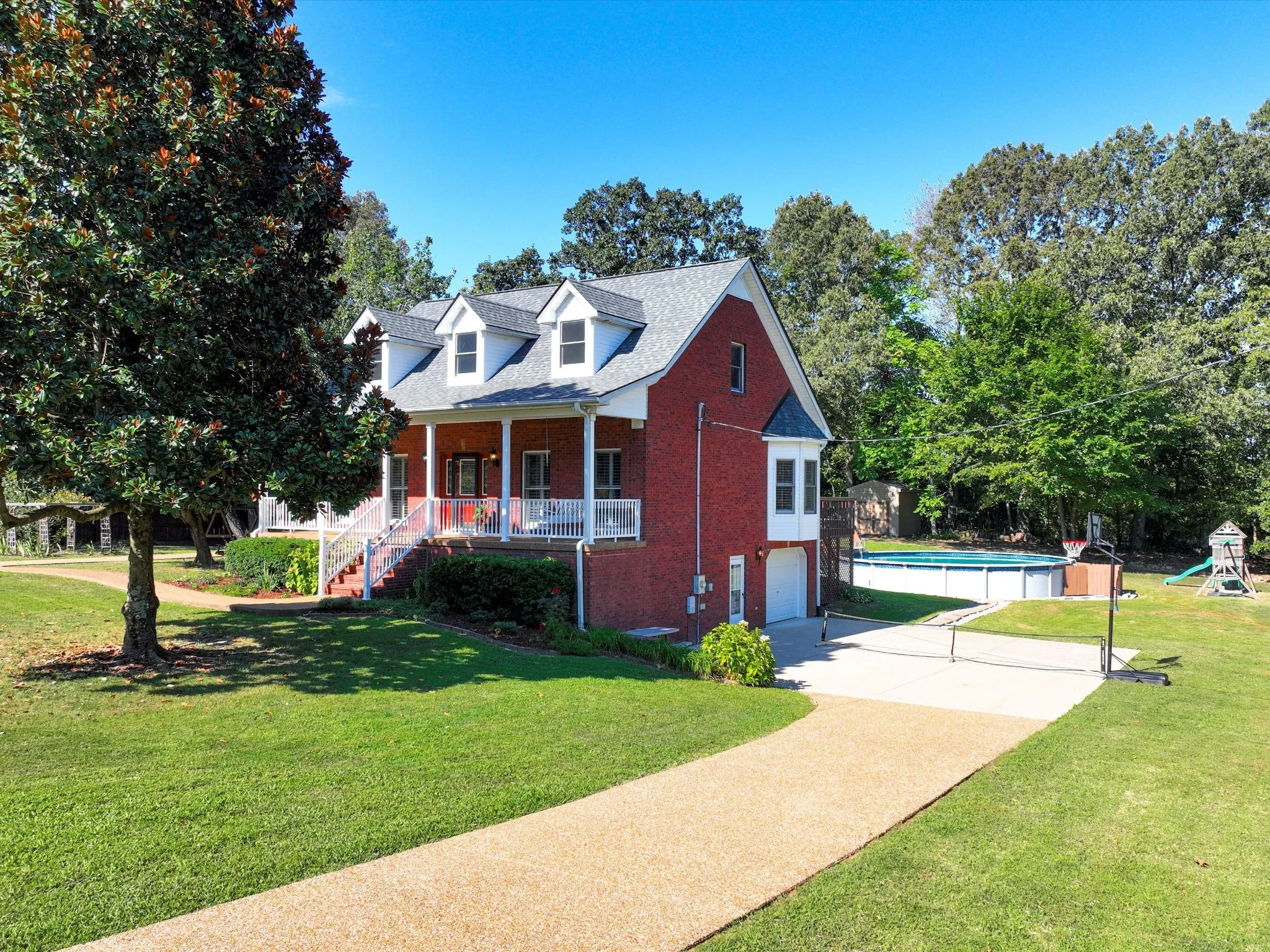 Welcome to 9725 Dogwood Drive, a serene retreat tucked away in the quiet countryside of Bon Aqua, TN. Offering the perfect blend of comfort and modern convenience, this home provides an inviting escape while still keeping you close to Dickson, Fairview, Nashville, and major highways for an easy commute. Nestled on a wooded lot, the property offers mature landscaping, fruit trees, and open space creating an ideal backdrop for everyday living, entertaining, or weekend relaxation. Inside, this all-brick home features 4 spacious bedrooms and 4.5 bathrooms, thoughtfully designed for both comfort and functionality. The welcoming living room is ideal for gatherings, while the kitchen is equipped with stainless steel appliances, ample cabinetry, and expansive countertops that make meal prep and casual dining a pleasure. The primary suite serves as a private retreat with walk-in closets and spa-like bath. Additional bedrooms provide flexibility for family, guests, or office use, while the bonus area above the garage is perfect for a teen suite, guest quarters, or hobby room. An 855-square-foot basement with its own private driveway and garage bay expands the living space even further. This versatile level is ideal for a teen hangout, recreational room, theater, in-law suite, gym, workshop, or even a potential short-term rental opportunity. Outdoors, the property continues to impress. A covered front porch welcomes you each morning, while the back deck overlooks a sparkling pool and lush landscaping—perfect for grilling, entertaining, or simply unwinding in your private oasis. The spacious yard, framed by mature trees, provides room for gardening, play, or future additions such as a fire pit, workshop, or detached garage. Whether you’re planting roots, downsizing, or seeking a peaceful country escape, 9725 Dogwood Drive offers a rare combination of space, versatility, and natural beauty. Schedule your private showing today and see why it’s one of Bon Aqua’s hidden gems.