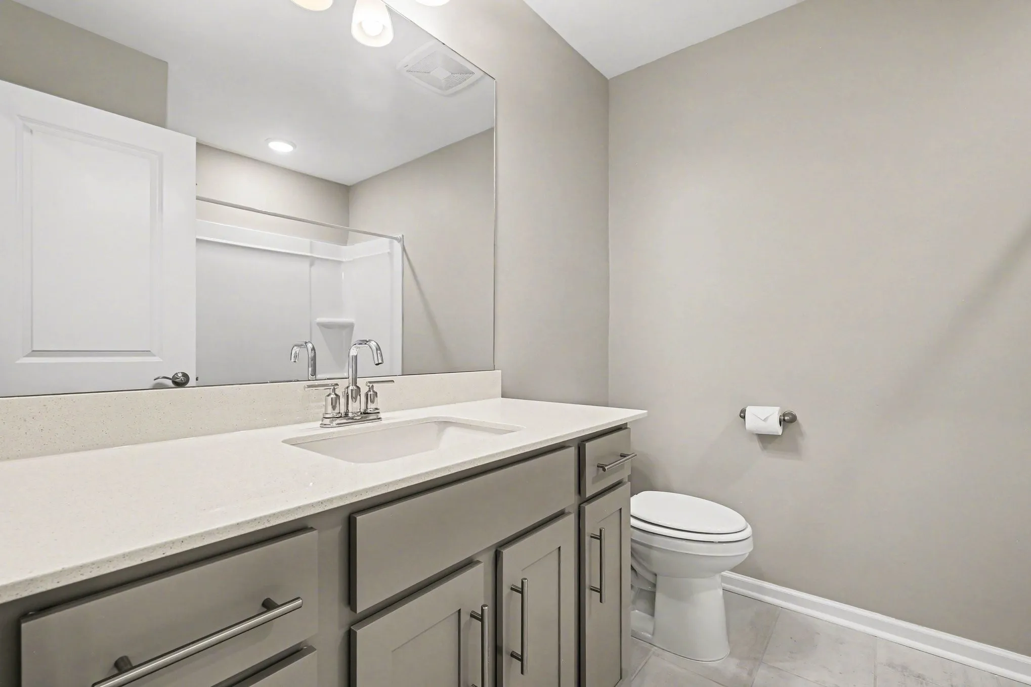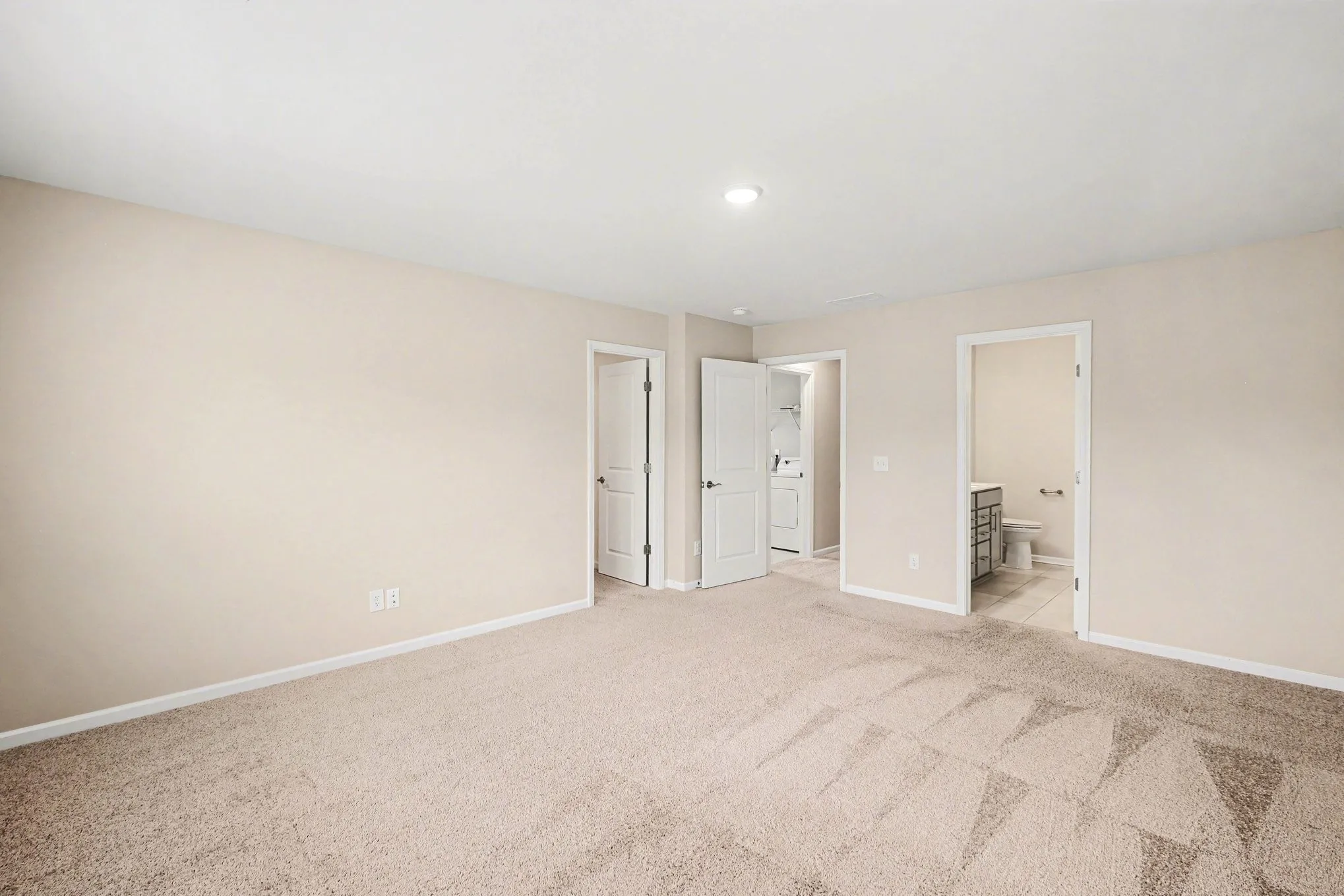 Upstairs offers plush premium carpeting and a convenient laundry room. The massive primary suite is a true retreat, easily fitting King-sized furniture with a huge walk-in closet and a luxe ensuite boasting upgraded hardware and a separate tub/shower. Complete with a 2-car attached rear garage, this home is perfectly positioned near schools and the interstate. An incredible starter home opportunity!