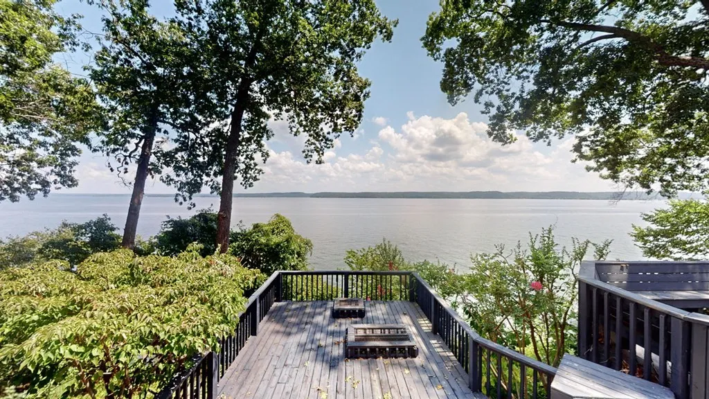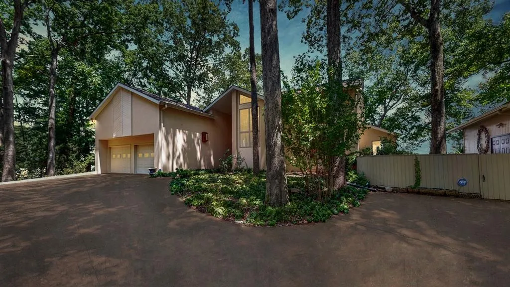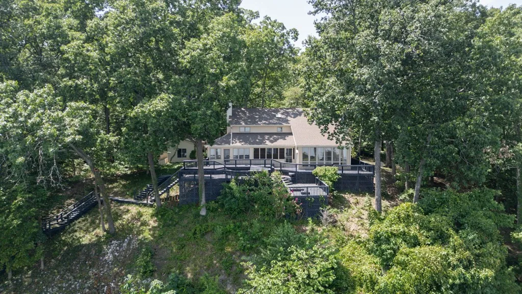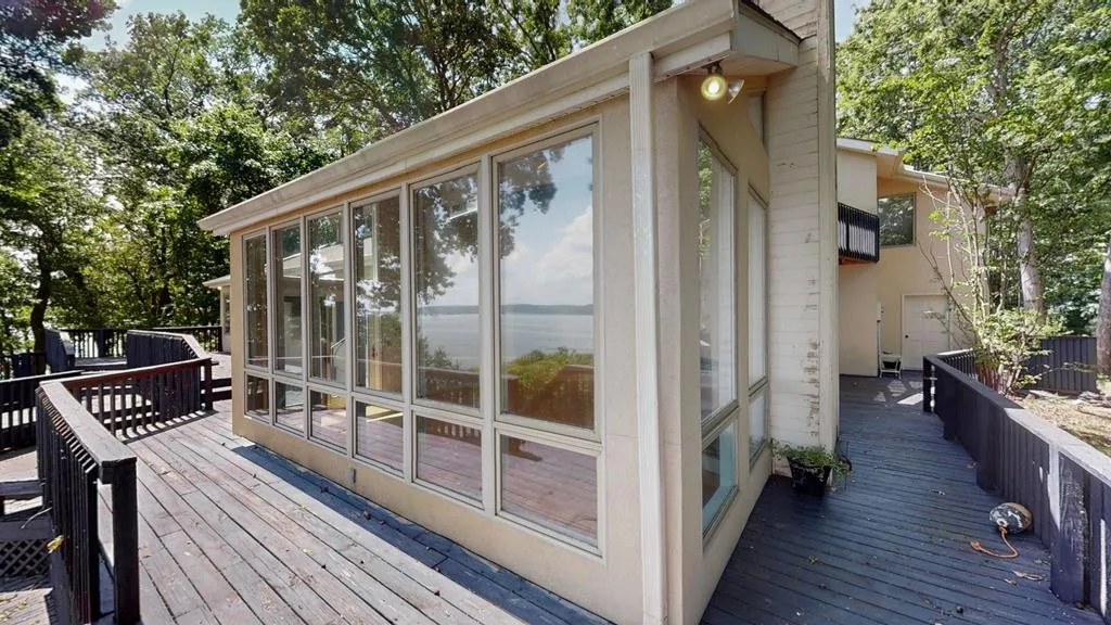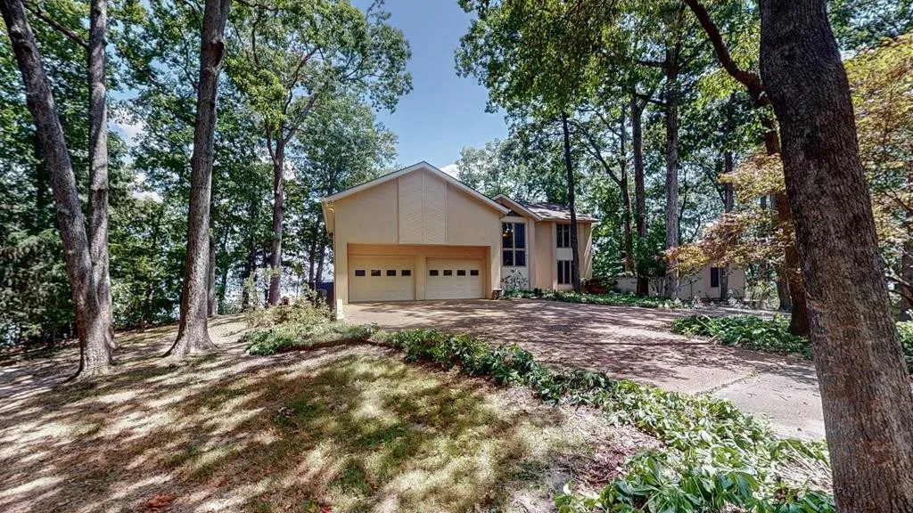 THIS ARCHITECT DESIGNED, 3943 SQ FT LAKEFRONT CONTEMPORARY HOME, IS 1 MILE NORTH OF PARIS LANDING STATE PARK. A LARGE FORYER & FORMAL DINING ROOM LEAD TO A SUNKEN GREAT ROOM WITH SCULPTURED FIREPLACE & SPECTACULAR VIEWS OF KENTUCKY LAKE THROUGH EXTRA-LARGE WINDOWS. SCREENED CEDAR PORCH LEADS TO HUGE DECK. BLUSH TERRACOTTA FLOOR AND CUSTOM HARDWOOD CABINETS IN KITCHEN OPEN TO A 2ND FIREPLACE & LARGE WINDOWED DEN. CUSTOM HARDWOOD FLOORS THROUGHOUT DOWNSTAIRS. MASTER SUITE HAS NEW CARPET, VIEWS OF LAKE, AND ITS OWN PRIVATE DECK. DRESSING ROOM INCLUDES HIS/HERS CLOSETS, MIRROR SURROUND, JETTED 2 PERSON BATHTUB, NATURAL LIGHT STREAMS THROUGH SKYLIGHTS IN LARGE BONUS ROOM WITH WETBAR, REFRIGERATOR, BUILT-IN BOOKCASES. AMENTIES INCLUDE DIRECT WATER/LAKE ACCESS, U-SHAPED PRIVATE DOCK, BOAT LIFT, LARGE GARDEN HOUSE/WORKSHOP NEXT TO MAIN HOUSE, NEW 2025 ROOF, RAINBIRD IRRIGATION SYSTEM, NEW HEAT PUMPS, CENTRAL VACUUM, NEW HOT WATER HEATERS, NEWPORTBURY NAVY BLUE STAINED, GORGEOUS 2,000 SQU FT MULTILEVEL DECK.