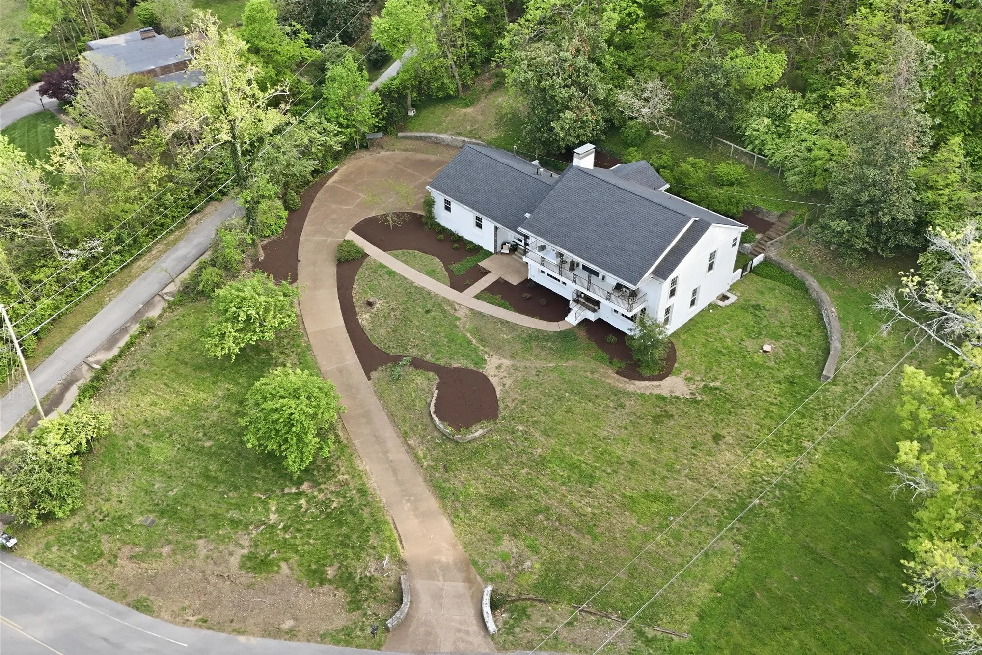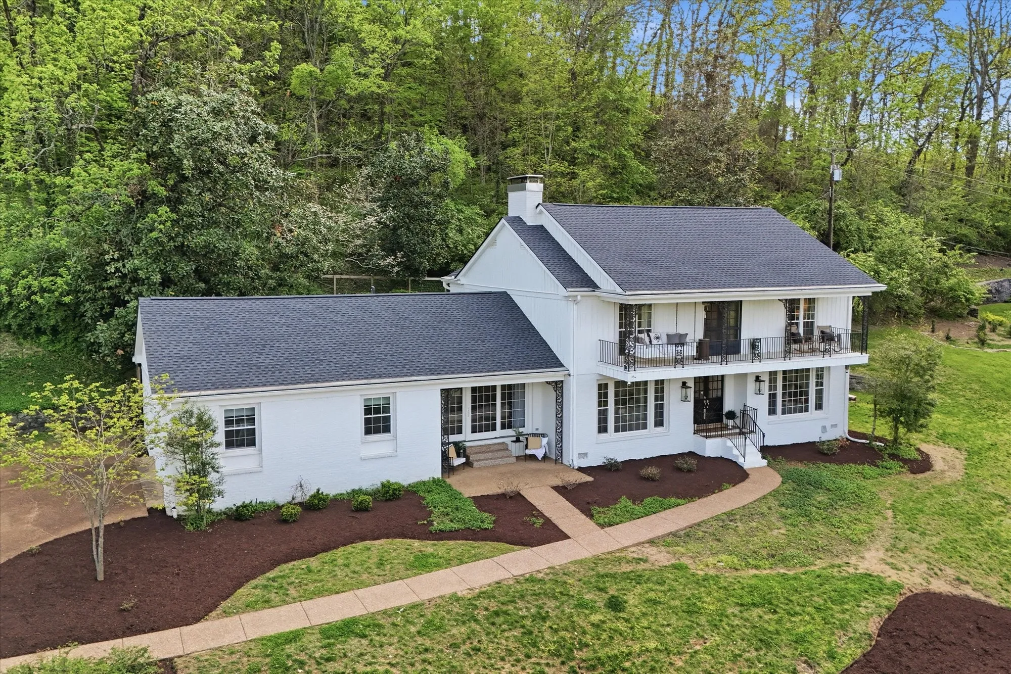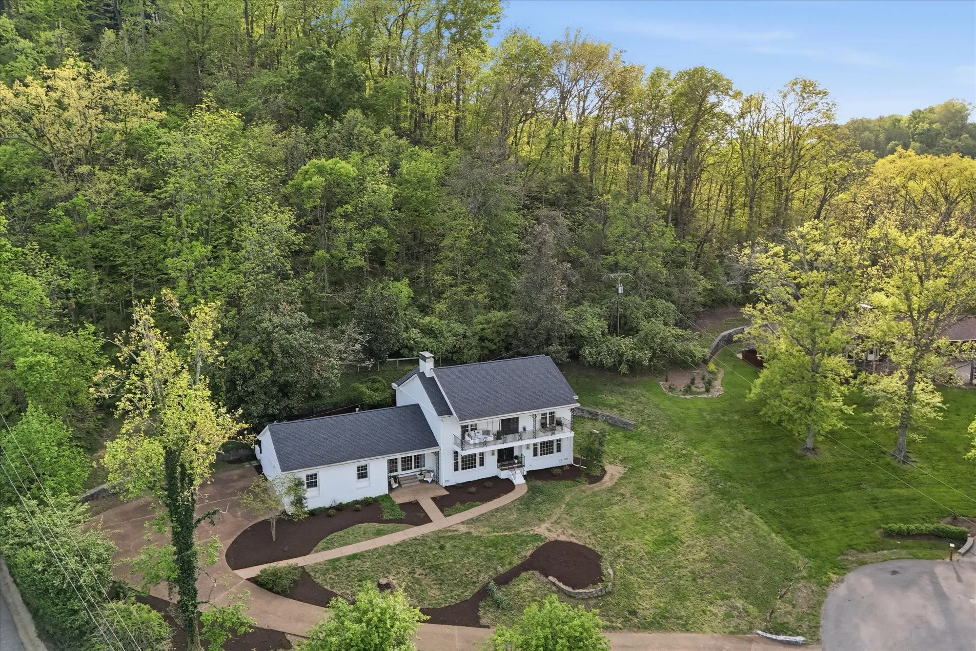Nestled at the end of a quiet cul-de-sac on more than an acre, along the coveted border of Forest Hills and Brentwood, this exceptional residence offers a rare blend of privacy, elegance, and convenience. Perched gracefully on a hillside with eastern exposure, the home captures stunning sunrise views that can be enjoyed from both the main level and the expansive second-story balcony.