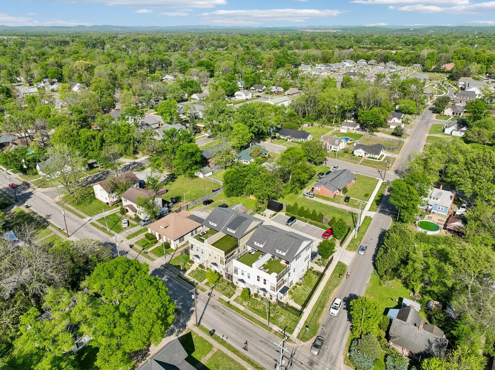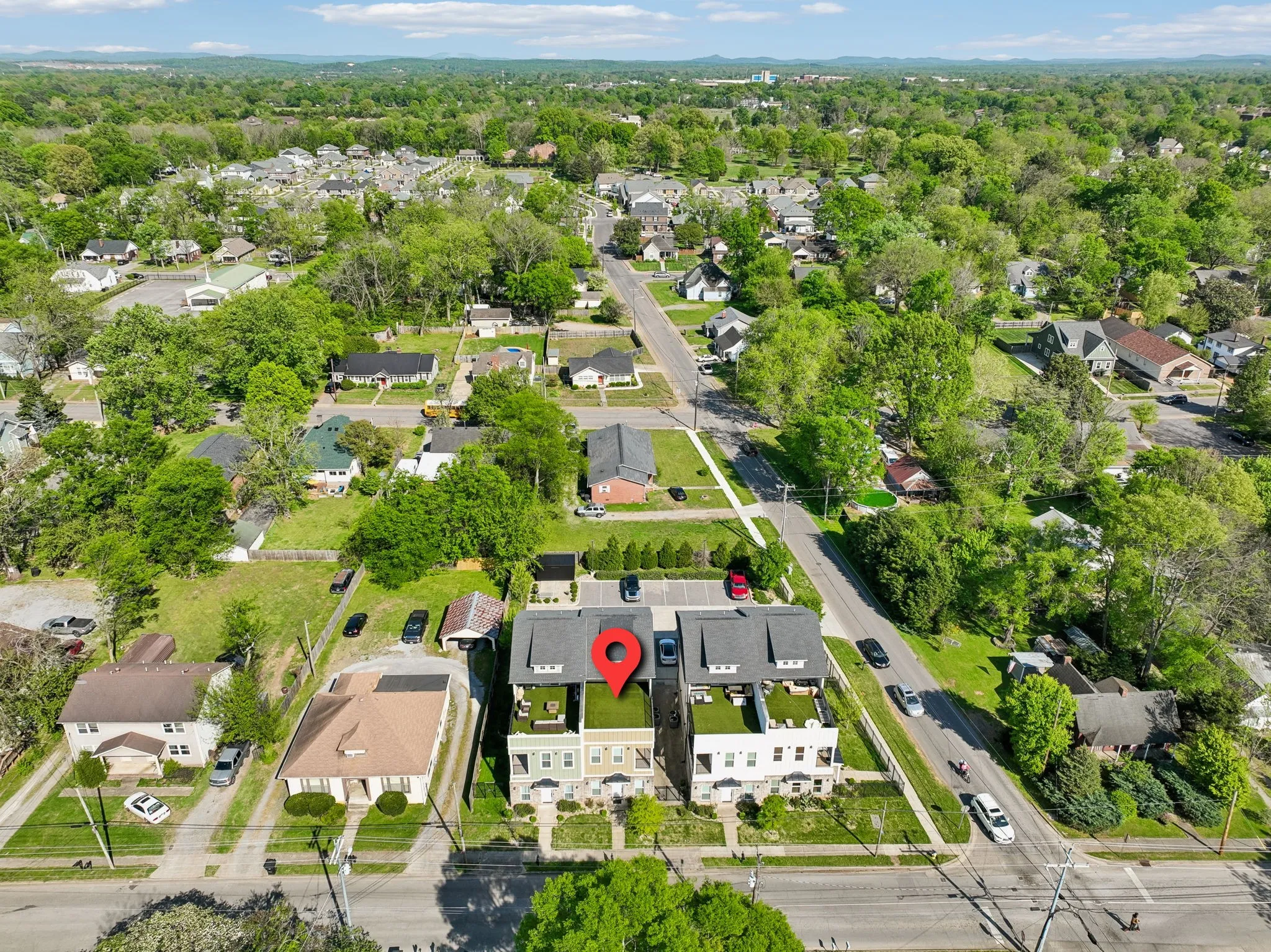 Save up to 1% of your loan amount as a closing cost credit when you use seller’s suggested lender! Located in the heart of Murfreesboro, this spacious three-story townhome offers modern living just minutes from downtown and the shopping and dining along Old Fort Parkway. With 4 bedrooms, 4 bathrooms, and 4 dedicated parking spots, this property provides incredible flexibility—perfect as a primary residence, long-term rental, or short-term investment opportunity. This move-in ready home features high-end finishes and modern upgrades throughout, including concrete, laminate, and tile flooring—no carpet anywhere. All appliances remain with the home, including the washer and dryer, making for an easy transition. The main level offers an open and functional layout with a large living room and a spacious kitchen complete with ample white cabinetry, stunning countertops, a tiled backsplash, stainless steel appliances, and a large island ideal for entertaining. This level also includes a bedroom with a walk-in closet and a full bathroom. The second level features the primary suite with a walk-in closet and an ensuite bathroom with double vanities and a tiled walk-in shower. An additional bedroom with its own full bathroom is also located on this level, along with a versatile bonus room that provides access to a private balcony. The third level offers even more living space with a second primary suite, complete with a large walk-in closet, ensuite bathroom, and a comfortable sitting area. One of the standout features of this home is the 600 sq ft partially covered rooftop balcony with turf, creating an ideal space for relaxing or entertaining while enjoying elevated views. Modern, spacious, and ideally located, this townhome offers a unique opportunity in one of Murfreesboro’s most convenient areas!