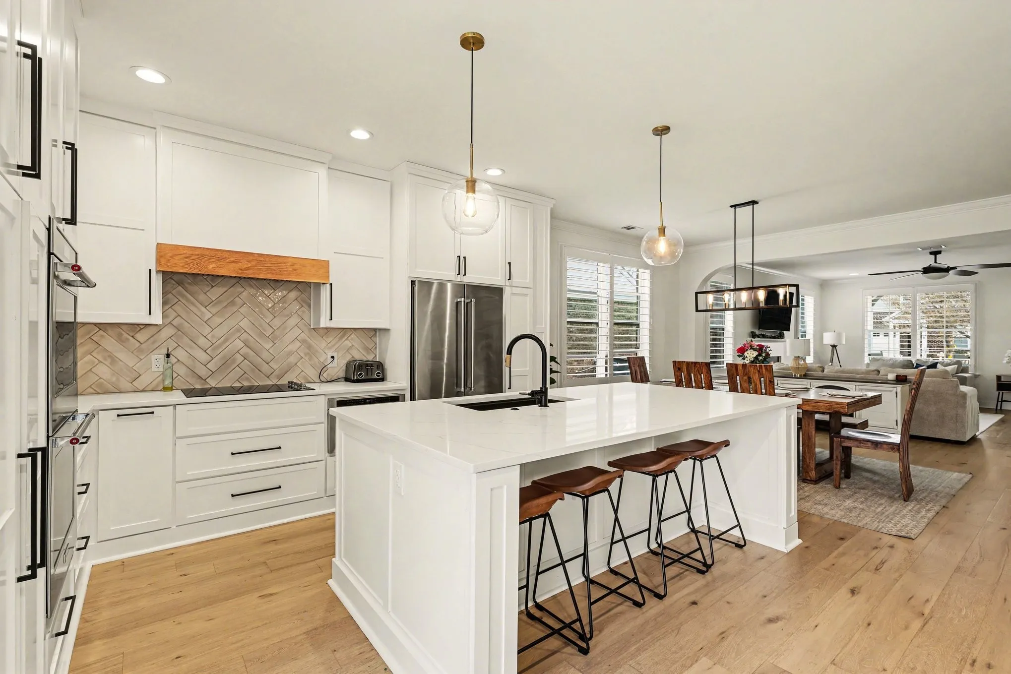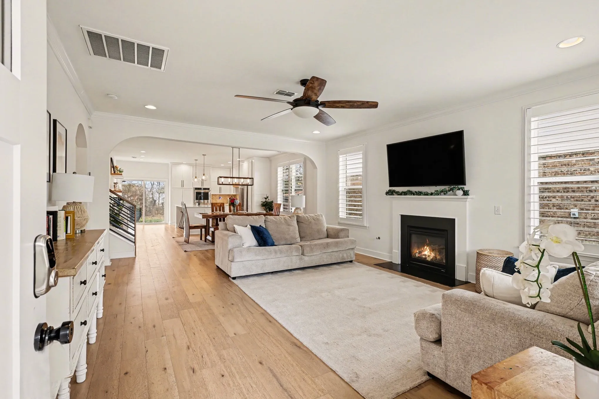 Welcome to this beautifully updated 5-bedroom, 3.5-bath home located in one of Mount Juliet’s most desirable communities, just minutes from Providence Marketplace. Enjoy convenient access to shopping, dining, and everyday essentials while still coming home to a peaceful neighborhood with excellent amenities. The kitchen has been completely remodeled down to the studs, creating a modernized and thoughtfully redesigned layout. Brand new hardwood floors run throughout the main living areas, complemented by recessed lighting and an open floor plan that’s perfect for both everyday living and entertaining. At the center of the home is a high-end chef’s kitchen featuring custom cabinetry that extends to the ceiling, premium appliances, double ovens, a drawer microwave, tile backsplash, and a large island offering exceptional prep space and storage. The main-level primary suite offers comfort and privacy along with a fully remodeled spa-like bathroom featuring matching large-format tile that extends from the floor through the walk-in shower and to the ceiling, double vanities, and a spacious walk-in closet. Upstairs you’ll find generously sized bedrooms along with a versatile loft area ideal for a second living space, media room, playroom, or home office. Major upgrades include a refurbished HVAC system and brand new water heater. Step outside to a large backyard backing to a tree line, providing added privacy and a beautiful natural backdrop. Community amenities include a pool, playground, and scenic walking trails.