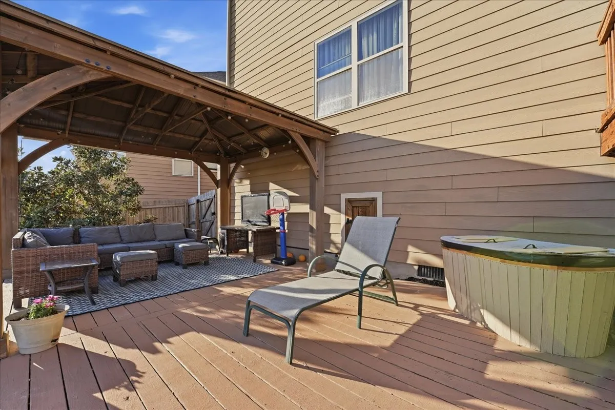 Out back is where this home really shines. Picture yourself relaxing on the big back deck, hosting under the pergola that conveys, roasting mallows at the landscaped firepit, and watching the kids run freely in the large fenced yard. And here’s the best part — a back gate opens directly to the community pool, making summer days feel like a permanent vacation. Backing up to open green space, the yard is as private as it is spacious.