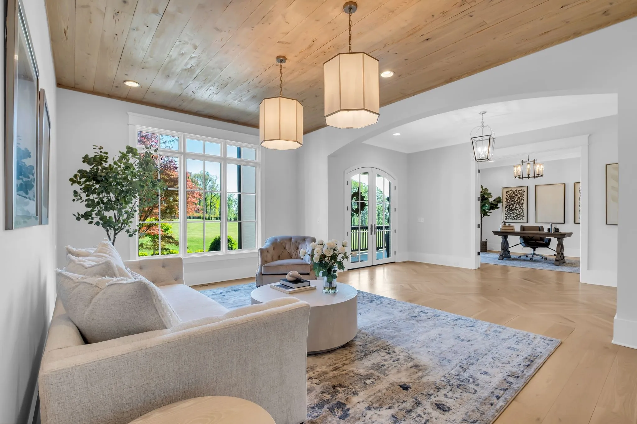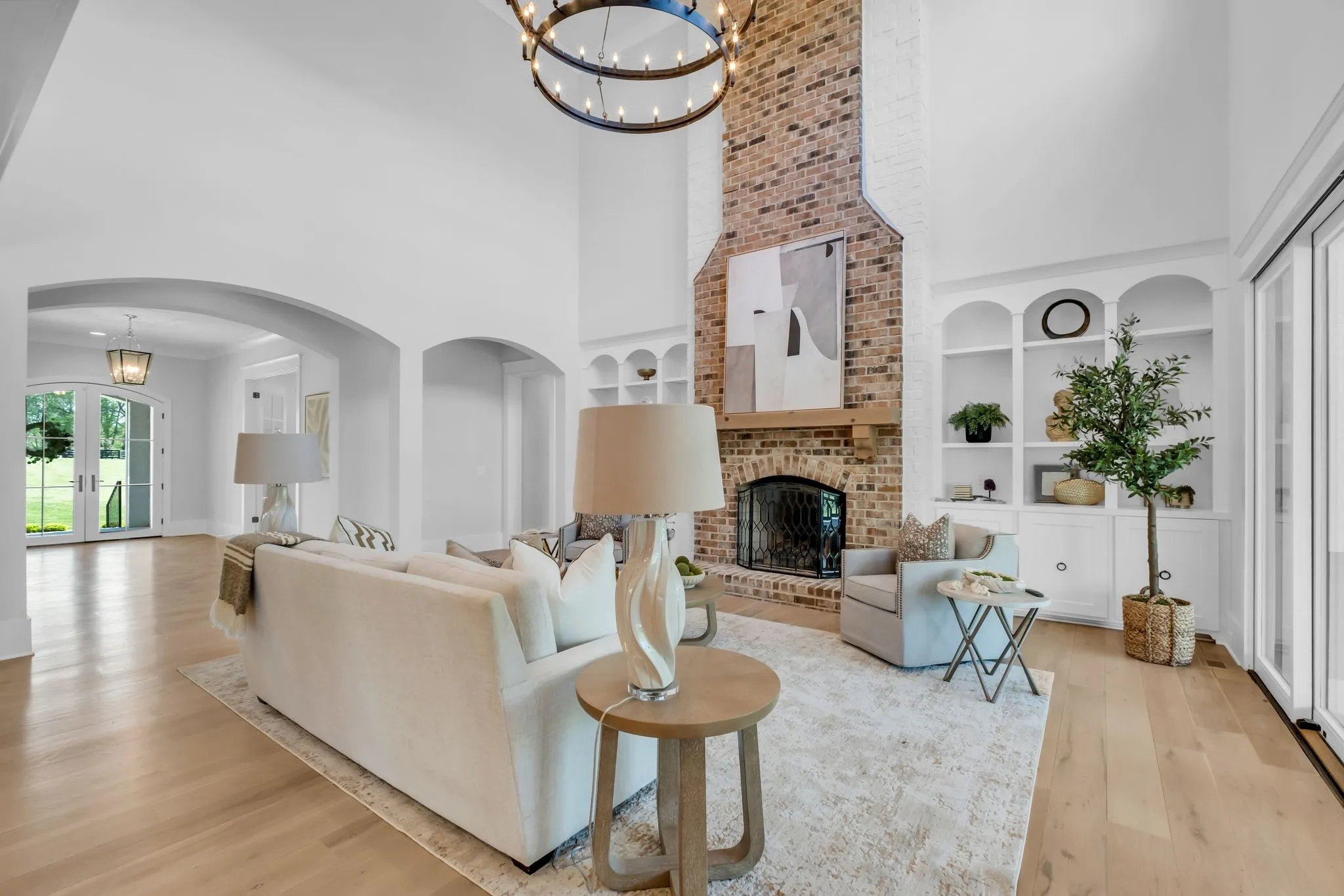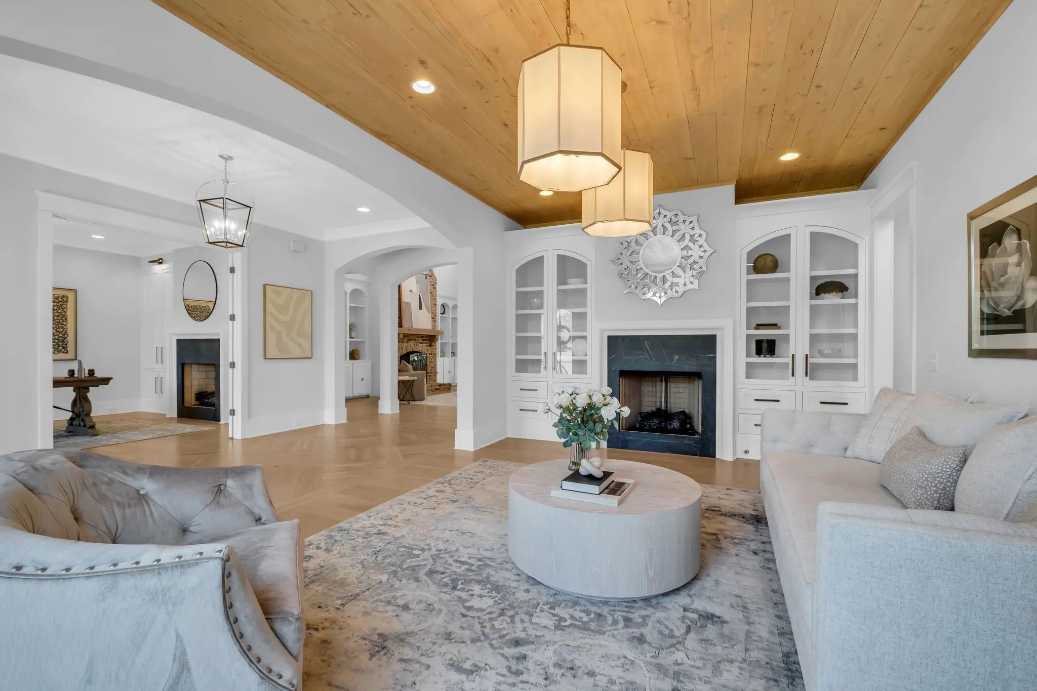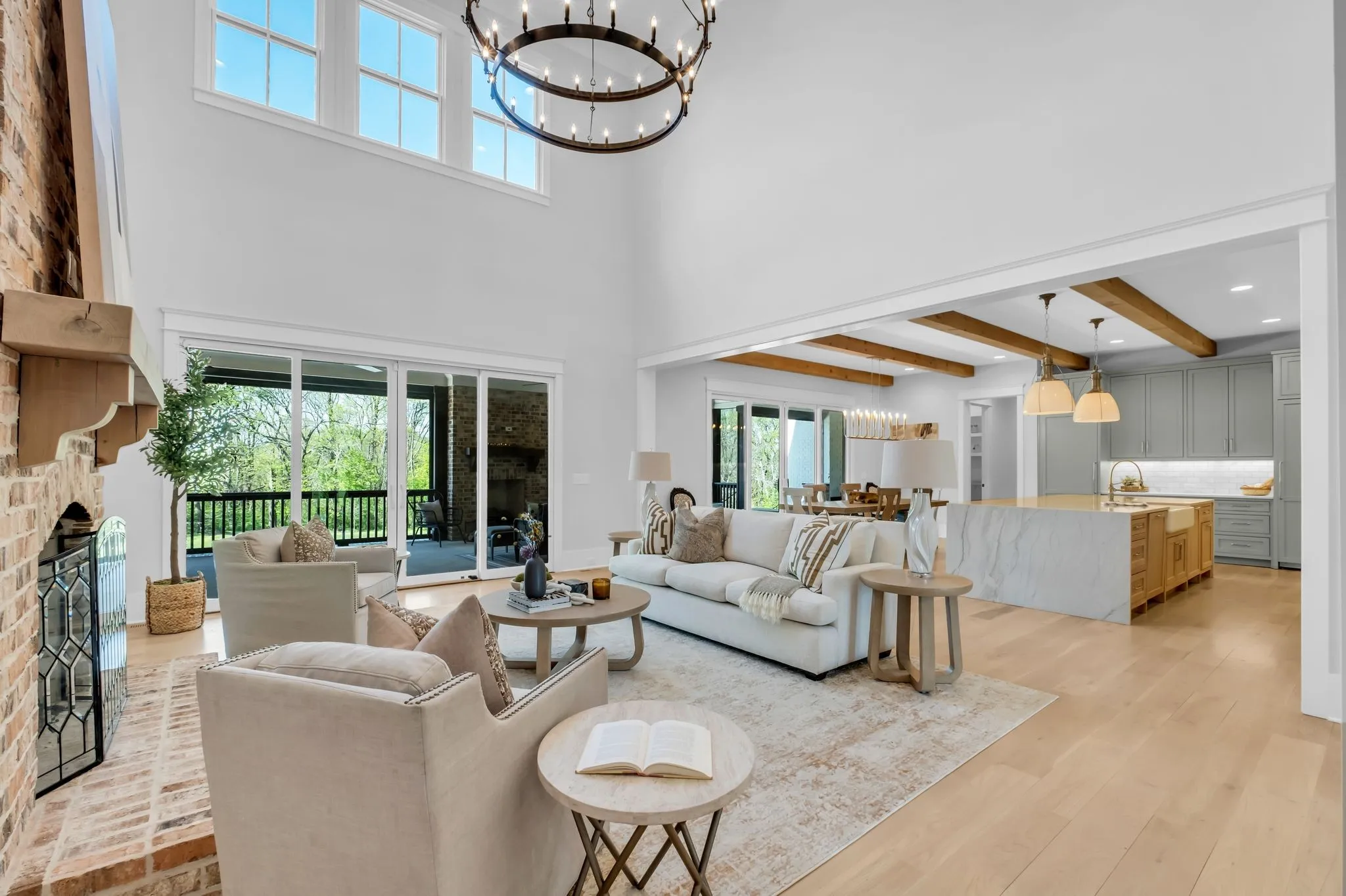 Set within the private enclave of St. James, where only a limited number of homes exist, this custom-built estate offers a rare blend of acreage, privacy, and refinement. Ideal for those seeking more land without sacrificing a sense of luxury. Positioned at the highest point on a quiet cul-de-sac, the property spans nearly eight gated acres with sweeping sunrise and sunset views. Inside, over 6,600 square feet unfolds with open yet elegant living spaces designed for both comfort and scale, enhanced by multiple fireplaces throughout. As you enter through arched openings, the light-filled living room makes a striking impression with its vaulted ceiling and floor-to-ceiling brick fireplace. The chef’s kitchen is designed to perform as beautifully as it looks, featuring a six-burner griddle range, double dishwashers, built-in refrigerator and freezer, wine fridge, and a generous island designed for gathering. The main-level primary suite offers a true retreat with dual closets, elegant spa bath and private laundry. While a main-level guest suite adds everyday convenience. Upstairs, a spacious bonus area with a fully equipped kitchenette, sitting and dining areas creates a private wing ideal for guests, extended stays, or multi-generational living. Three additional bedrooms each feature generous proportions, ensuite baths, and walk-in closets. Outdoor living is equally compelling with a screened-in porch with fireplace and a heated pool w/tanning ledge and spa w/waterfall edge. A four-car garage with epoxy flooring provides abundant space for vehicles and storage. This home delivers the perfect balance of land, seclusion, and elevated living in one of the area’s most exclusive settings.