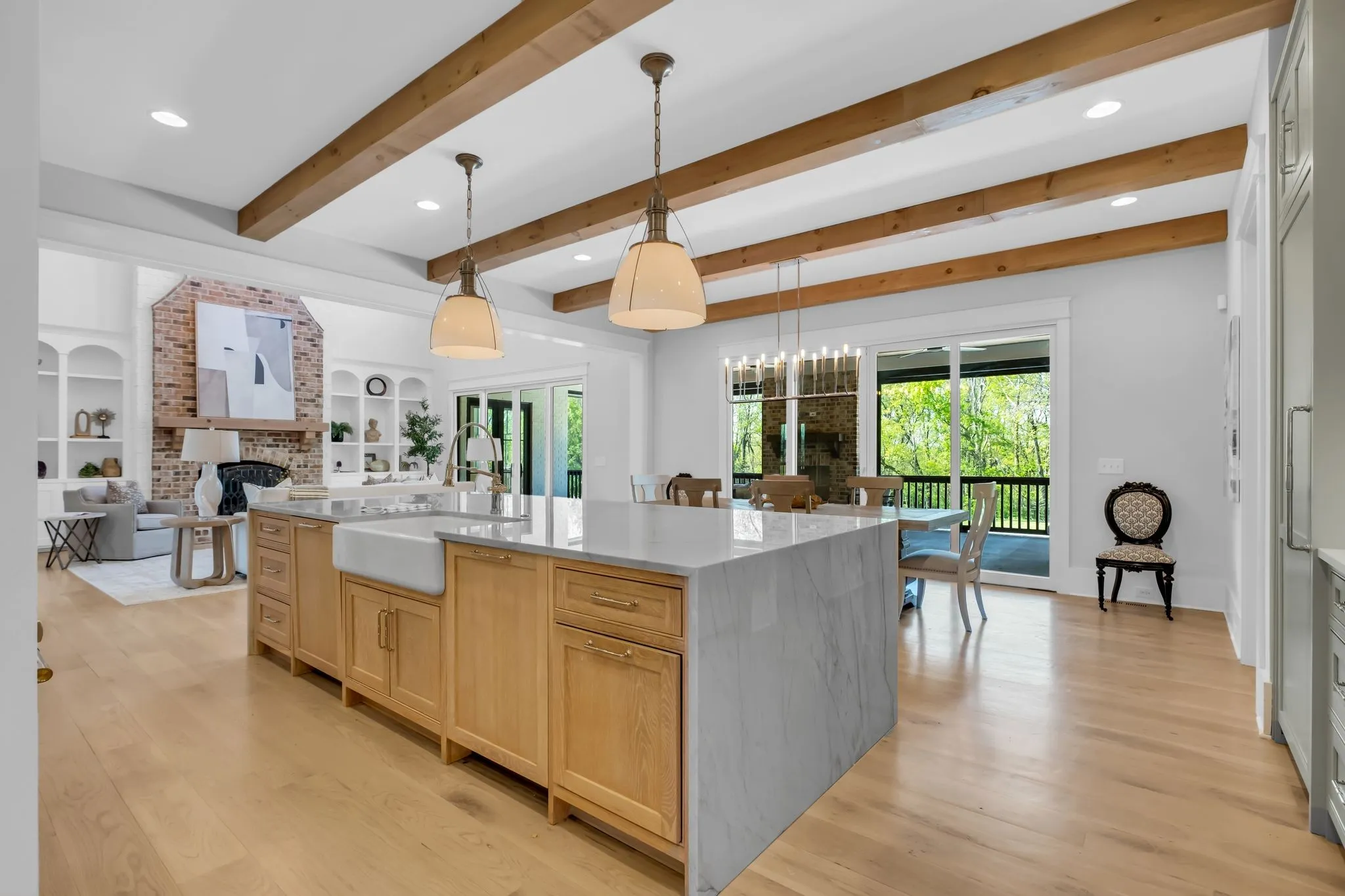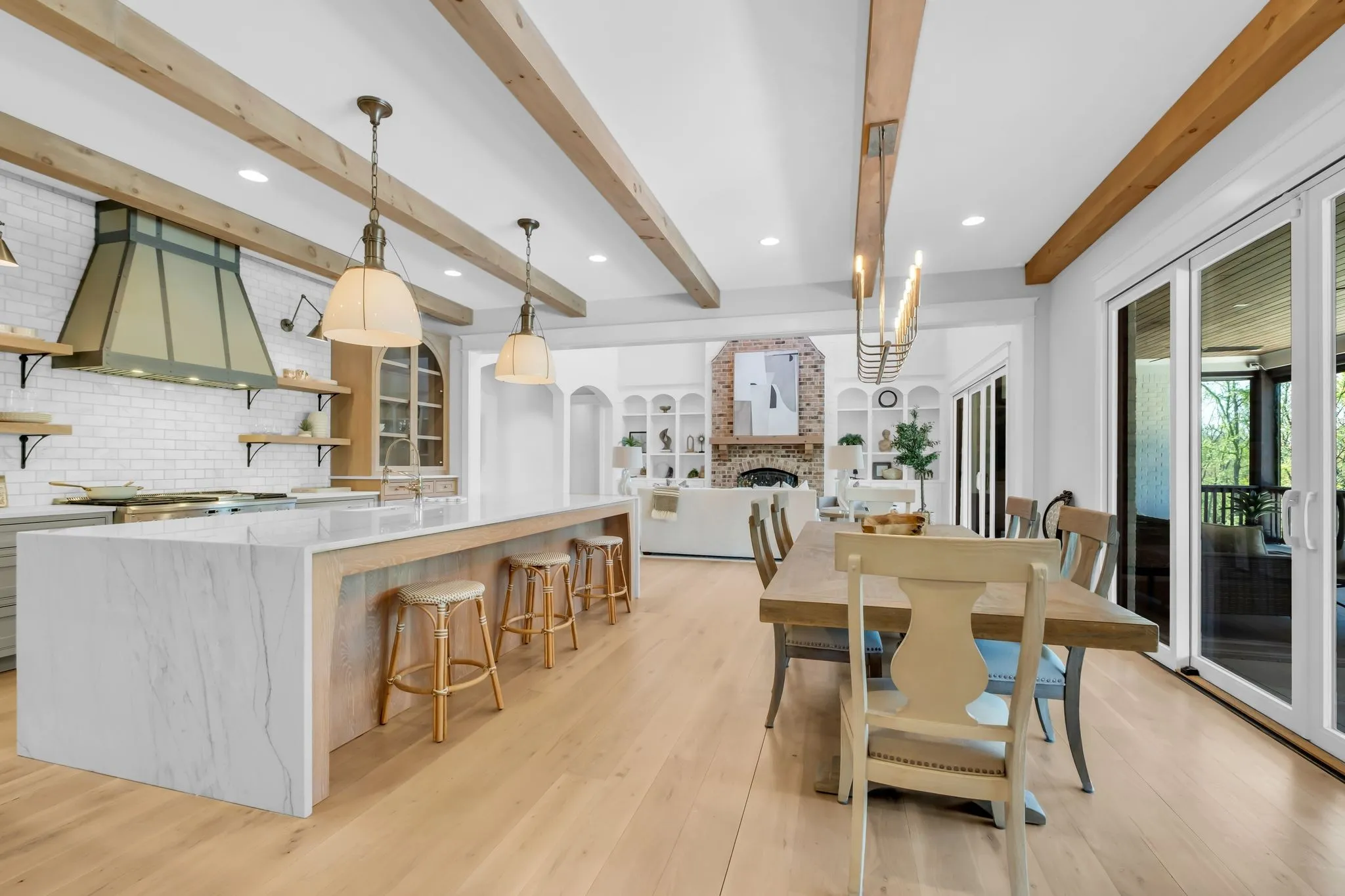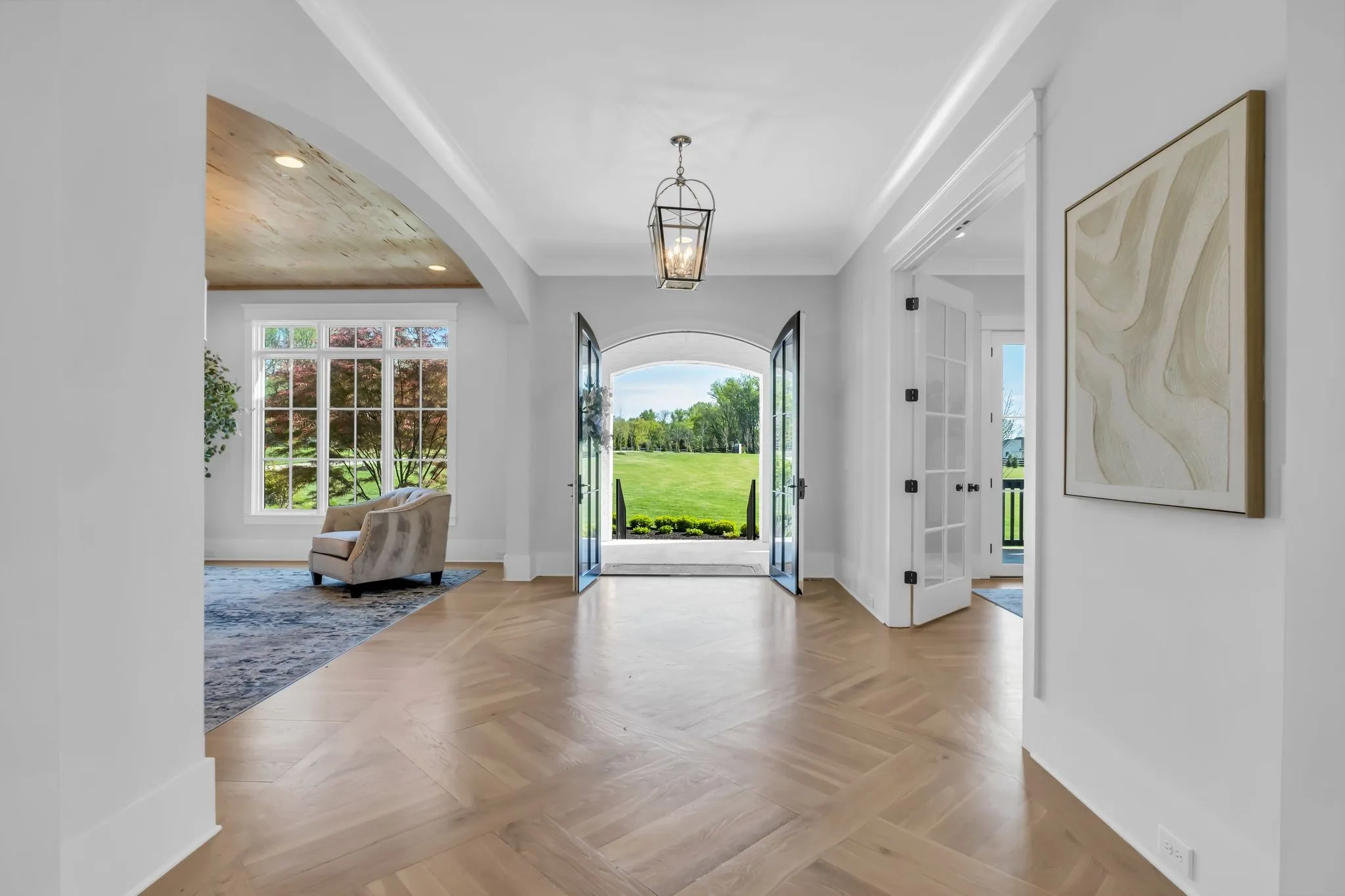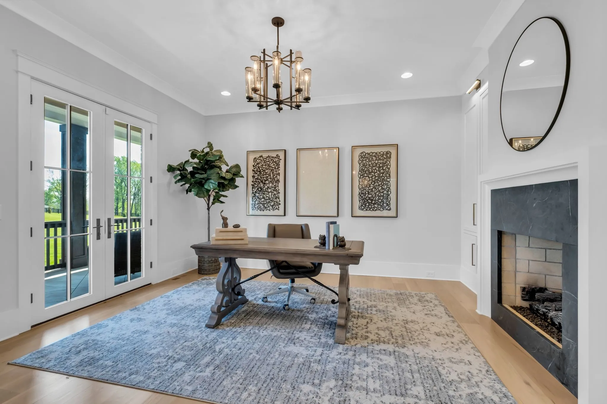 Set within the private enclave of St. James, where only a limited number of homes exist, this custom-built estate offers a rare blend of acreage, privacy, and refinement. Ideal for those seeking more land without sacrificing a sense of luxury. Positioned at the highest point on a quiet cul-de-sac, the property spans nearly eight gated acres with sweeping sunrise and sunset views. Inside, over 6,600 square feet unfolds with open yet elegant living spaces designed for both comfort and scale, enhanced by multiple fireplaces throughout. As you enter through arched openings, the light-filled living room makes a striking impression with its vaulted ceiling and floor-to-ceiling brick fireplace. The chef’s kitchen is designed to perform as beautifully as it looks, featuring a six-burner griddle range, double dishwashers, built-in refrigerator and freezer, wine fridge, and a generous island designed for gathering. The main-level primary suite offers a true retreat with dual closets, elegant spa bath and private laundry. While a main-level guest suite adds everyday convenience. Upstairs, a spacious bonus area with a fully equipped kitchenette, sitting and dining areas creates a private wing ideal for guests, extended stays, or multi-generational living. Three additional bedrooms each feature generous proportions, ensuite baths, and walk-in closets. Outdoor living is equally compelling with a screened-in porch with fireplace and a heated pool w/tanning ledge and spa w/waterfall edge. A four-car garage with epoxy flooring provides abundant space for vehicles and storage. This home delivers the perfect balance of land, seclusion, and elevated living in one of the area’s most exclusive settings.
