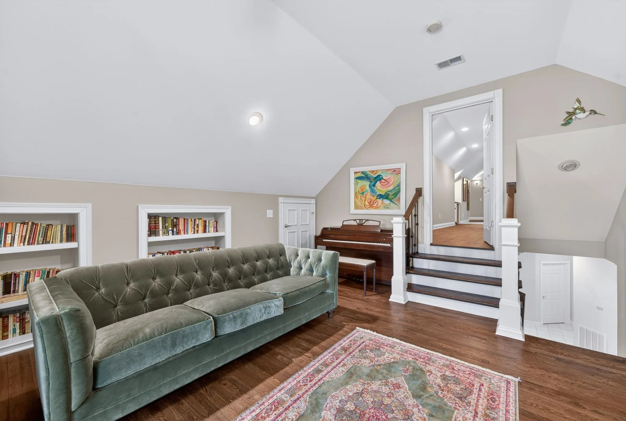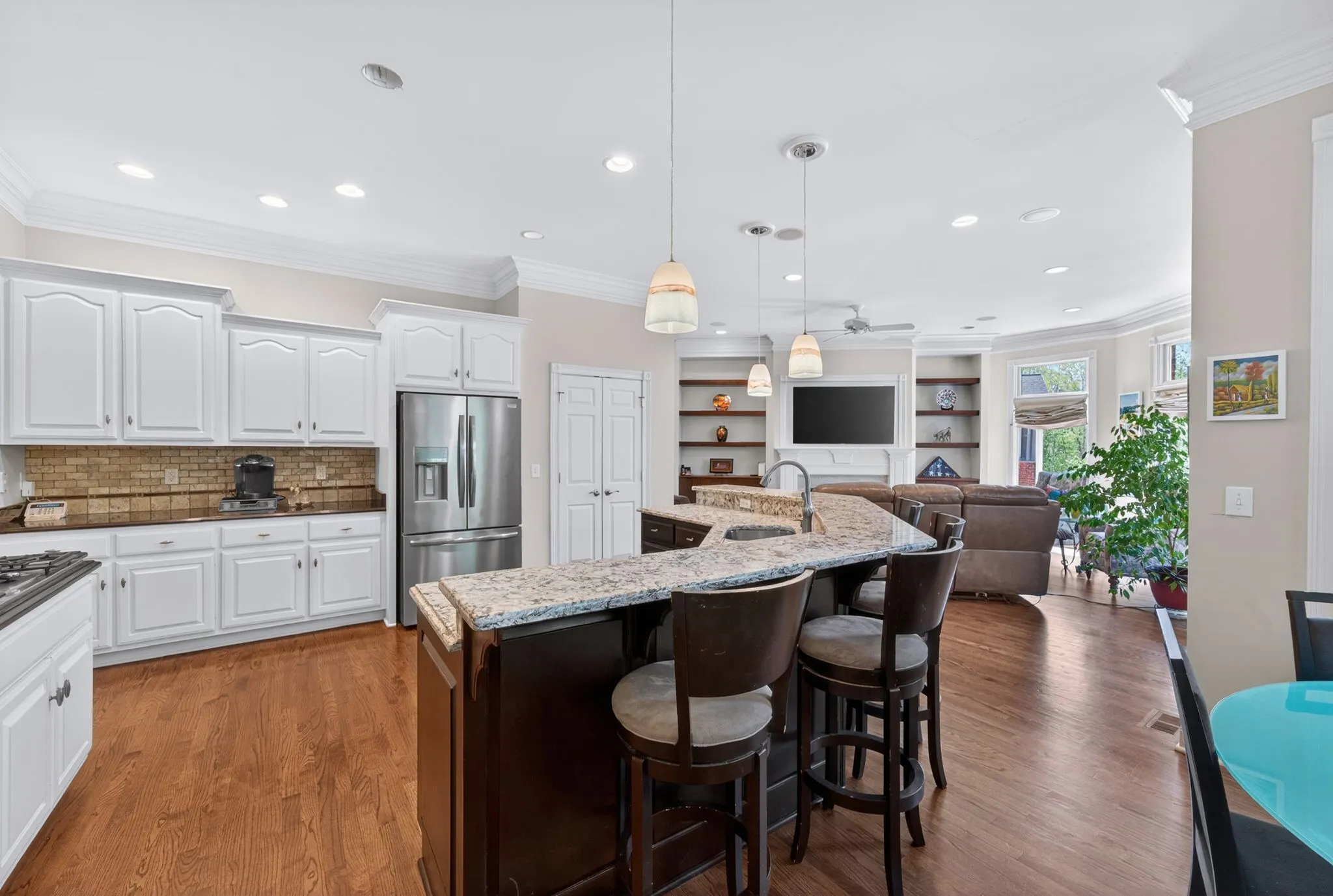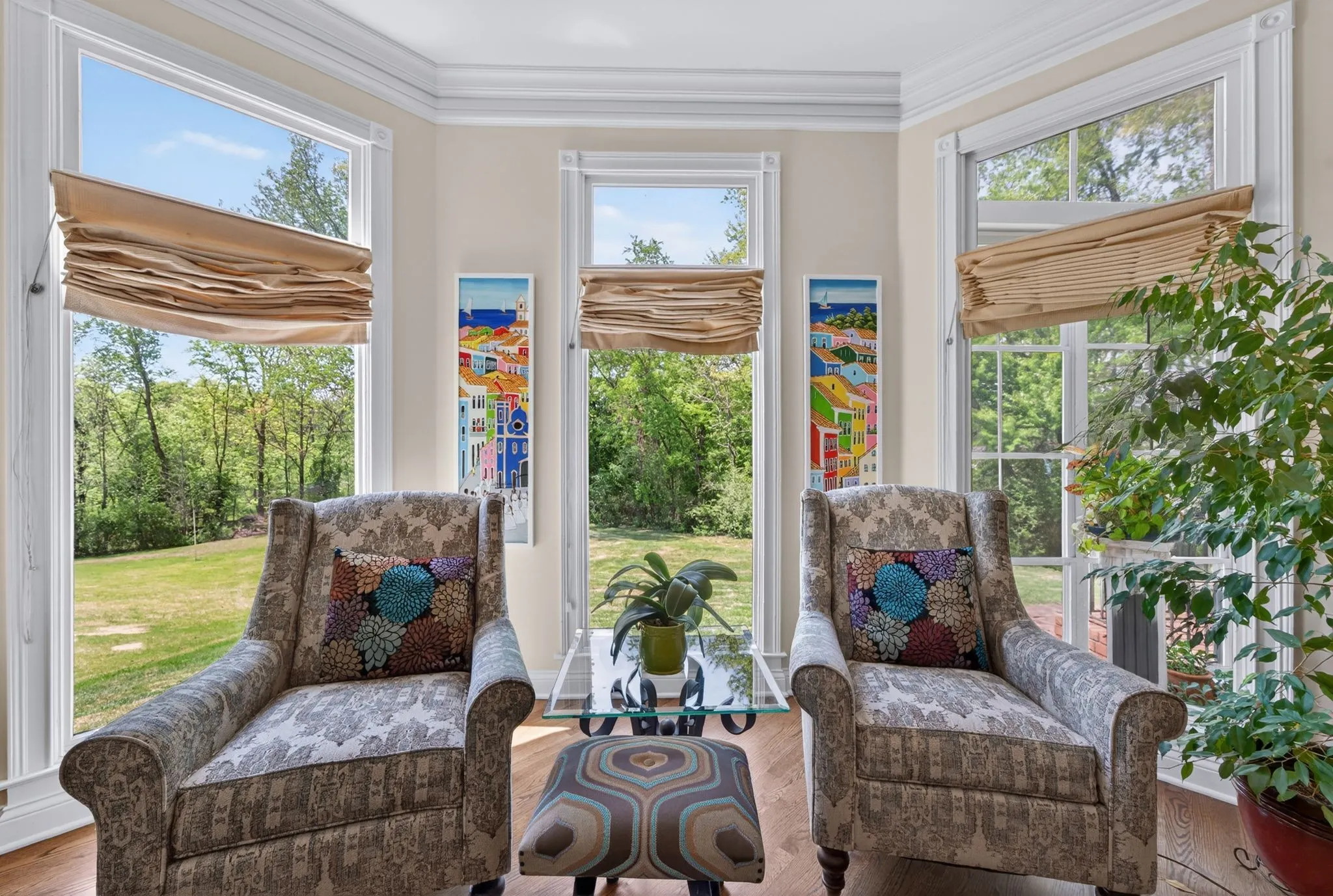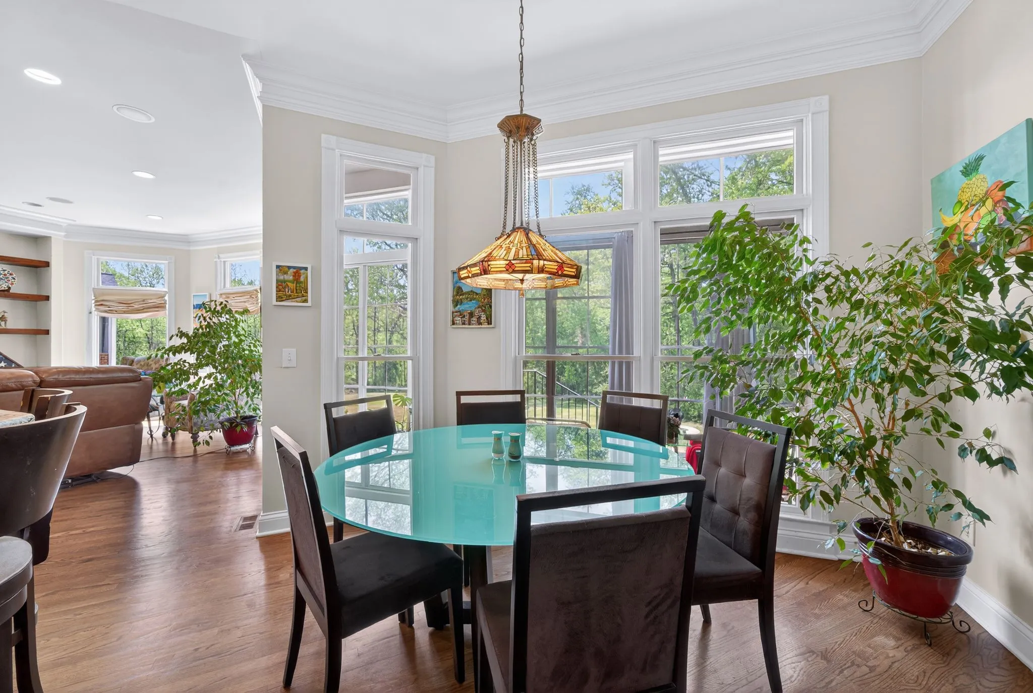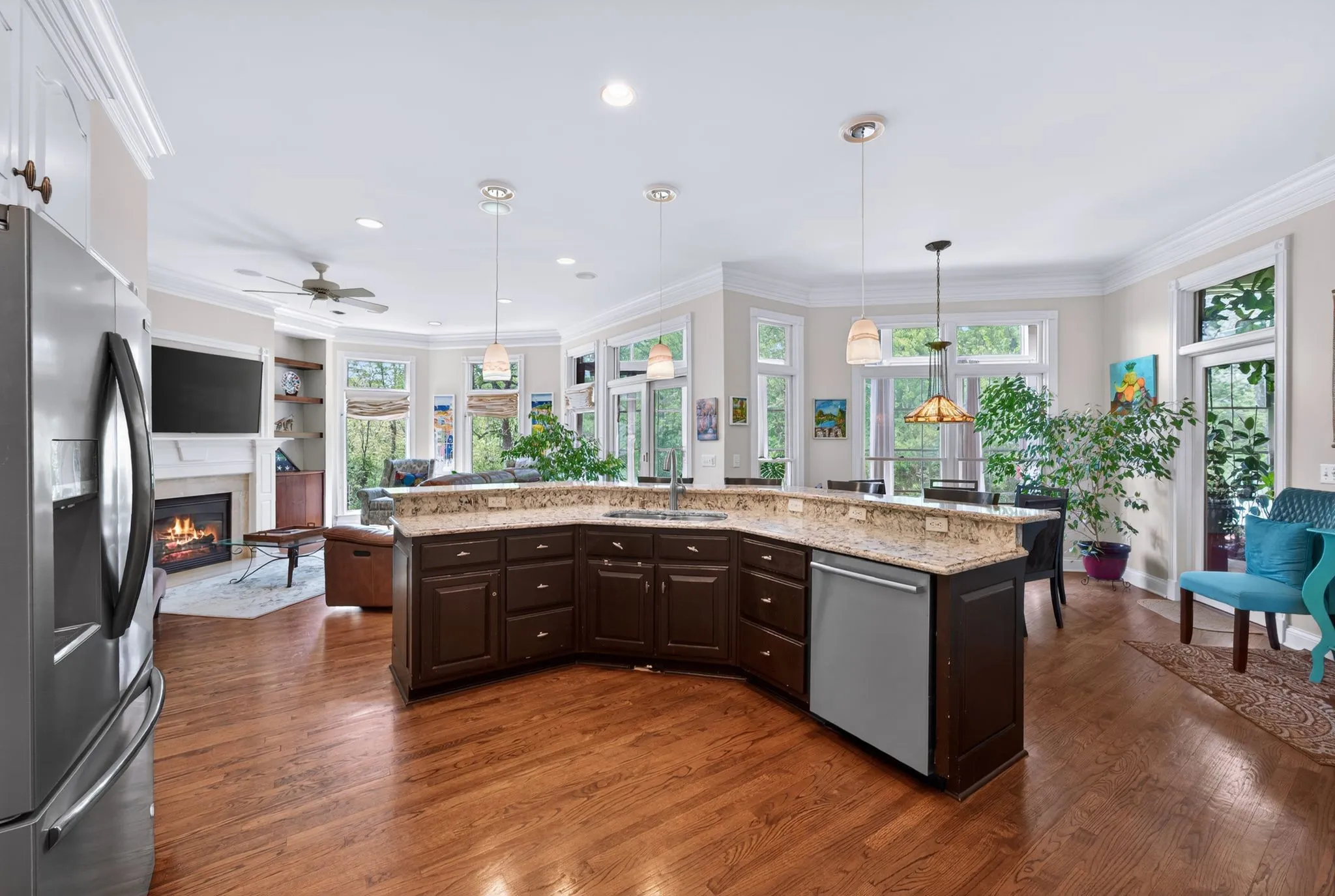 At the heart of the home, the designer kitchen is both beautiful and functional, showcasing stainless steel appliances opening into a charming breakfast nook. Just beyond, a serene enclosed sunroom invites you to slow down, sip your morning coffee, and soak in the peaceful surroundings.