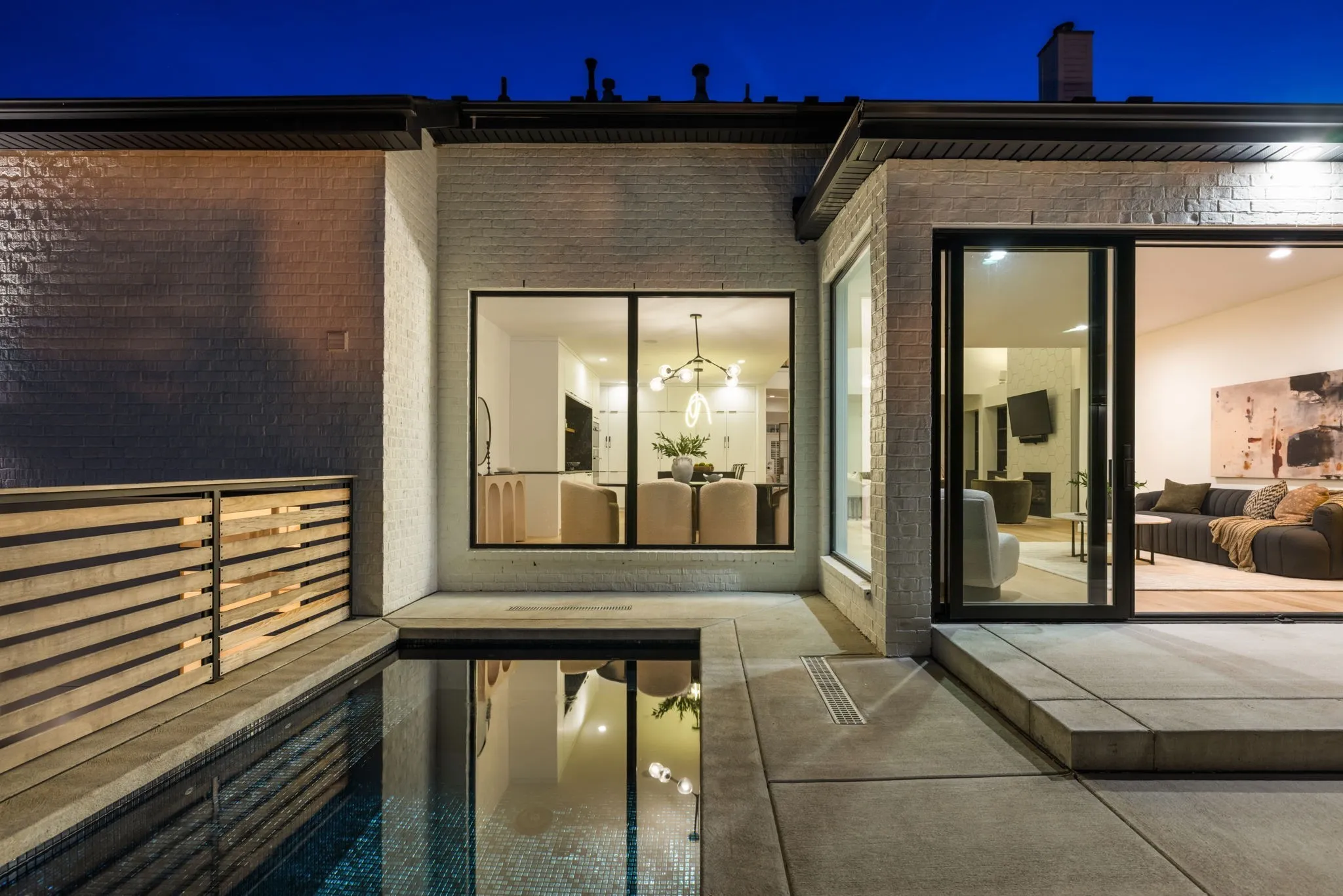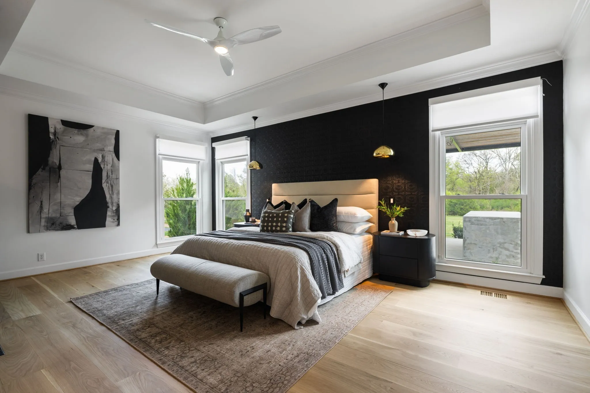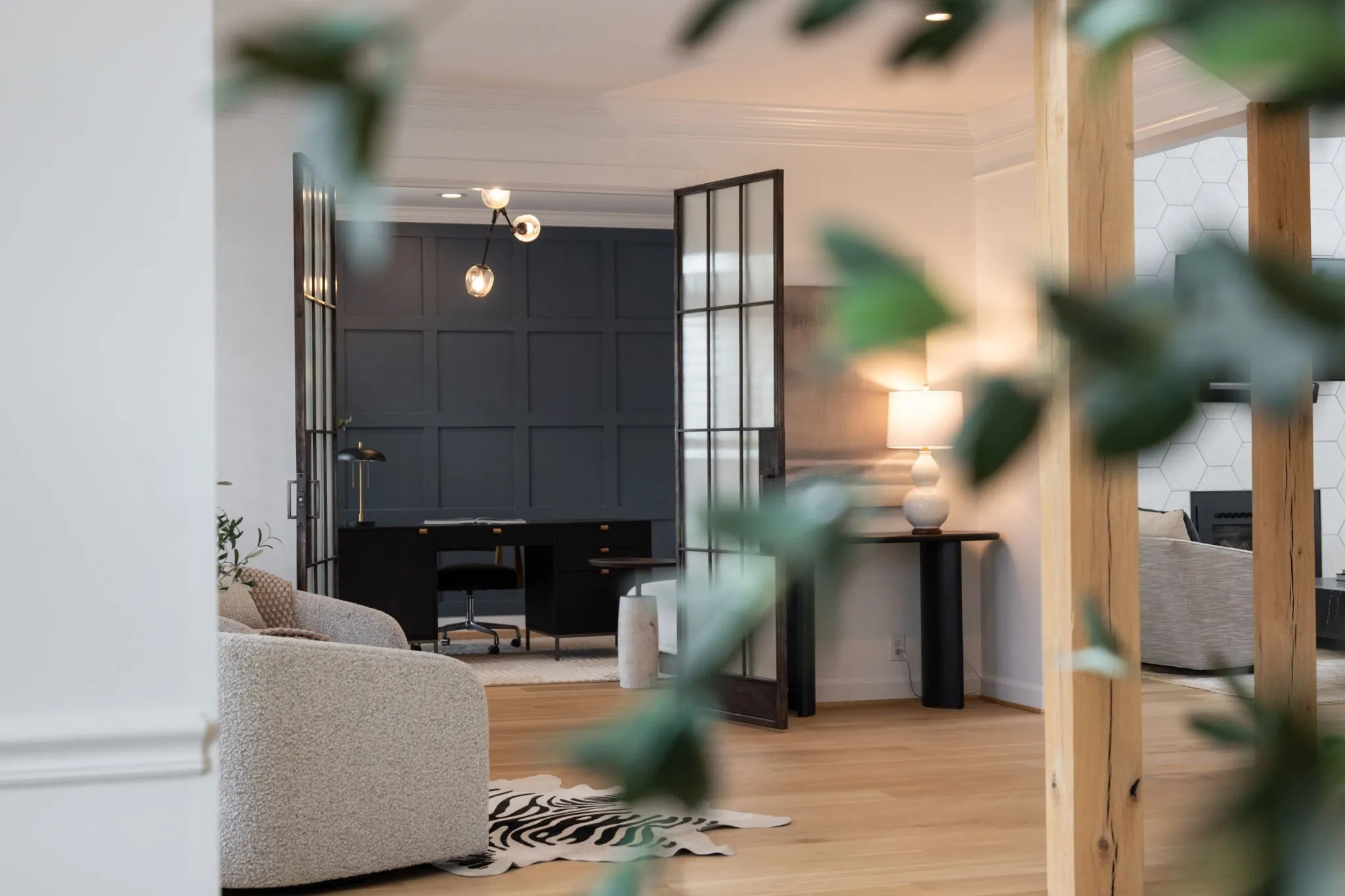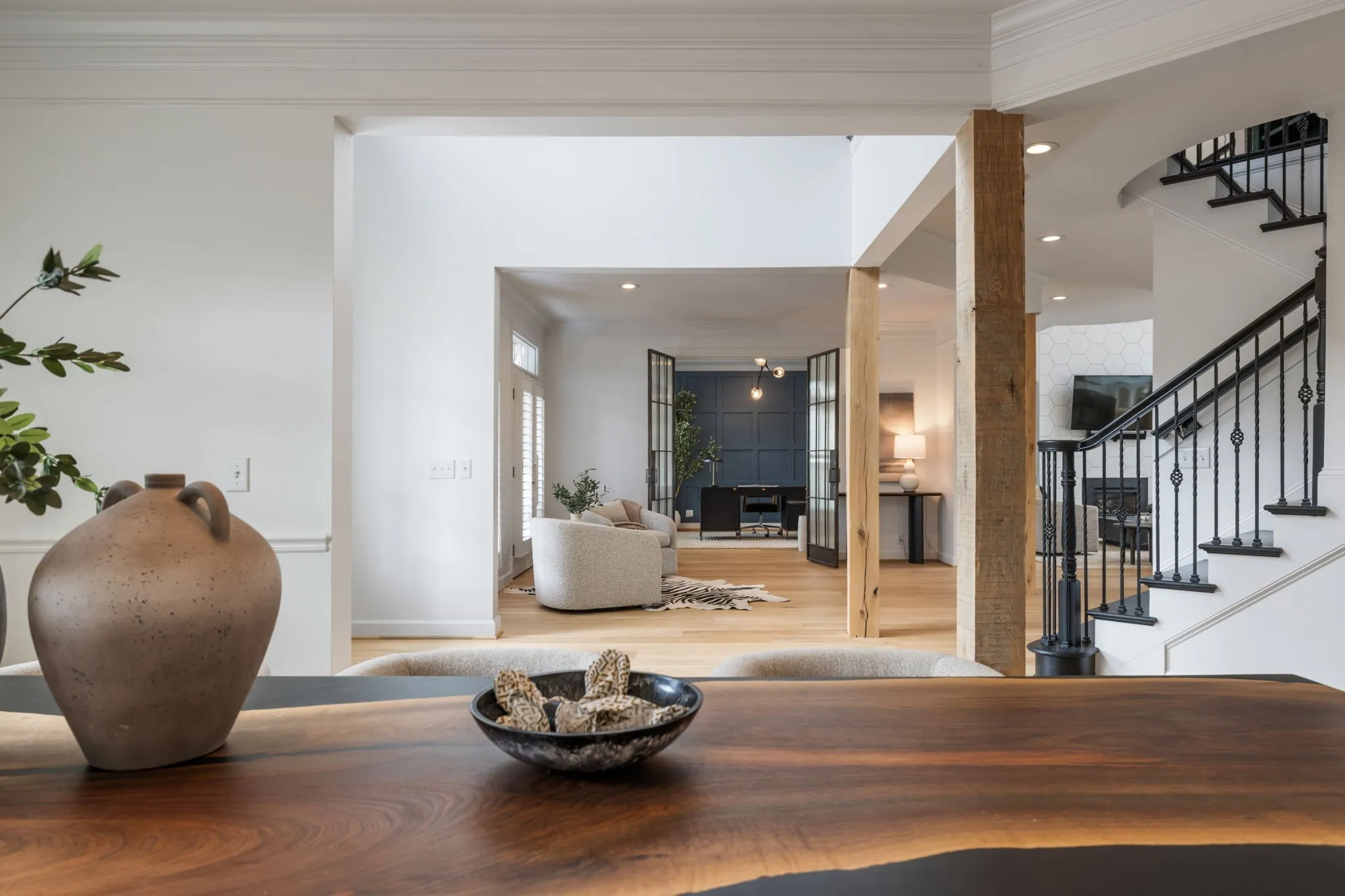 A striking blend of architectural sophistication + livable luxury, this home is a beautifully curated modern residence designed for elevated entertaining + everyday ease. Offering over 5,800sqft, this 5-bed, 7-bath home delivers standout style, thoughtful renovations, + exceptional indoor-outdoor living—tucked into one of Franklin’s most desirable neighborhoods, River Landing.Enter to a dramatic two-story foyer setting the tone w/ clean lines, abundant natural light, + an airy sense of scale. Wide-plank 8” white oak hardwoods run throughout the main level, complemented by designer lighting + a crisp, modern palette that feels both bold + inviting. At the heart of the home, the renovated chef’s kitchen makes an unforgettable statement w/ sleek cabinetry, JennAir appliances, + a grand island. Seamlessly open to the living + dining spaces, it creates a natural flow for hosting.The living room is refined + comfortable, anchored by a gas fireplace w/ an architectural floor-to-ceiling hex tile surround + custom built-ins—an artful focal point elevating the space. Retreat to the expansive primary suite, a true sanctuary featuring its own fireplace + calming, spa-inspired atmosphere. The primary bath continues the luxury experience w/ dramatic design, elevated finishes, + a resort-like feel—complete w/ a soaking tub + walk-in shower wrapped in rich, modern tilework.