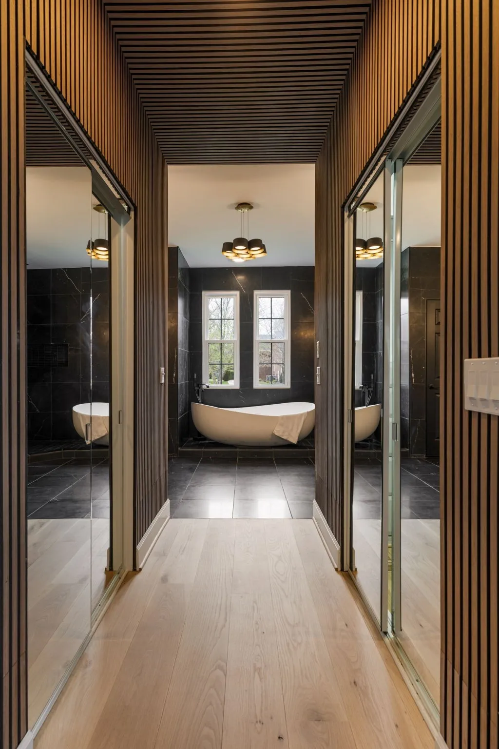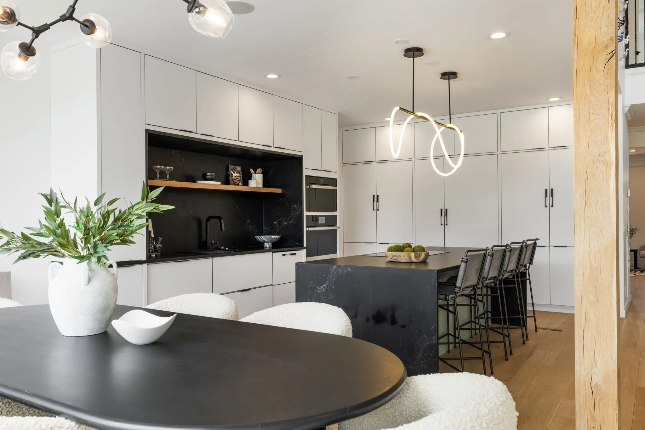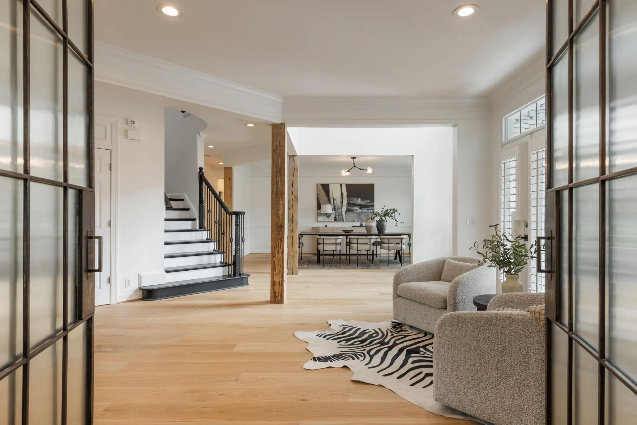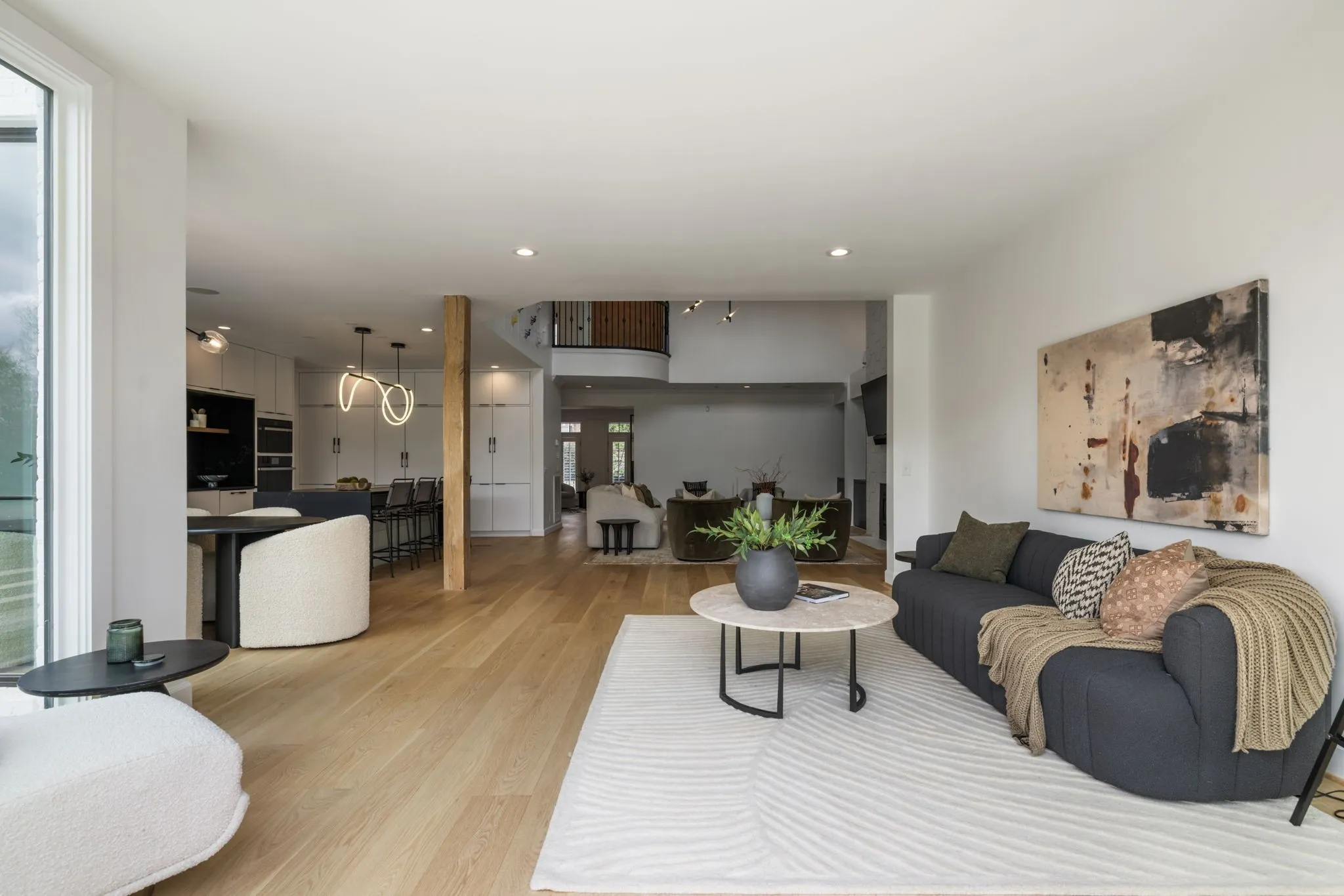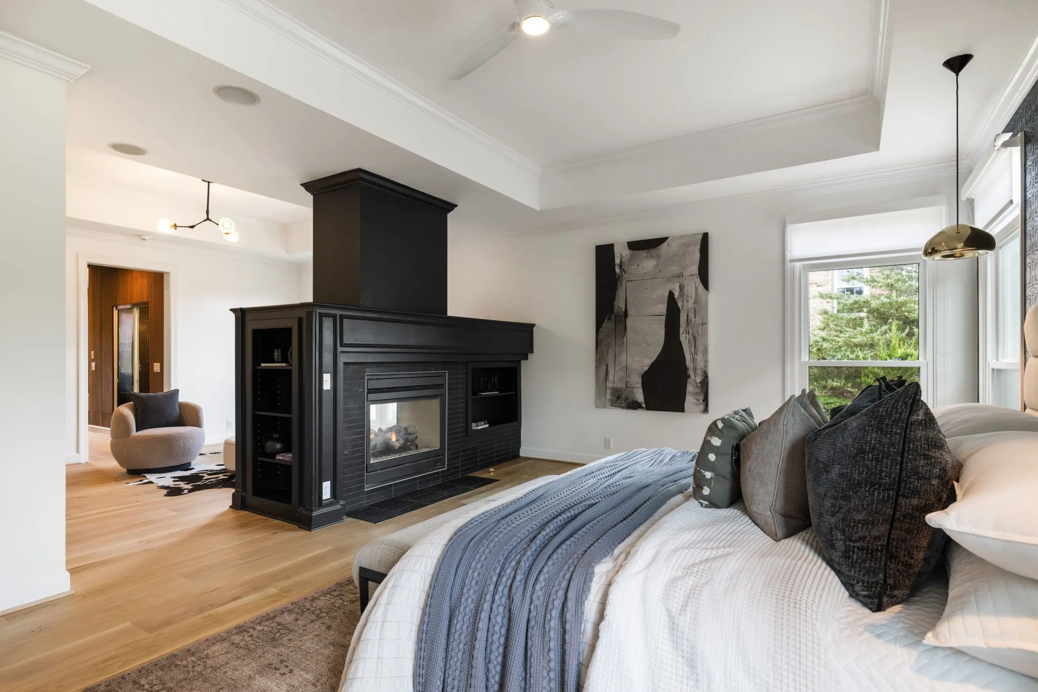 Additional upgrades include custom closet system, automatic blinds, a refreshed powder bath, a sauna room, + upgraded laundry space designed for function + style.